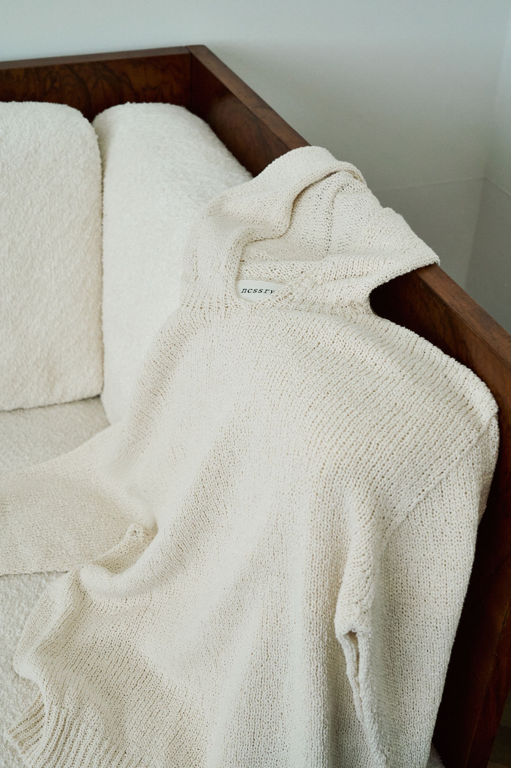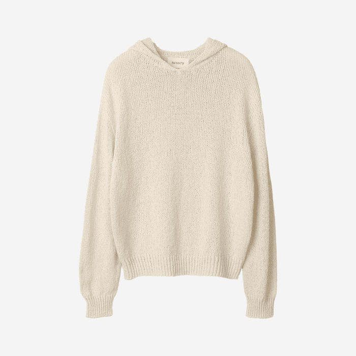 디렉터 가장 추천하고 싶은 아이템은 부클 후드 니트입니다. 부클 코튼 원사로 제작되어 봄부터 여름 그리고 초가을까지 오래 활용할 수 있어요. 특히 휴양지에서는 수영복 위에 커버업처럼 가볍게 걸치면 폭신한 촉감을 느낄 수 있습니다. 짧고 편안한 반바지에 커다란 가방을 매치하면 도심과 휴양지 어디서든 자연스럽게 이어지는 스타일링이 완성됩니다.