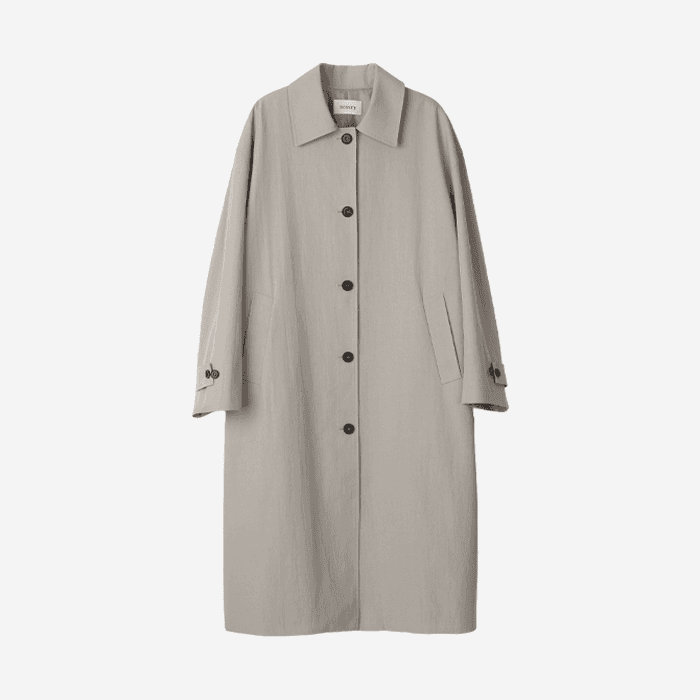 차분한 실루엣의 트렌치 코트