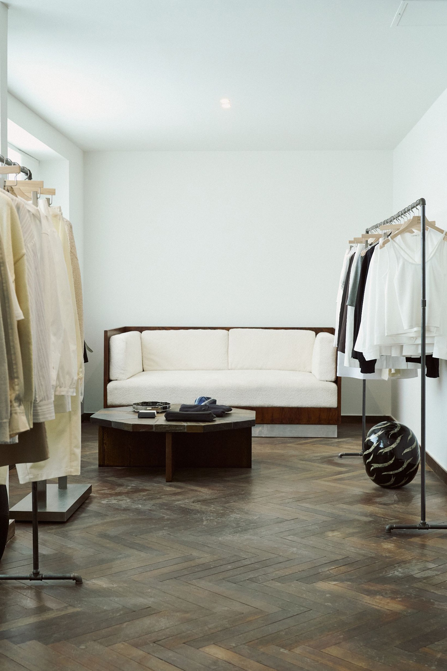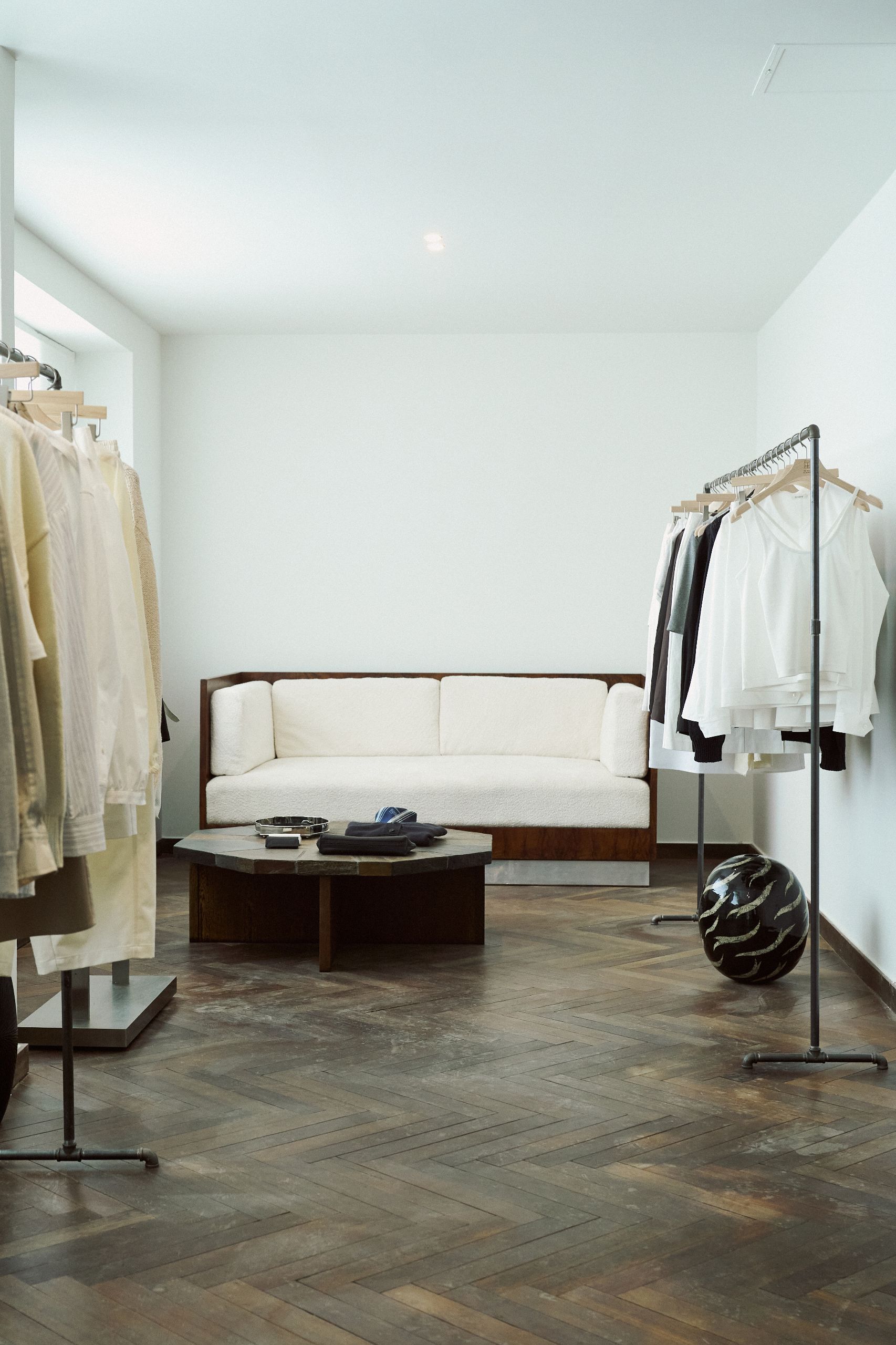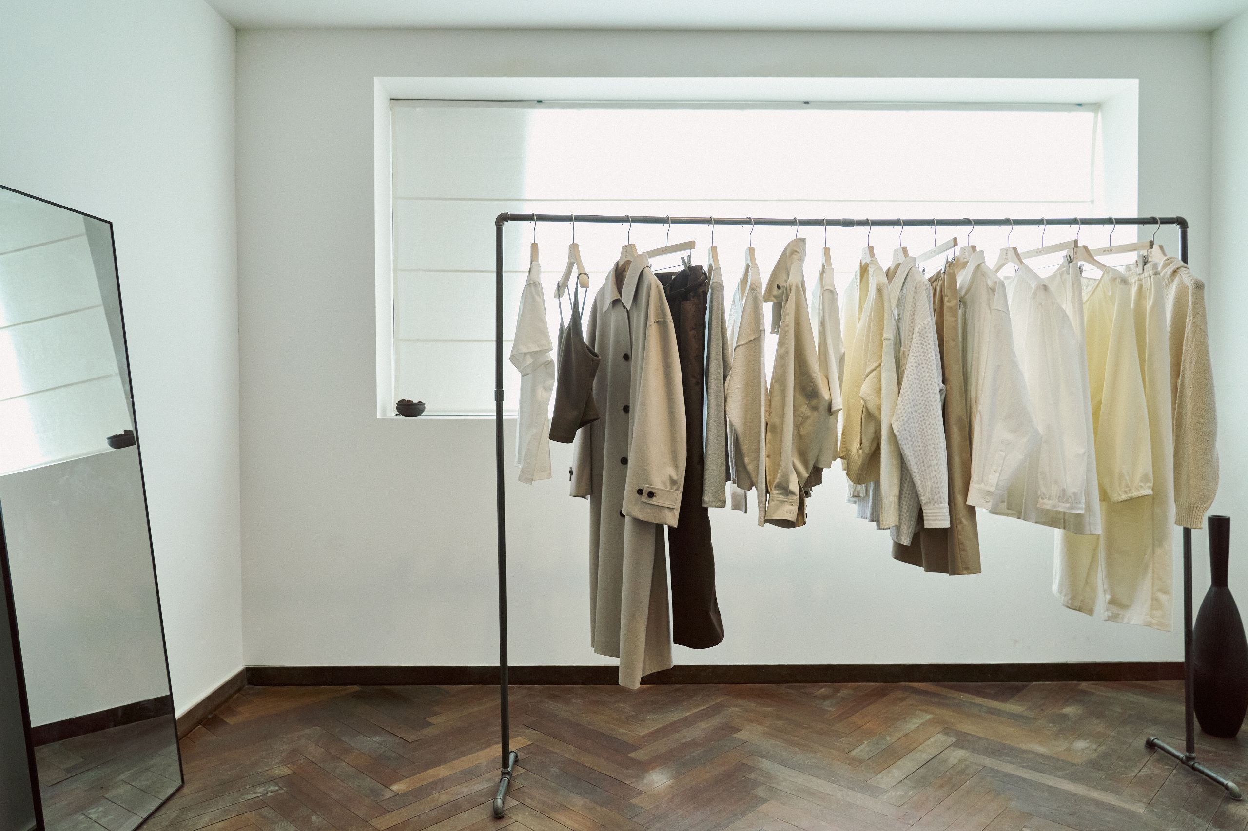 디렉터 ‘옷의 배경이 되는 공간’을 테마로 준비했습니다. 처음에는 볼거리를 더해야 할지 고민했지만 결국 중요한 것은 옷을 가장 잘 보여주는 환경이라는 생각이 들었습니다. 그래서 화려한 장식이나 연출 대신, 옷 자체에 시선이 머물도록 공간을 구성했습니다.