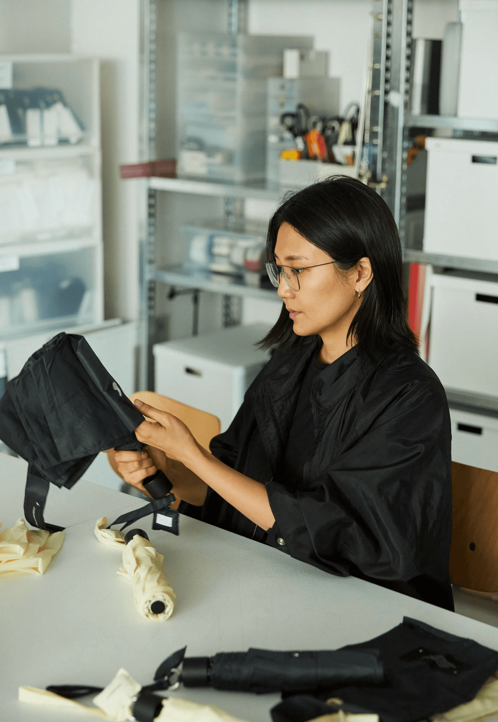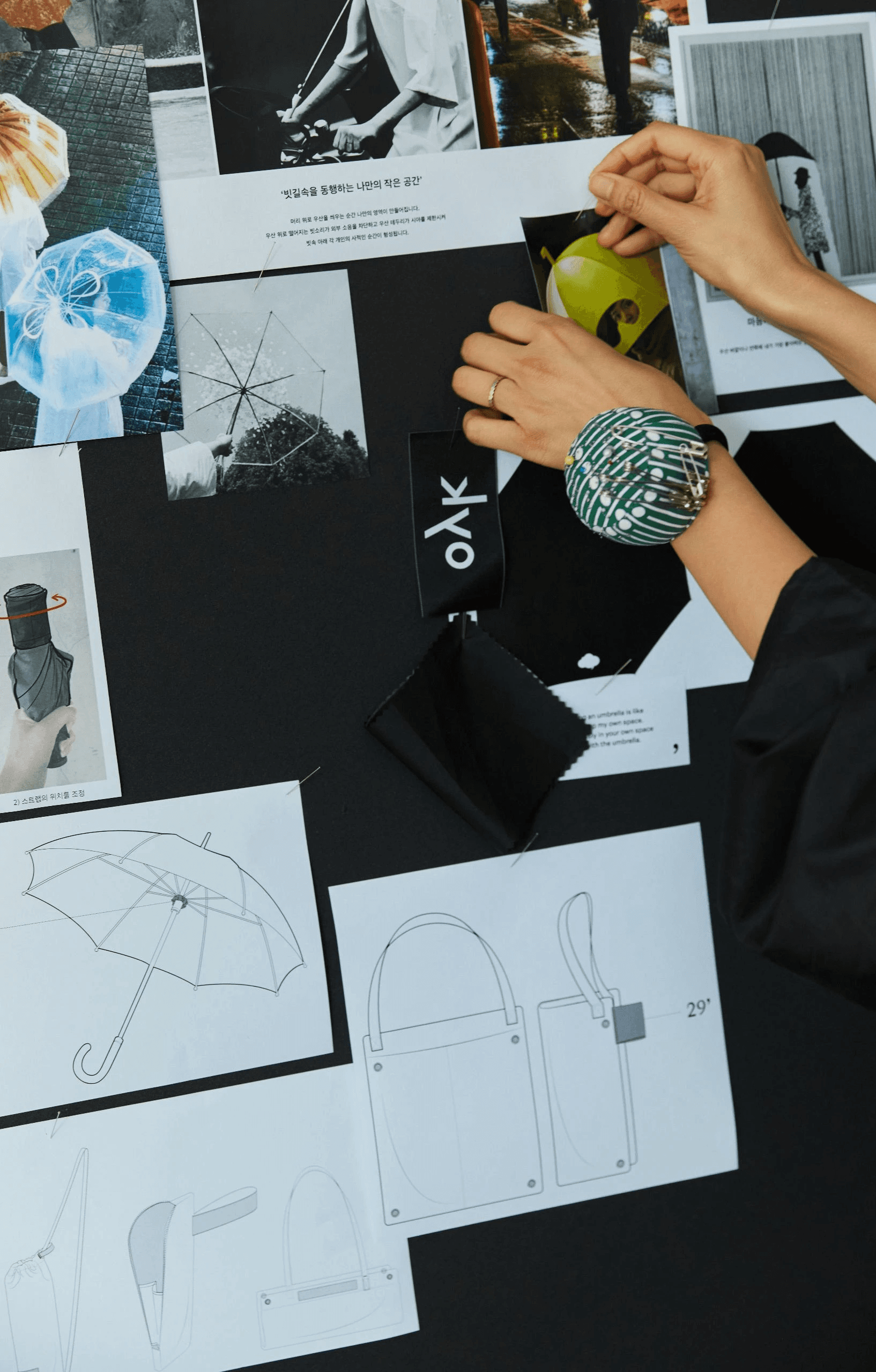 먼저 우산이 우리에게 어떤 의미인지를 고민했어요. 우산을 '움직이는 나만의 공간'으로 정의했고, 우리가 그 공간을 어떻게 대하는지 관찰했죠. 저는 우산을 잘 잃어버리는 편이라 왜 그런지 생활을 따라가 봤는데요. 비가 와서 챙긴 우산은 비가 그치고 나면 필요성이 옅어지면서 존재 자체를 까먹는 경우가 생기더라고요. 젖은 우산을 그냥 가방에 넣을 수도 없고, 들고 다니자니 짐이 되잖아요.