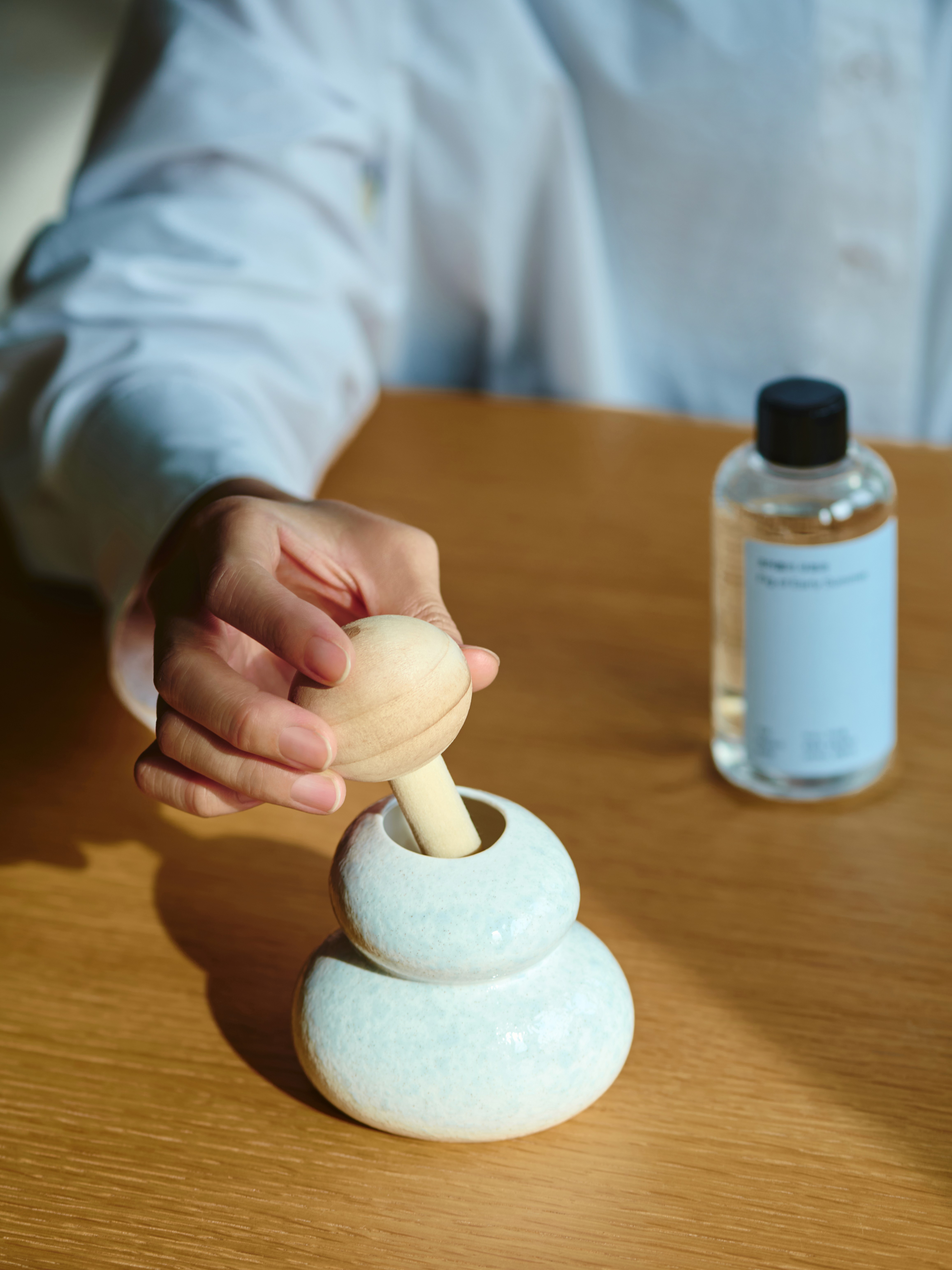 그 결과물로 머들디퓨저의 새로운 향기, <사이프러스힐>과 <초여름의 무화과>를 선보입니다. 먼저 <사이프러스힐>은 우디 계열의 향으로 소란한 마음을 고요하게 만들어줍니다. <초여름의 무화과>는 여름의 싱그러움을 닮은 향기로 행복감을 선사해줄 거예요. 디퓨저 보틀에도 색감과 질감을 달리하는 새로움을 더해보았습니다. 그밖에도 리필액과 우드볼 스틱을 별도로 구입할 수 있도록 만들었습니다. 향기 하나하나가 궁금한 분들은 디스커버리키트에 주목해주세요.
