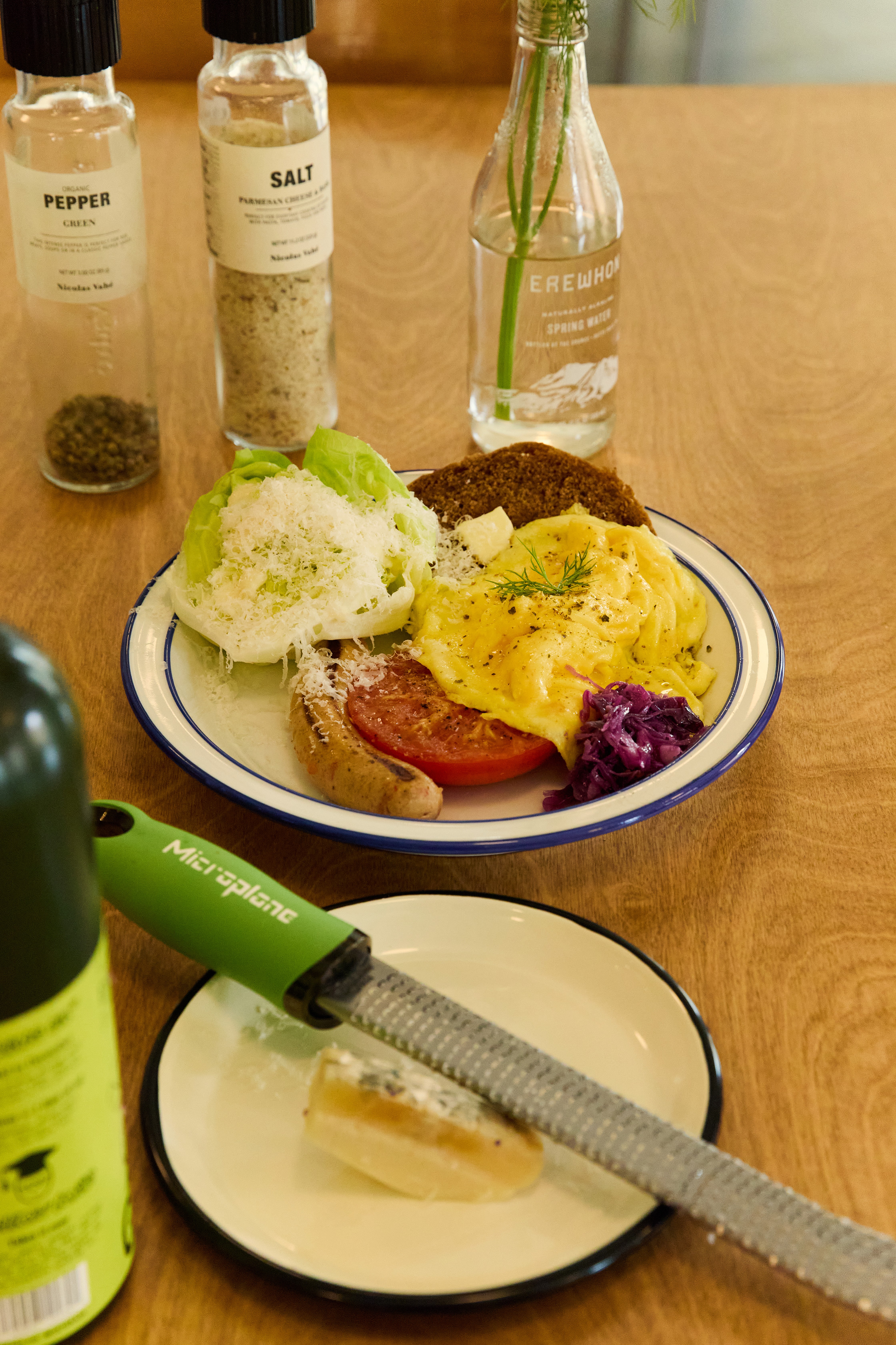 더 나은 나와 내일로 가는 발판을 위해 오늘도 아침프로비전의 문을 여는 윤진은 아침의 가치를 나눕니다. 모두가 긍정적으로 주체적인 하루를 시작하길 바라는 그의 마음이 담긴 플레이트에 대해 이야기 나눴습니다.