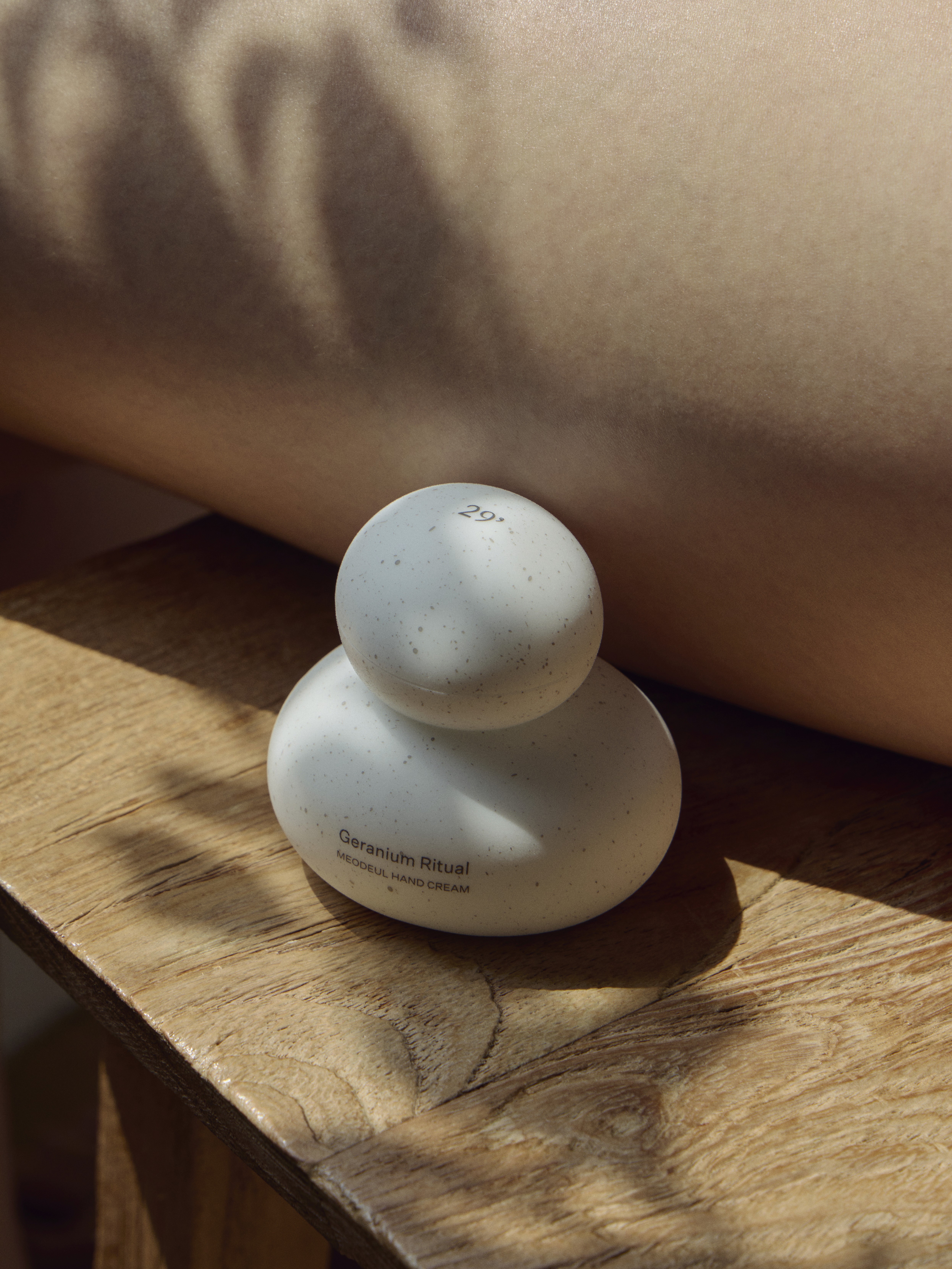이번 핸드 앤 바디 컬렉션은 바로 그 일상의 행위에 새로운 해석을 더했습니다. 핸드워시는 달빛을 머금은 달항아리의 고요한 선율에서, 핸드크림은 조약돌을 쌓아 소원을 빌던 제주 ‘머들’의 기억에서 태어났습니다. 바디워시와 바디크림은 둥글게 다듬어진 조약돌의 부드러운 곡선을 닮아, 손끝과 피부 위에 자연스러운 안도감을 전합니다. 그 곡선과 비움의 철학은 단순히 아름다움에 머무르지 않고, 삶을 바라보는 태도로 이어집니다. 모난 곳 없이 둥글게 다듬어진 형태는 손에 쥐었을 때 가장 자연스럽게 맞닿고, 불필요한 장식을 덜어낸 디자인은 오히려 더 깊은 여운을 남깁니다. 모두 한국적 디자인 언어와 덜어냄의 미학을 담아낸 형태로, 일상 속 작은 의식을 특별한 경험으로 바꿔줍니다.