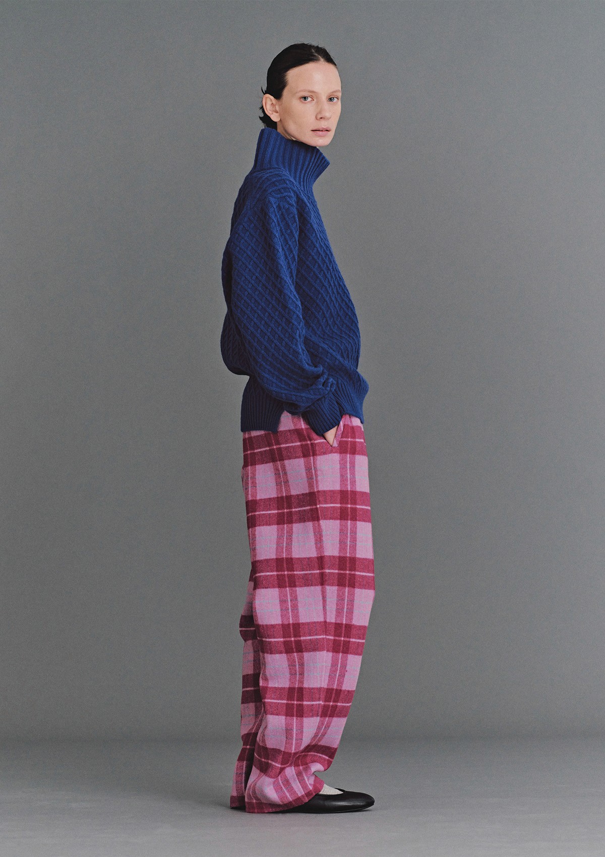 이번 컬렉션에서는 과감한 체크 패턴으로 포인트를 더했어요. 시즌 속 다른 상품과 안정적인 조화를 이루며 자연스럽게 브랜드의 정체성을 드러낼 수 있는 원단을 발견한 덕분에 그 미묘한 범주를 해치지 않는 컬렉션을 선보일 수 있었습니다.