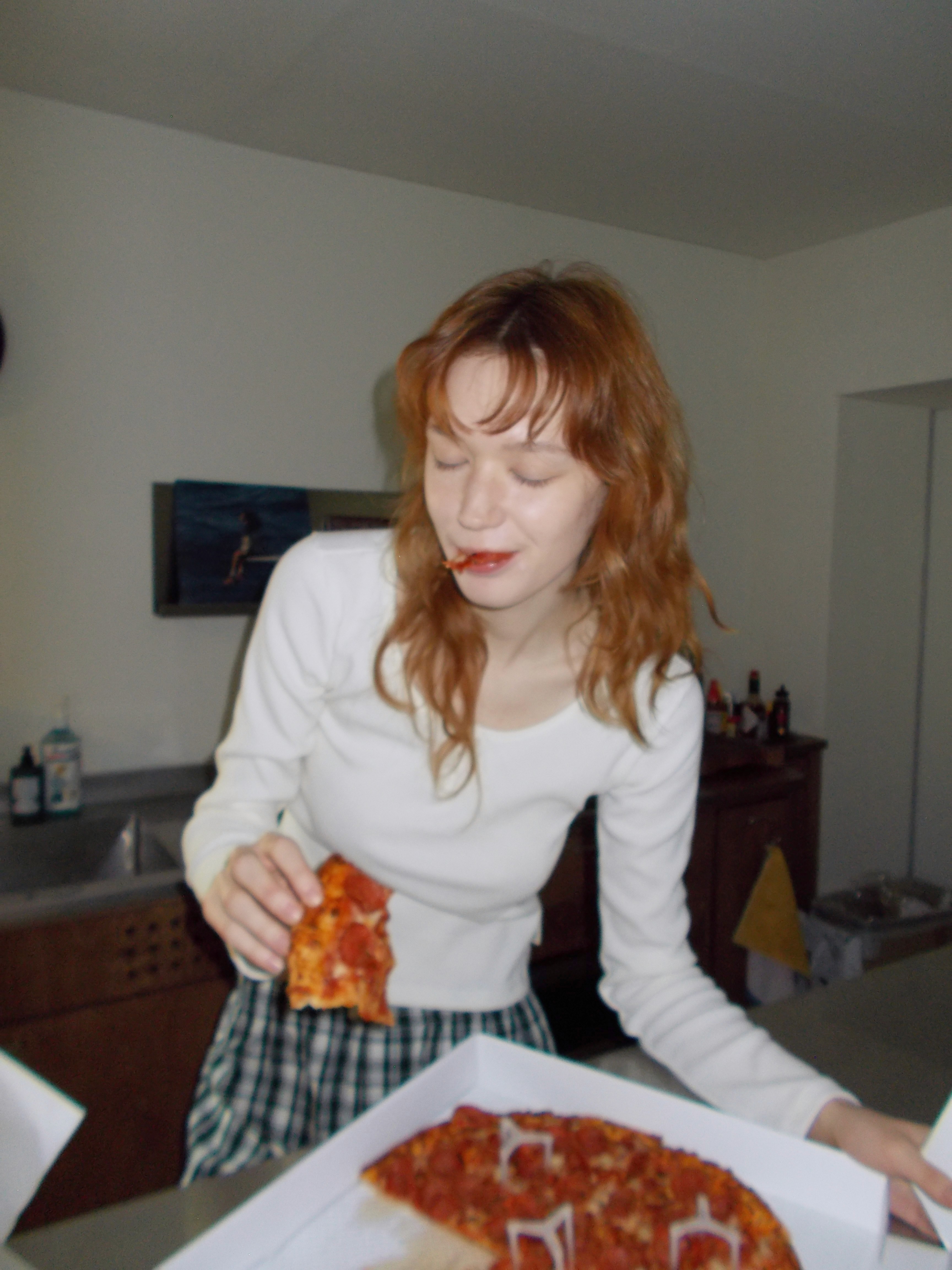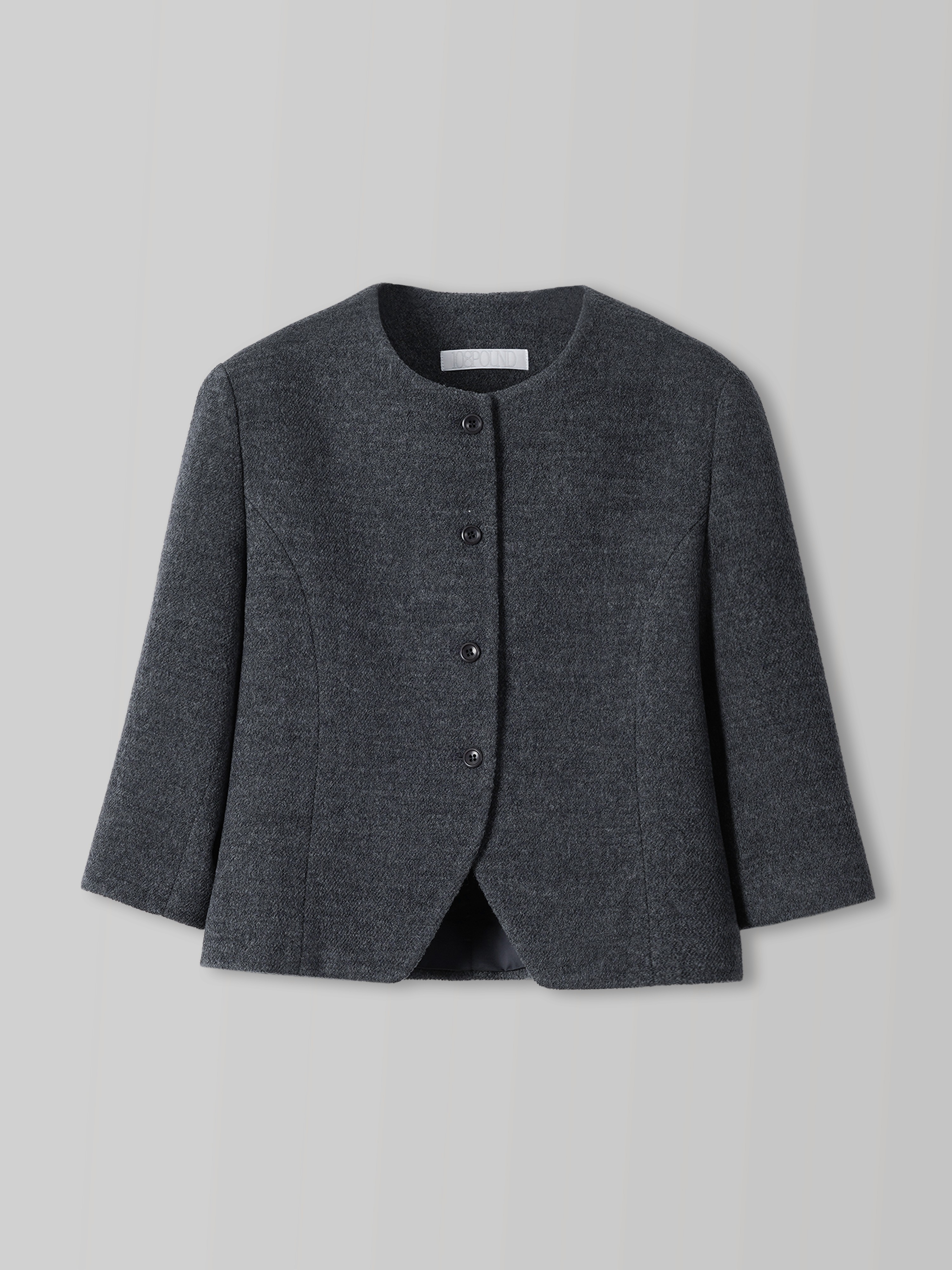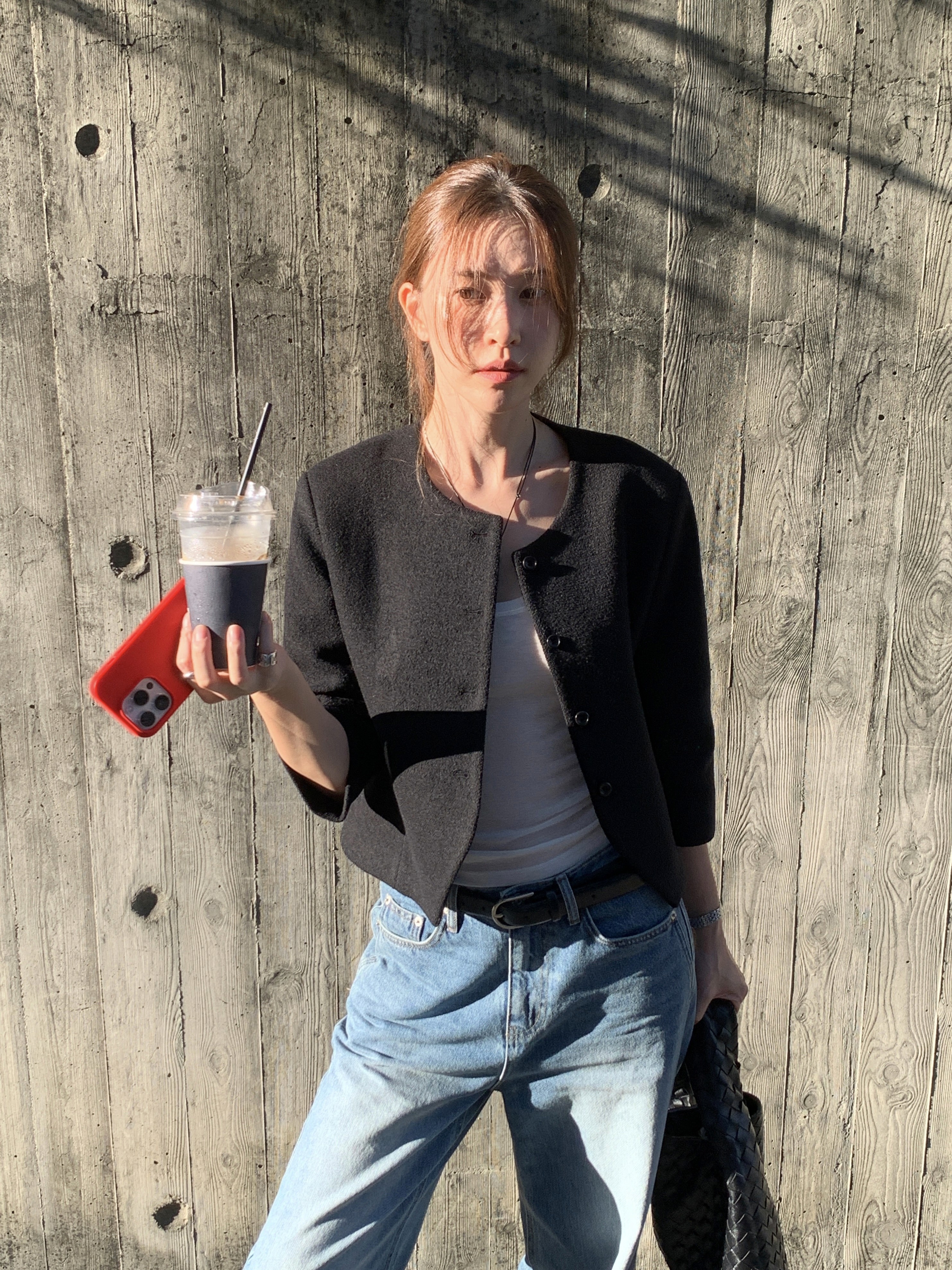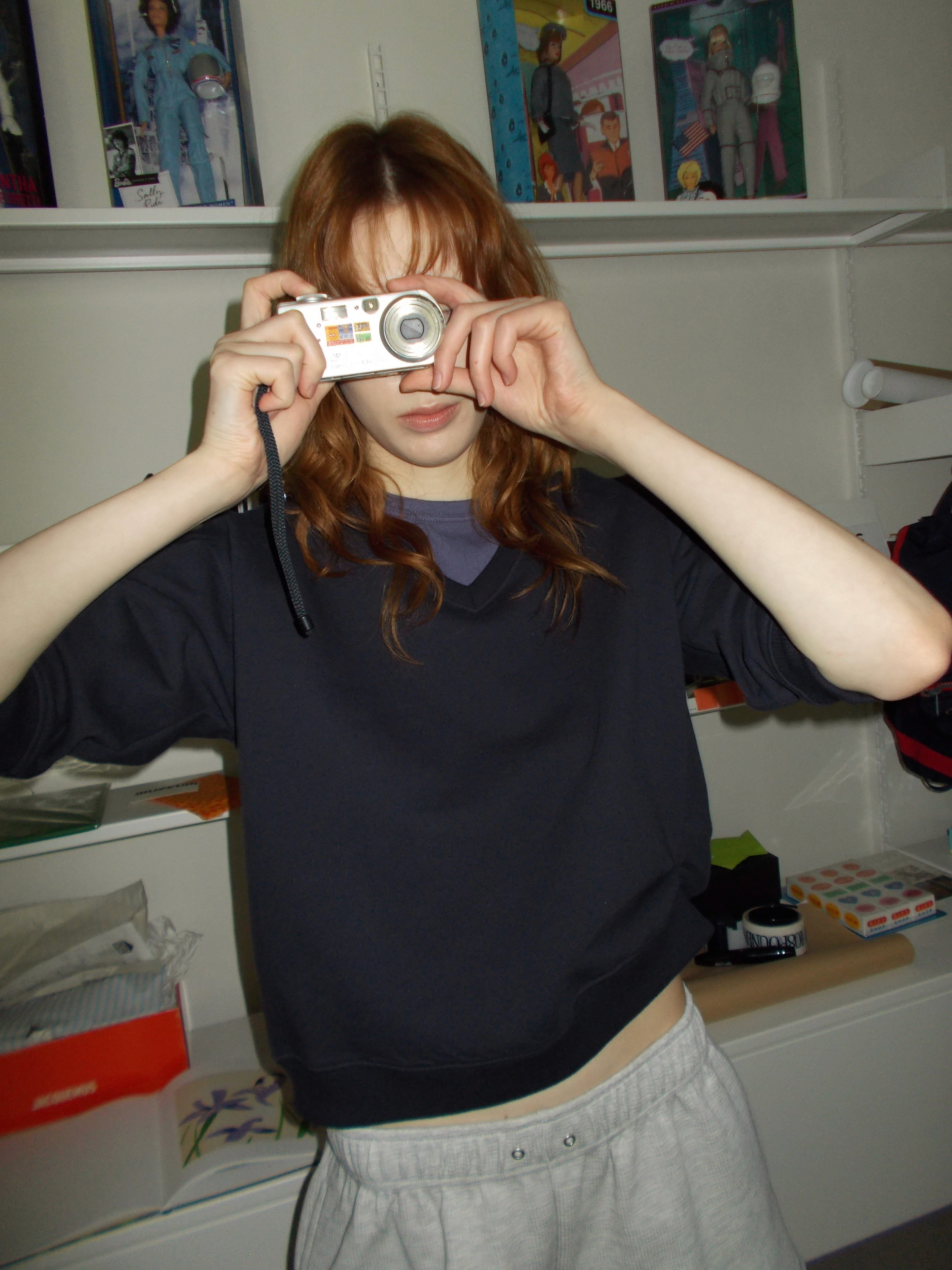 단정한 티셔츠처럼 보이지만, 레이어드했을 때 다른 옷의 균형을 해치지 않도록 넥 라인과 어깨 각도, 기장까지 세밀하게 조정했어요. 특히 크롭 길이는 짧아 보이는 지점과 안정적으로 보이는 경계를 여러 차례 수정하며 완성됐다고 해요. 눈에 띄기보다는 전체 실루엣을 조용히 정리하는 역할에 가까운 티셔츠입니다.
