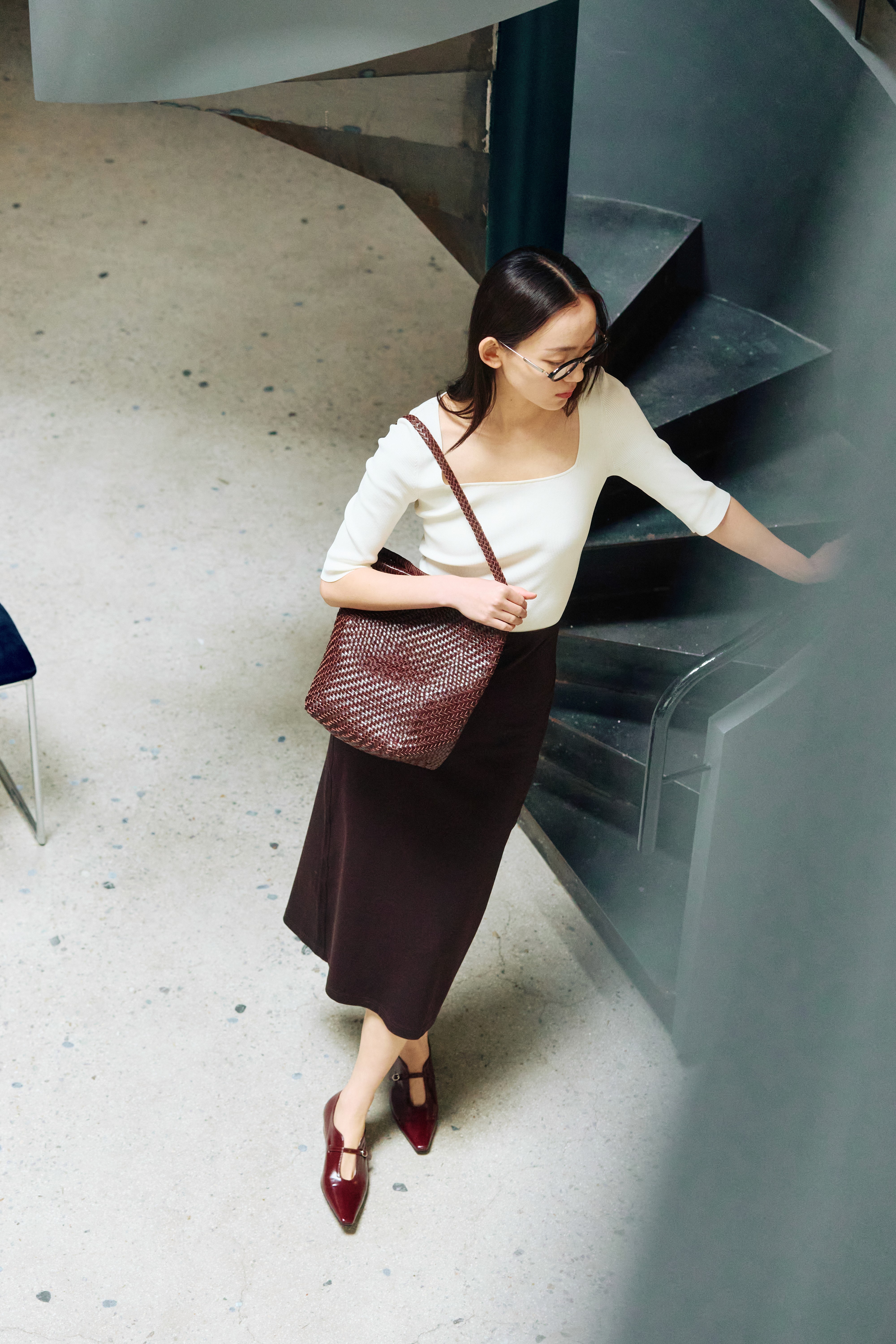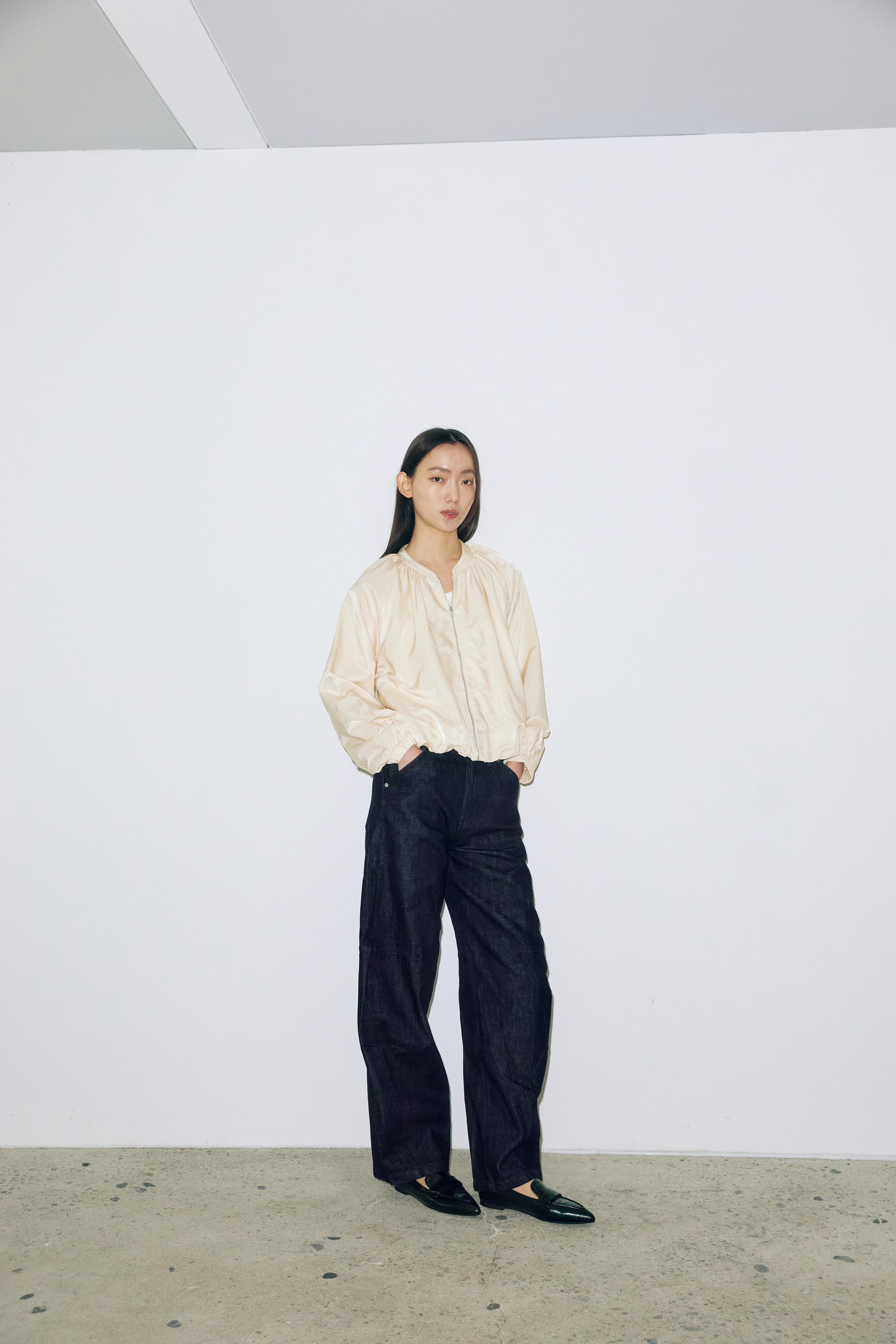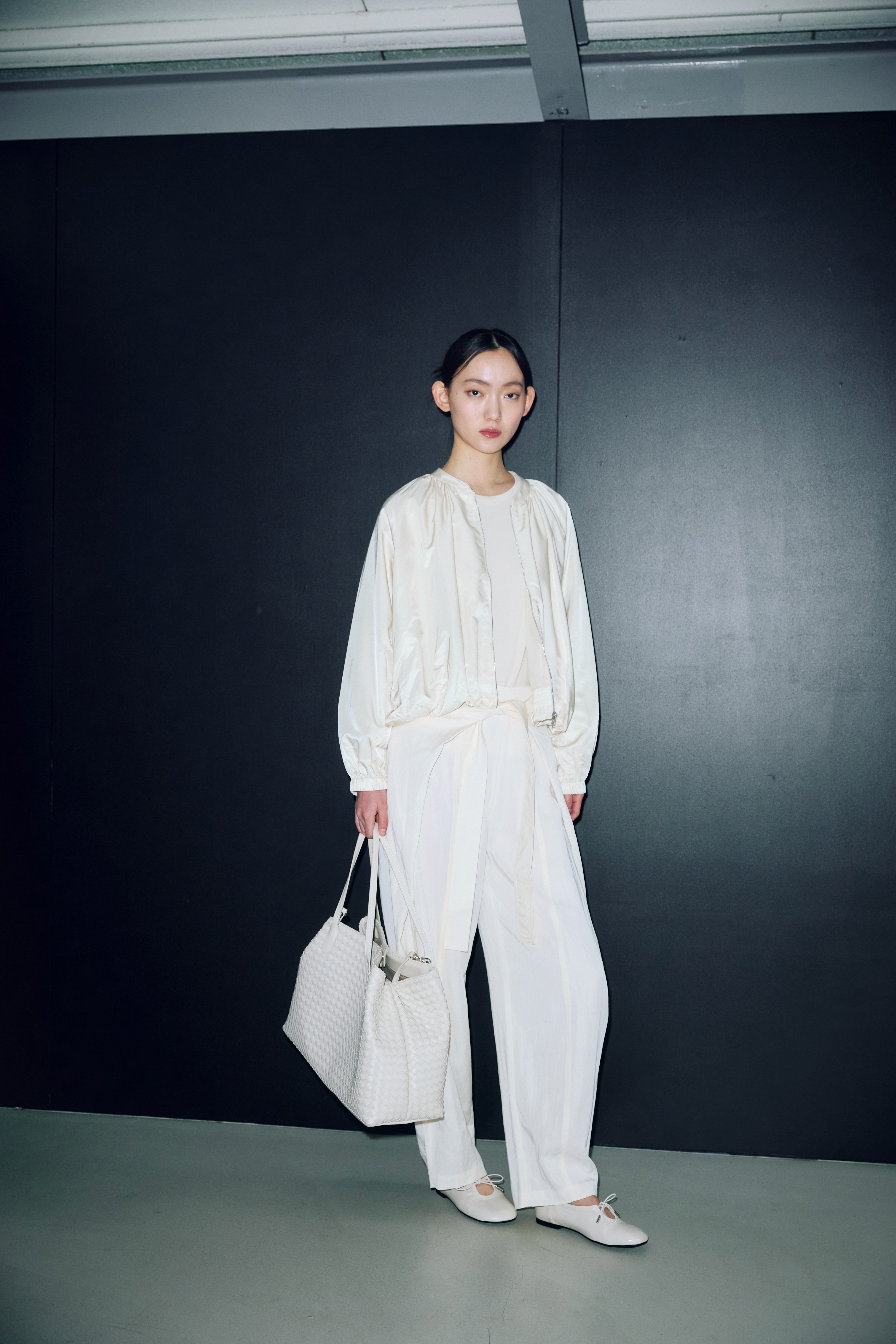 절제된 형태 안에서 드러나는 디테일에 집중했어요. 셔링과 밴딩, 슈레이스 요소를 더해 단순한 실루엣에 리듬을 만들고, 과하게 드러내기보다 은은하게 변화하는 결에 주목해 디자인의 밀도를 차분하게 다듬었어요.