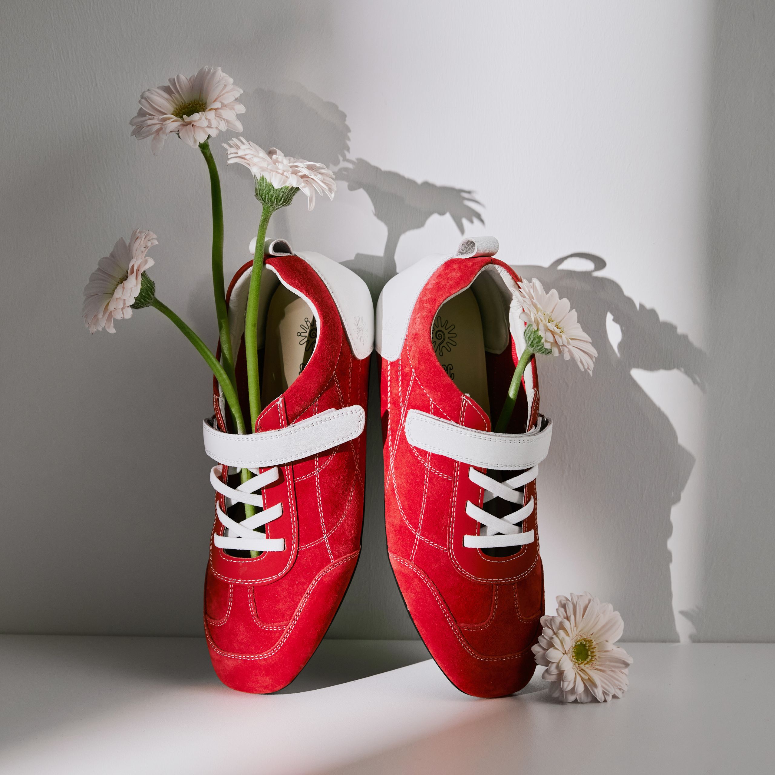 레이서를 연상하게 하는 빈티지 무드의 로우 프로파일 스니커즈. 벨크로 스트랩이 가볍고 안정감을 더해요.