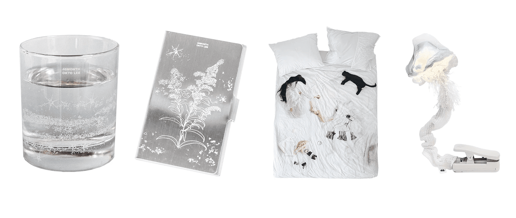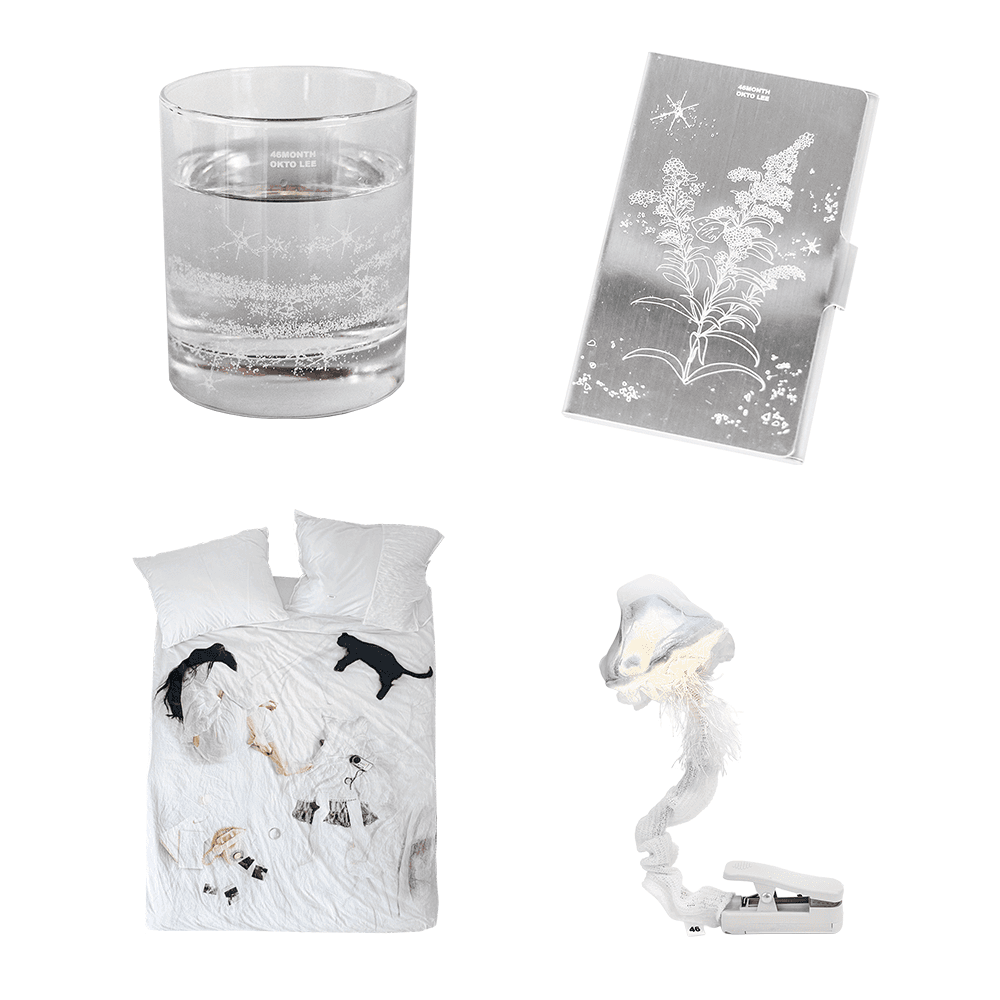 이옥토 작가와 포식스먼스가 만나 일상 속 자주 마주하는 오브제들을 작가 특유의 감각으로 새롭게 재해석하여 선보입니다. 카드지갑부터 이불커버, 유리컵, 조명까지 다양한 상품들은 생활 속 자연스럽게 스며들며 공간에 섬세한 취향을 더해줄 거예요.