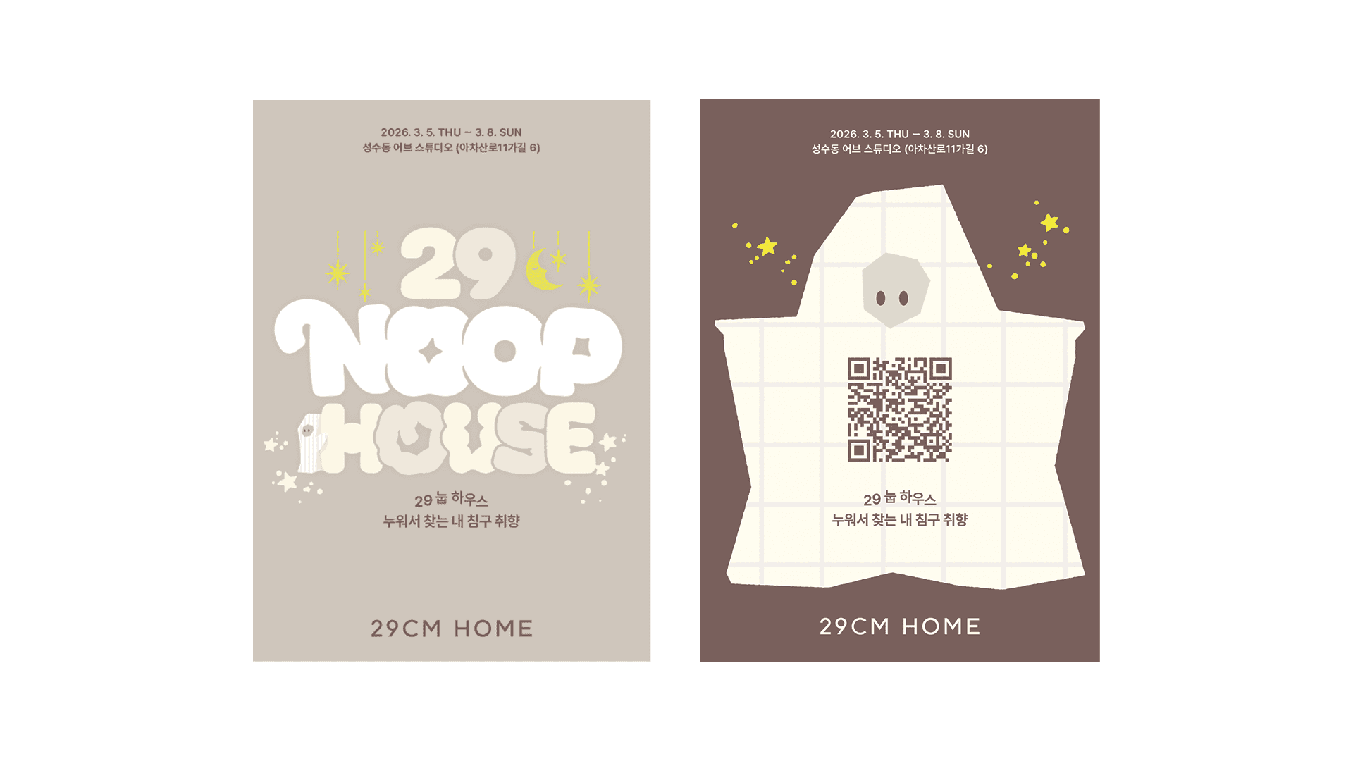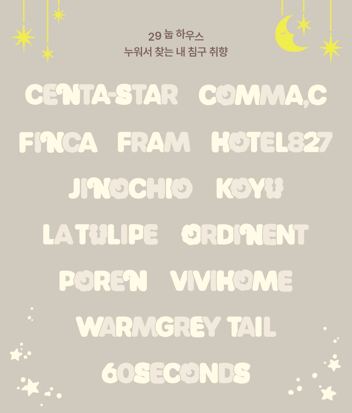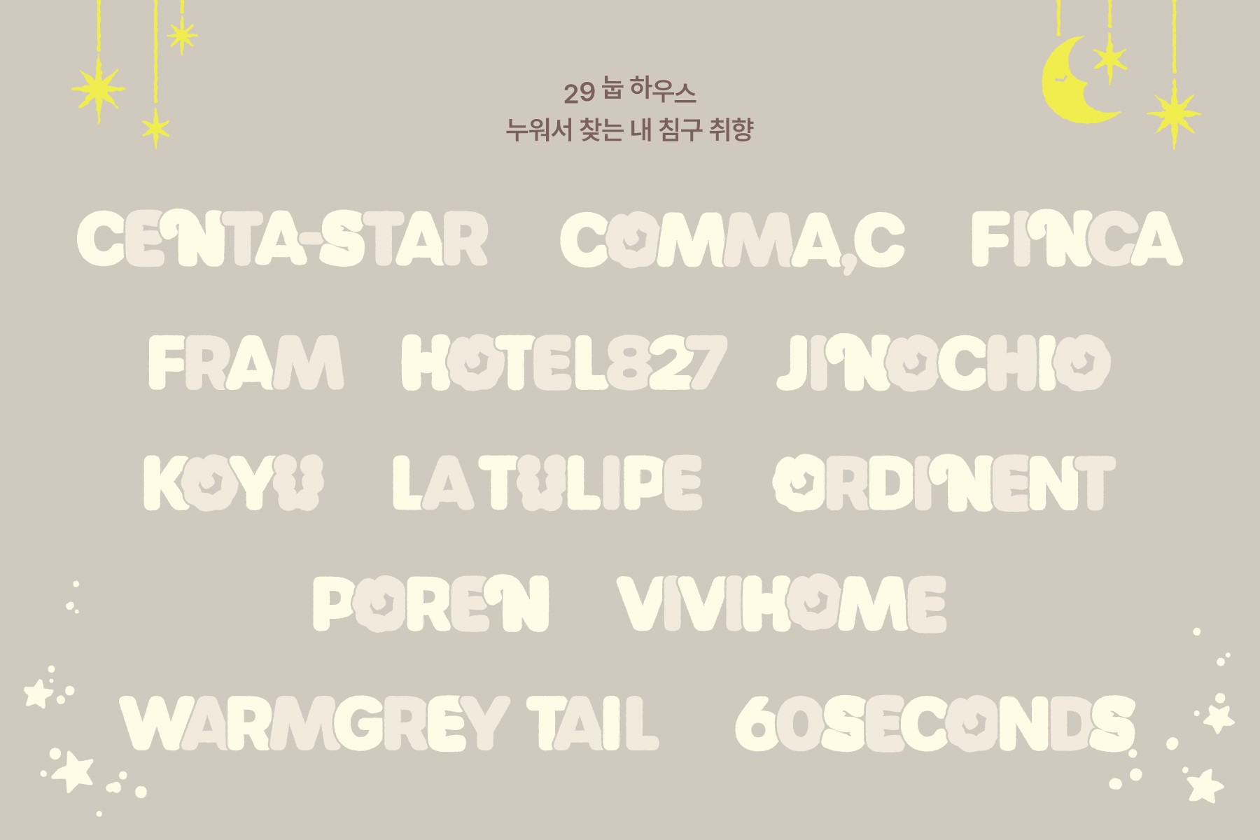 총 13개 침구 브랜드가 참여한 29 NOOP HOUSE는 다양한 침구를 한 공간에서 직접 만지고 느끼며 나만의 침구 취향을 발견할 수 있는 체험형 팝업입니다. 29 NOOP HOUSE에서 당신만의 침구 취향을 확인해보세요.