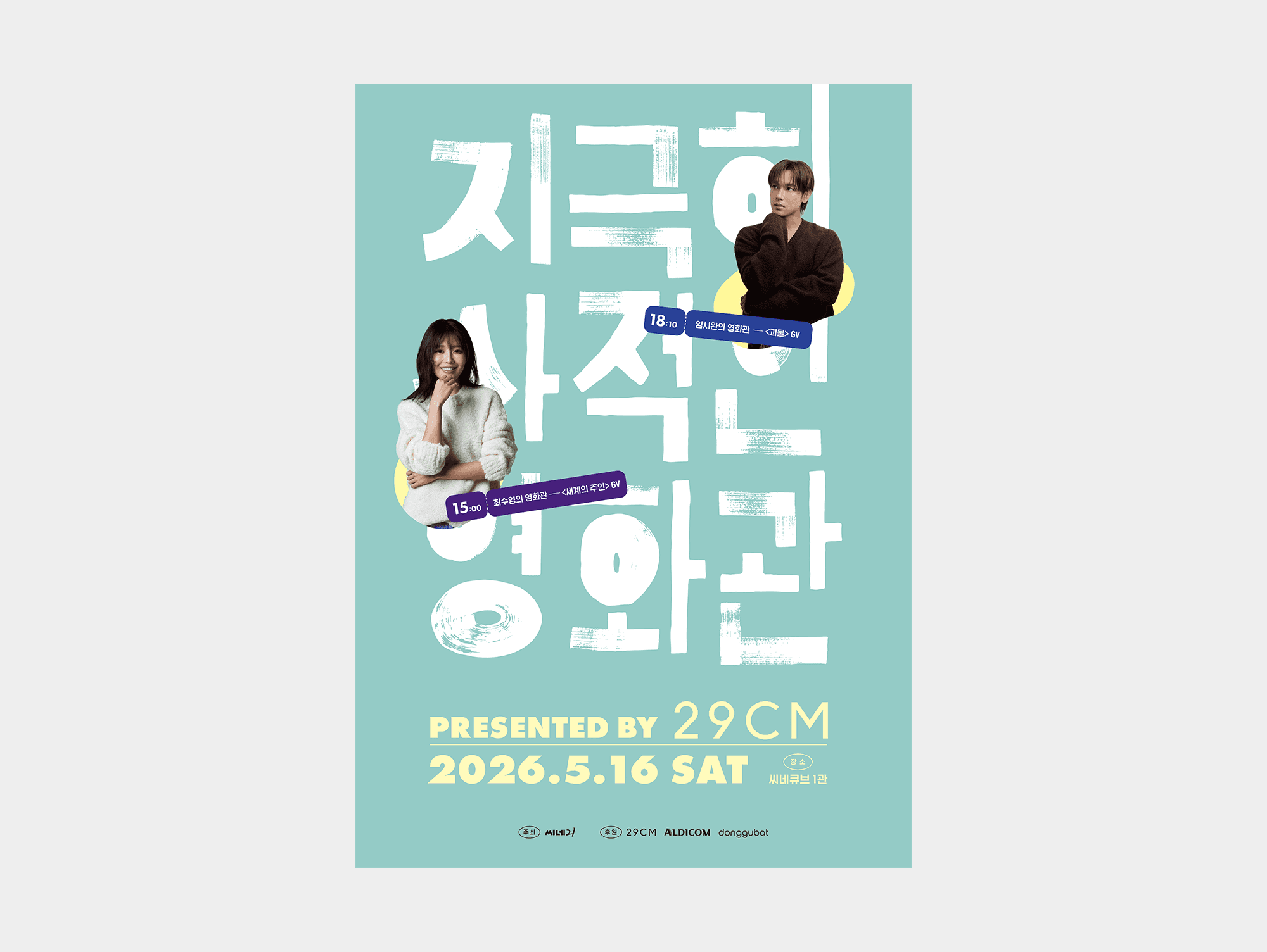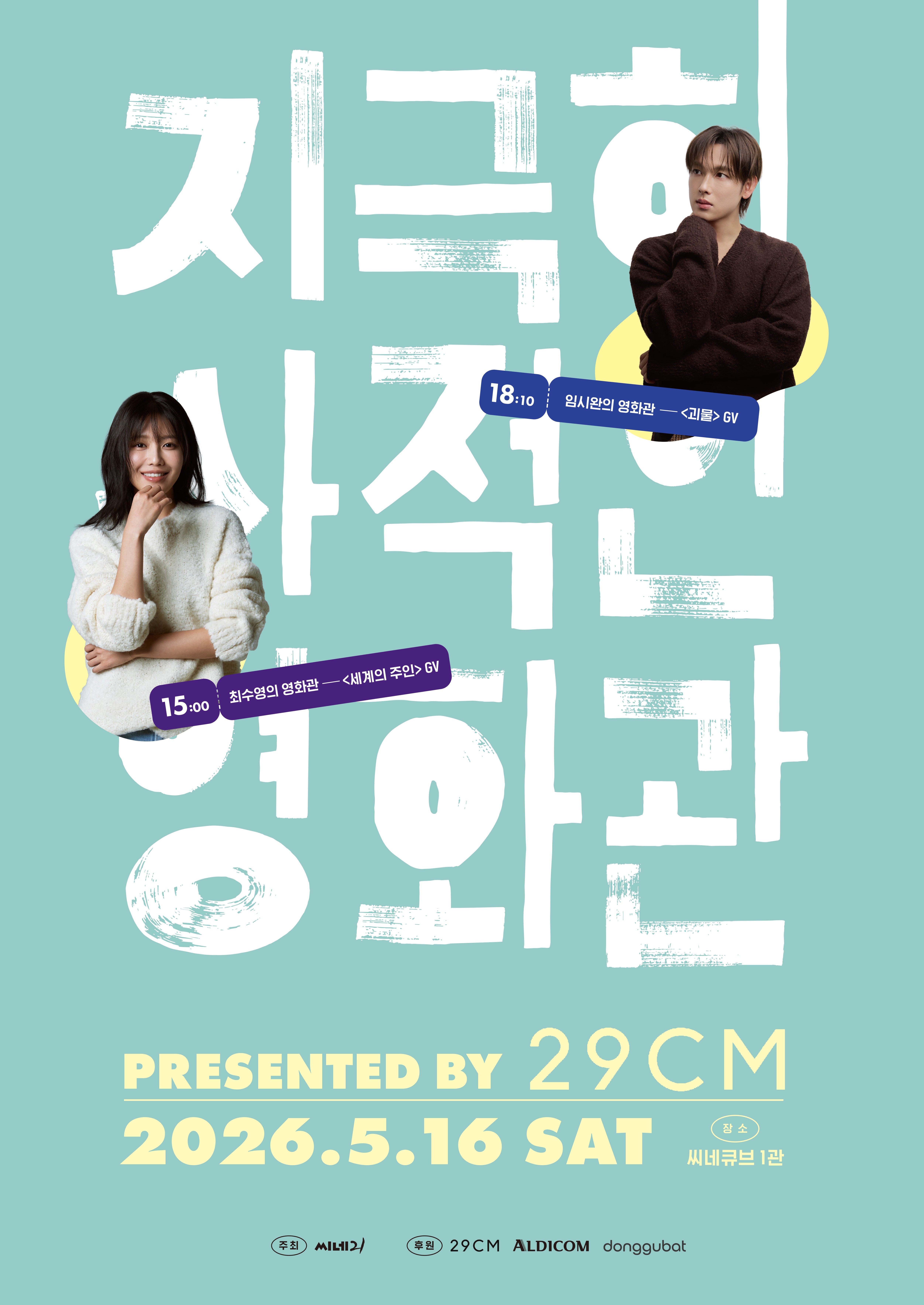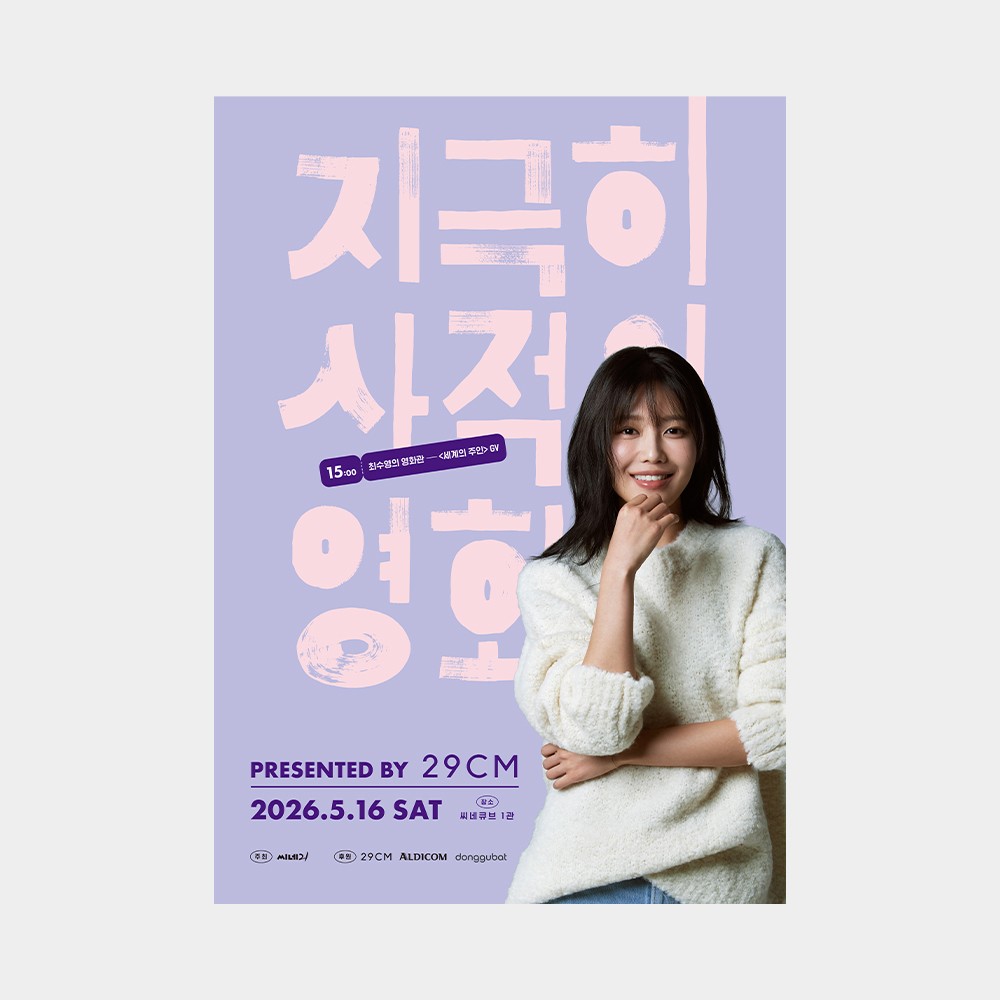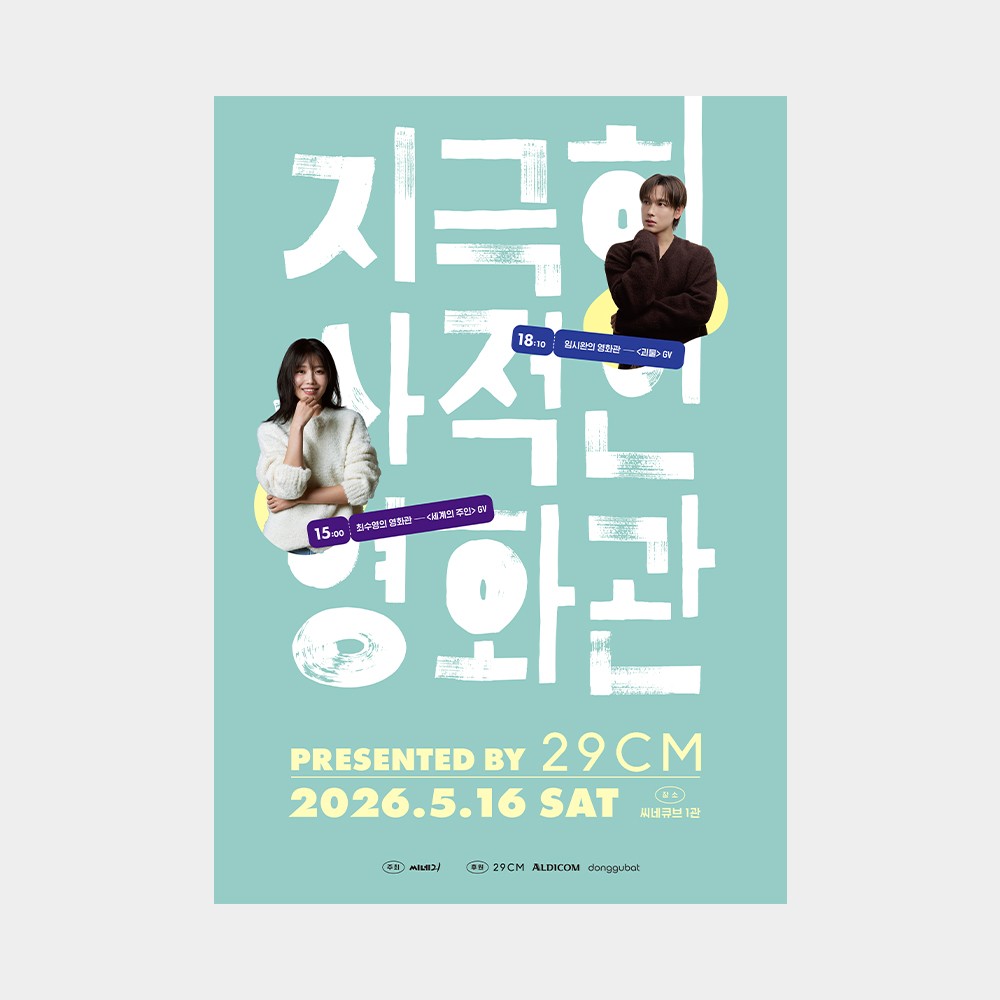 영화와 관객을 잇는 가교 역할을 해온 영화 전문 미디어 <씨네21>이 감도높은 취향 셀렉트샵 29CM와 손잡고 특별한 상영회를 마련했다. '지극히 사적인 영화관'은 주목받는 배우·아티스트가 직접 큐레이터가 되어 자신만의 시선으로 영화를 선정하고, 그 영화에 얽힌 추억과 감상을 관객과 나누는 특별 상영회로 이번 5월 상영회의 주제는 '청춘'이다. 임시완과 최수영, 두 배우가 스페셜 프로그래머로 참여해 청춘을 직접 다루거나 자신에게 청춘의 열정을 안겨준 영화를 직접 골랐다. '지극히 사적인 영화관'이라는 이름처럼, 영화에 대한 개인적 기억과 감정을 나누는 친밀한 시간이 될 것이다.