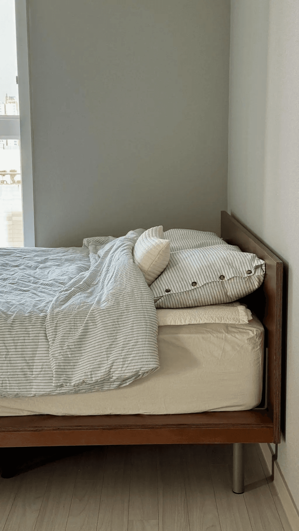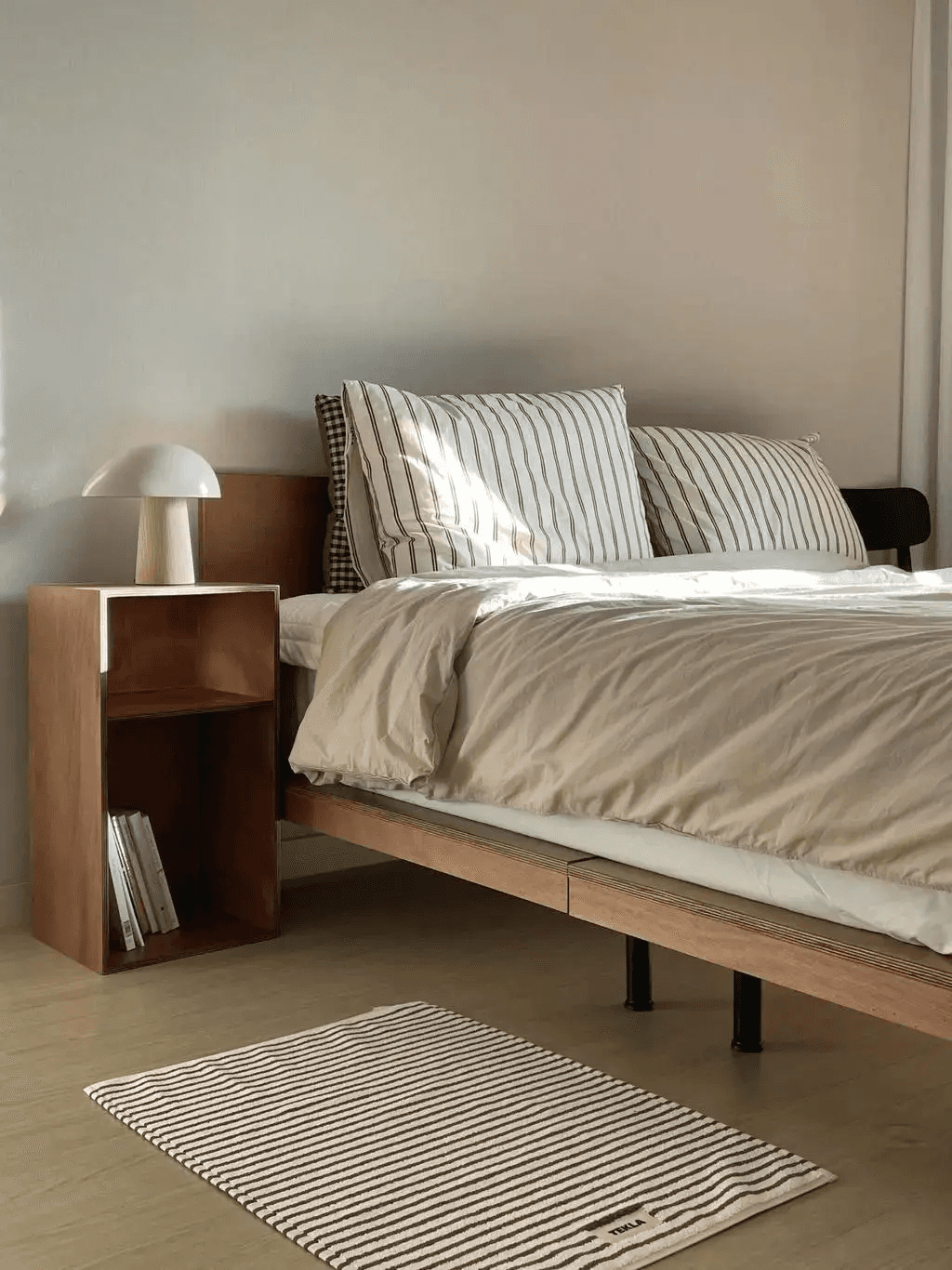 침대는 그 자체로 부피가 크기 때문에 프레임을 잘못 선택하면 자칫 부담스럽게 느껴질 수 있어요. 담백한 직선형, 낮은 헤드 보드, 군더더기 없는 디자인은 편안하면서도 세련된 분위기 연출에 적합합니다.