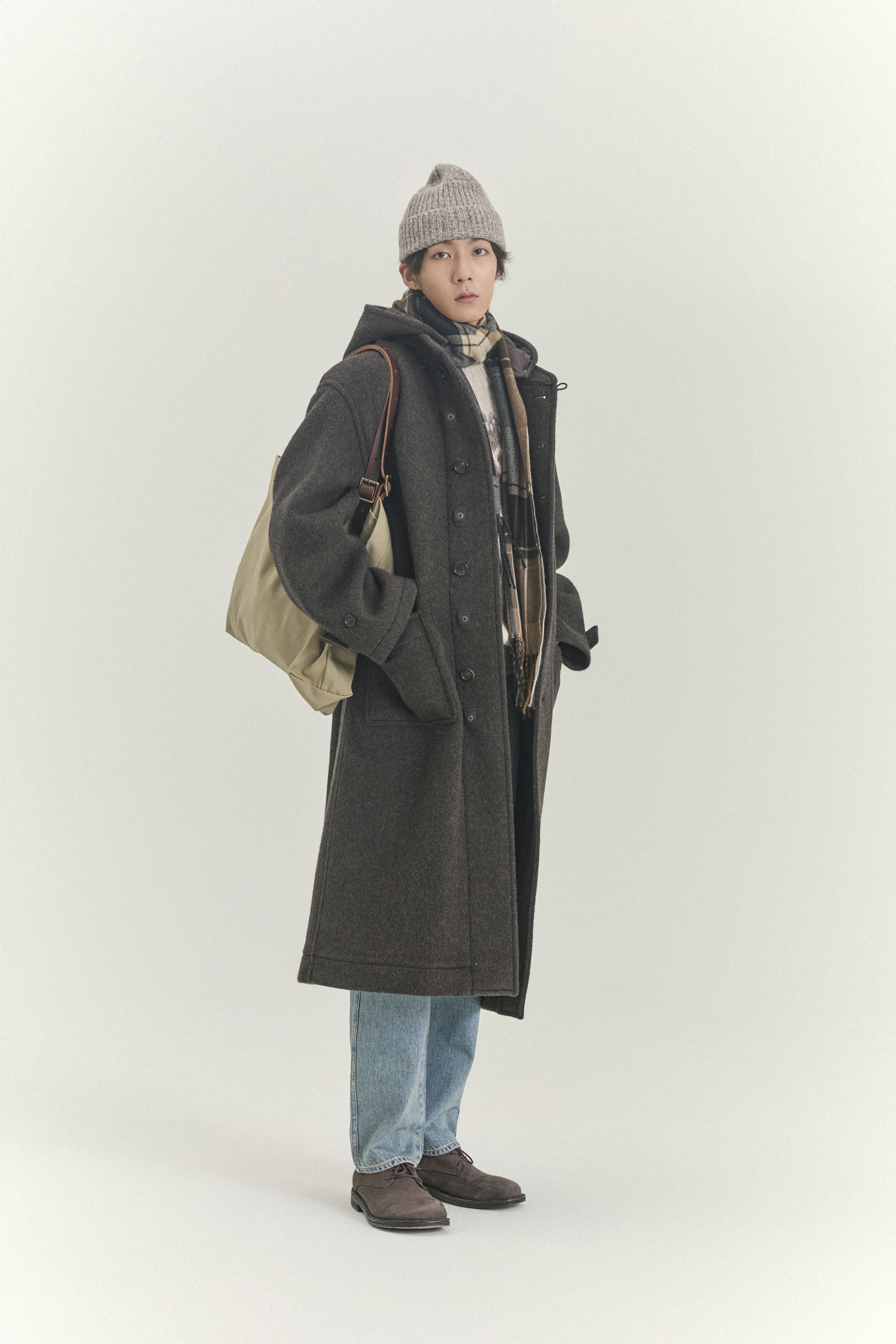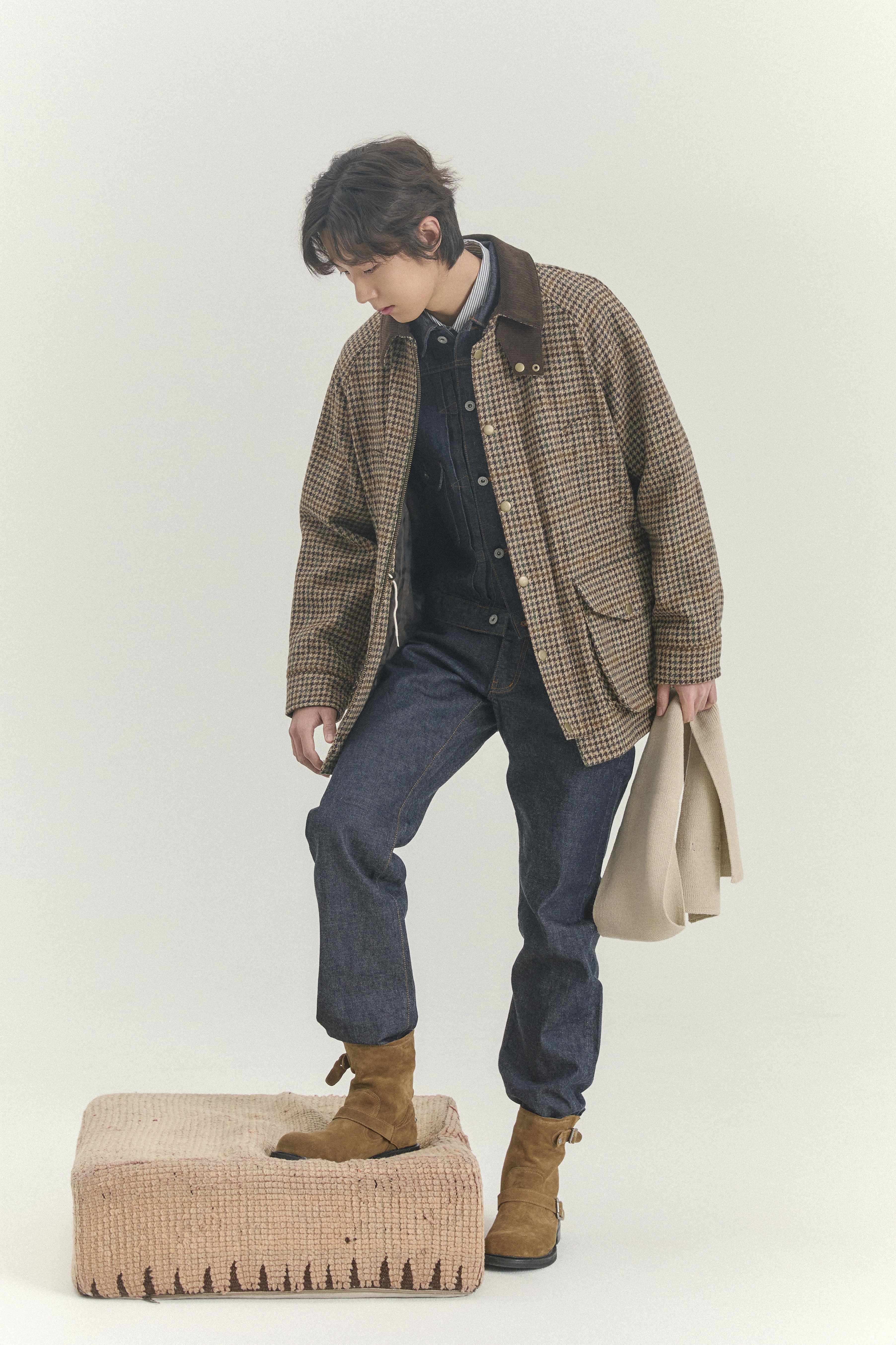부담 없는 길이와 폭넓은 활용도를 갖춘 하프 코트는 계절의 경계에서 특히 빛을 발하죠. 파카는 다소 가볍게 느껴지고, 롱코트는 부담스러울 때 자연스럽게 손이 가는 선택지이기 때문입니다. 적당한 길이 덕분에 스타일링의 여지도 넓고요. 필드 재킷에서 착안한 하프 코트에 셀비지 데님 셋업을 매치해보세요. 여기에 스웨이드 부츠를 더하면 오래된 영화 속 장면을 떠올리게 하는 스타일링이 완성됩니다. 코듀로이나 치노 팬츠와 함께하면 보다 편안한 데일리 룩으로 연출할 수 있어요. 하이넥과 토글 버튼이 더해진 아우터로 차분한 모노톤 스타일을 연출해도 좋습니다. 비슷한 색감의 체크 셔츠를 레이어드하거나 허리에 묶어 포인트를 더하는 것도 추천해요