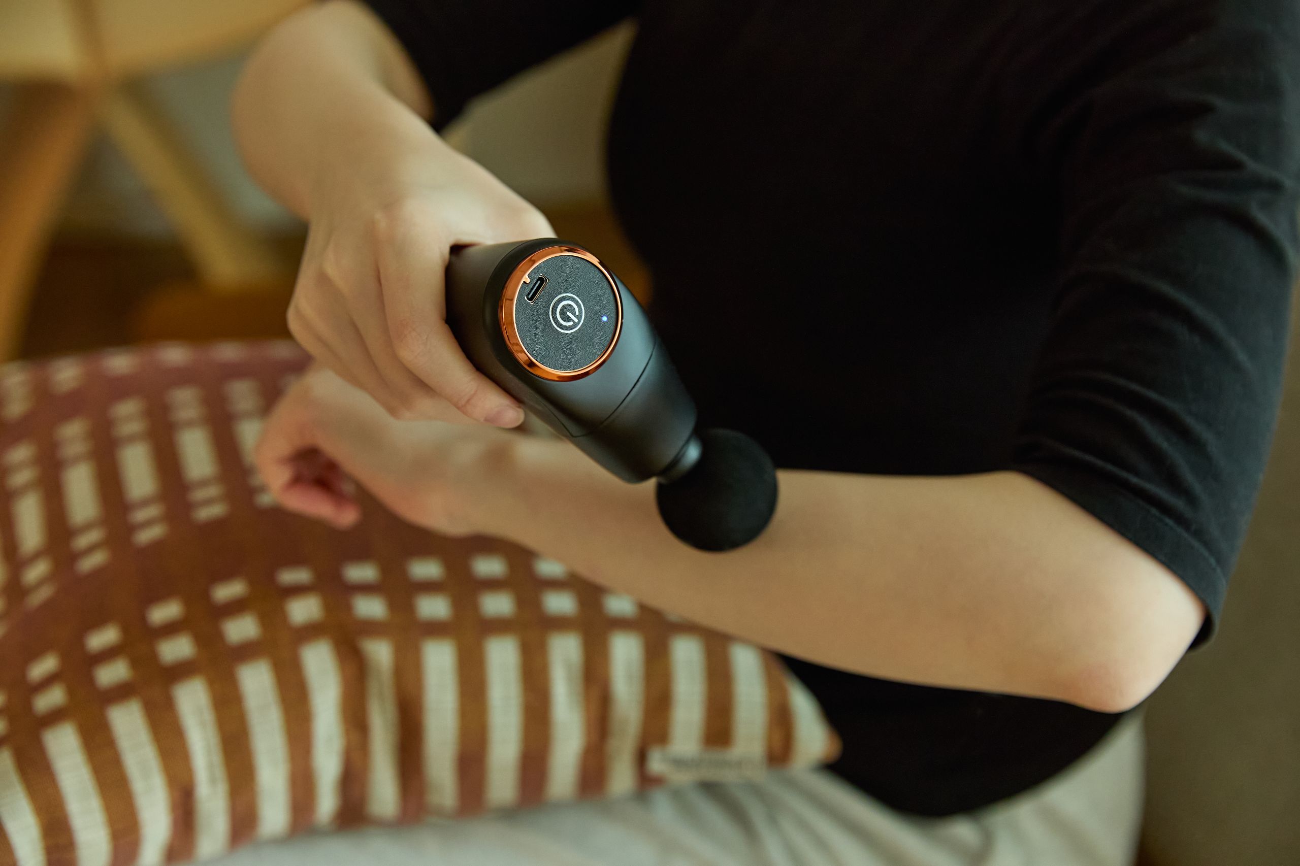 크고 무거워서 손이 잘 가지 않던 마사지 건은 이제 그만. 손에 쏙 들어오는 그립감에 작지만 강력한 진폭, 촘촘한 진동으로 뭉친 피로를 효과적으로 풀어줘요. 부위별로 사용할 수 있는 4종 헤드가 온몸 구석구석 섬세한 자극을 전달해 주죠. USB 충전식의 소형 사이즈로 언제 어디서나 부담 없이 휴대할 수 있어요.