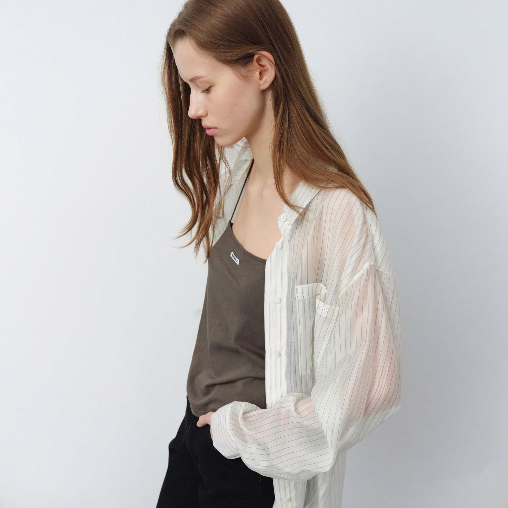 시스루 룩은 요즘처럼 날씨가 변덕을 부리는 계절에 유용해요. 소재 특유의 가벼움과 은은하게 안이 비치는 느낌은 보기만 해도 시원한 느낌을 주거든요. 오버사이즈 핏, 봄과 어울리는 산뜻한 컬러의 시스루 셔츠는 캐주얼하고 편안한 분위기를 자아내어 아마 교복처럼 매일 입고 싶어질 거예요.