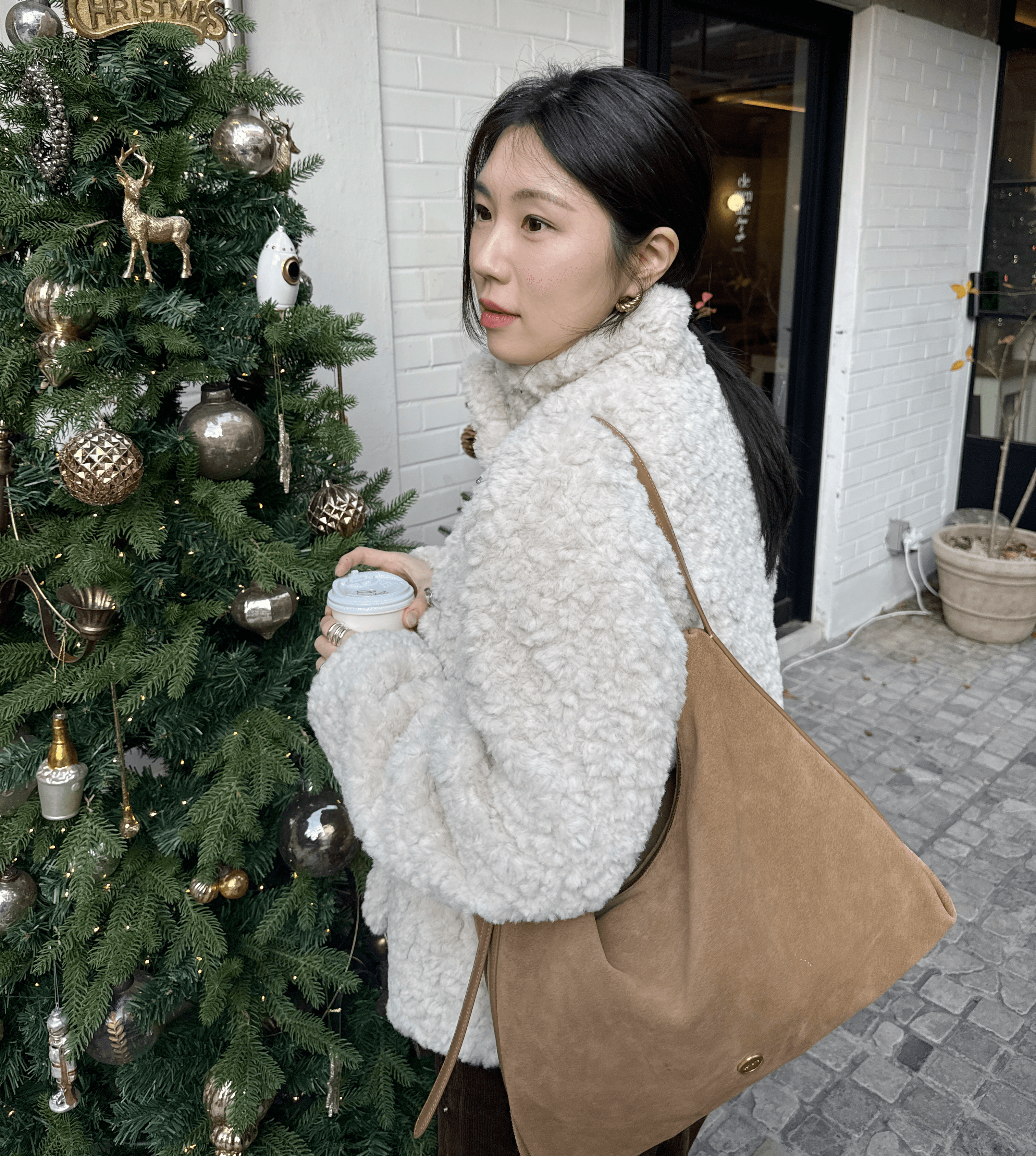 리얼 카우 스웨이드를 사용하여 고급스러운 느낌을 주는 호보백입니다.자연스럽게 쳐지는 실루엣에 르메메 시그니처 실링 스탬프 장식이 더해져 르메메만의 빈티지 캐주얼 스타일을 담았습니다.