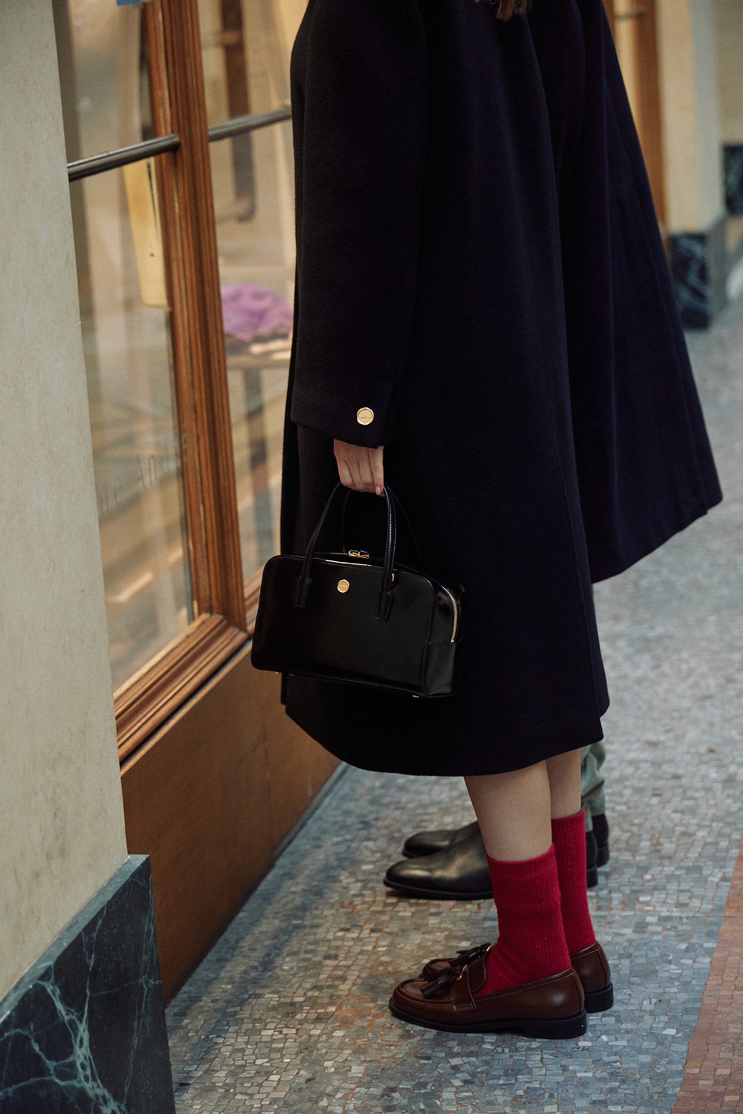 은은한 광택감의 클래식한 디자인의 토트백입니다.클래식한 볼링백 쉐입과 르메메 시그니처 실링 스탬프 버튼장식과 더해서 빈티지한 무드를 전달합니다.블랙, 번트 레드, 아이보리 3가지 컬러로 만나보실 수 있습니다.