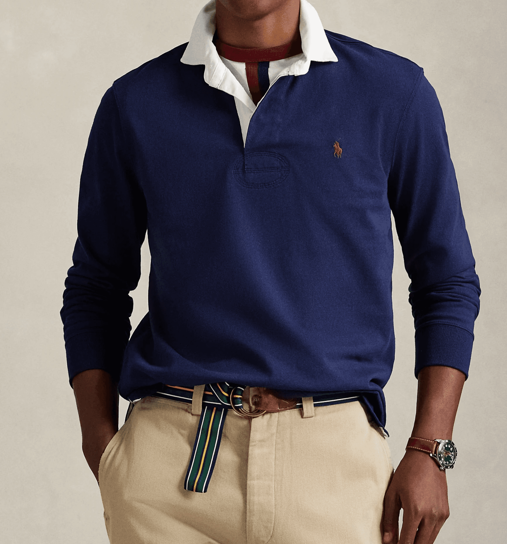 애슬레틱 디테일과 유행을 타지 않는 디자인이 어우러진 아이코닉 럭비 셔츠입니다. 여러번 입어도 튼튼한 내구성 있는 코튼 저지 소재로 데일리 룩을 완성해보세요