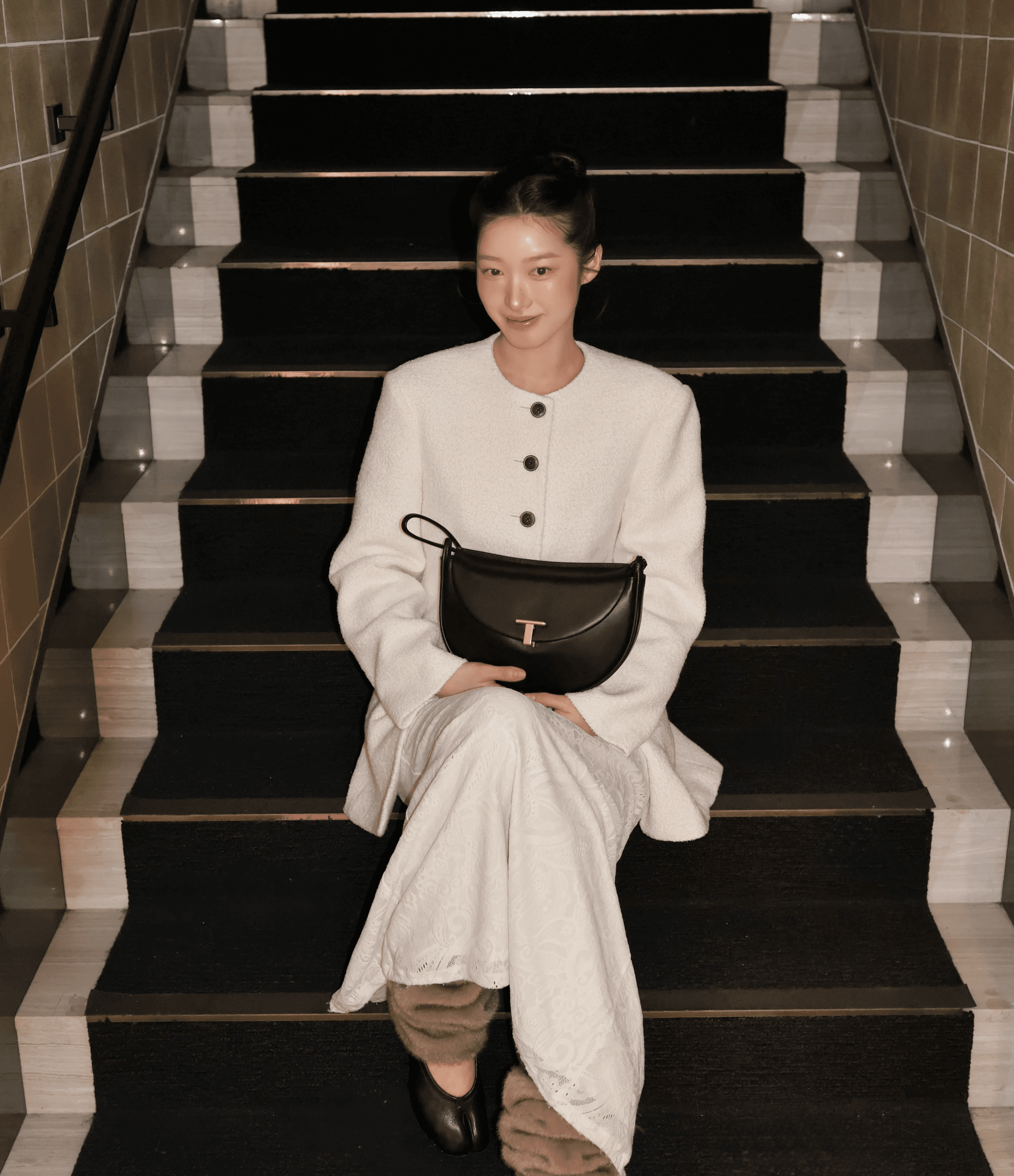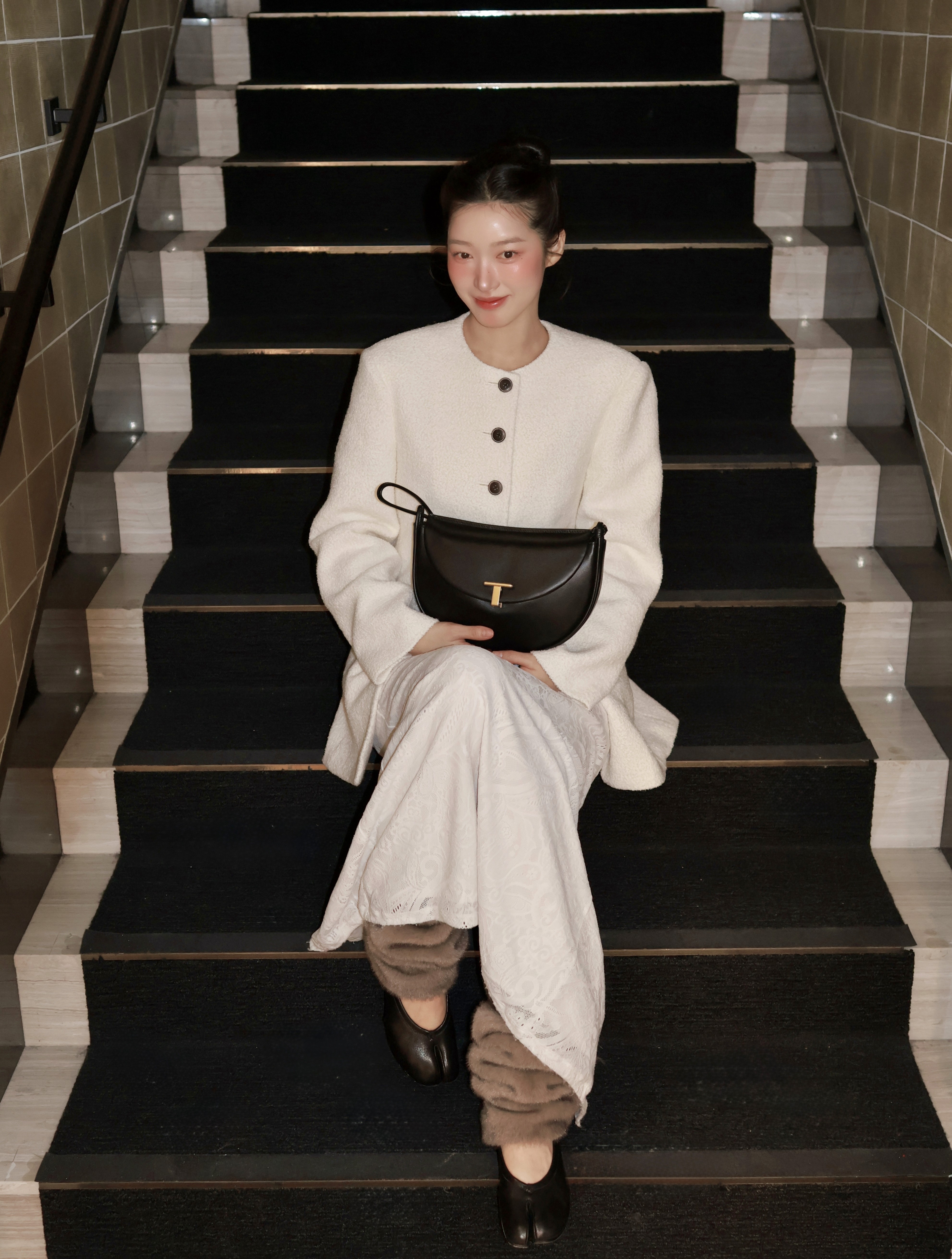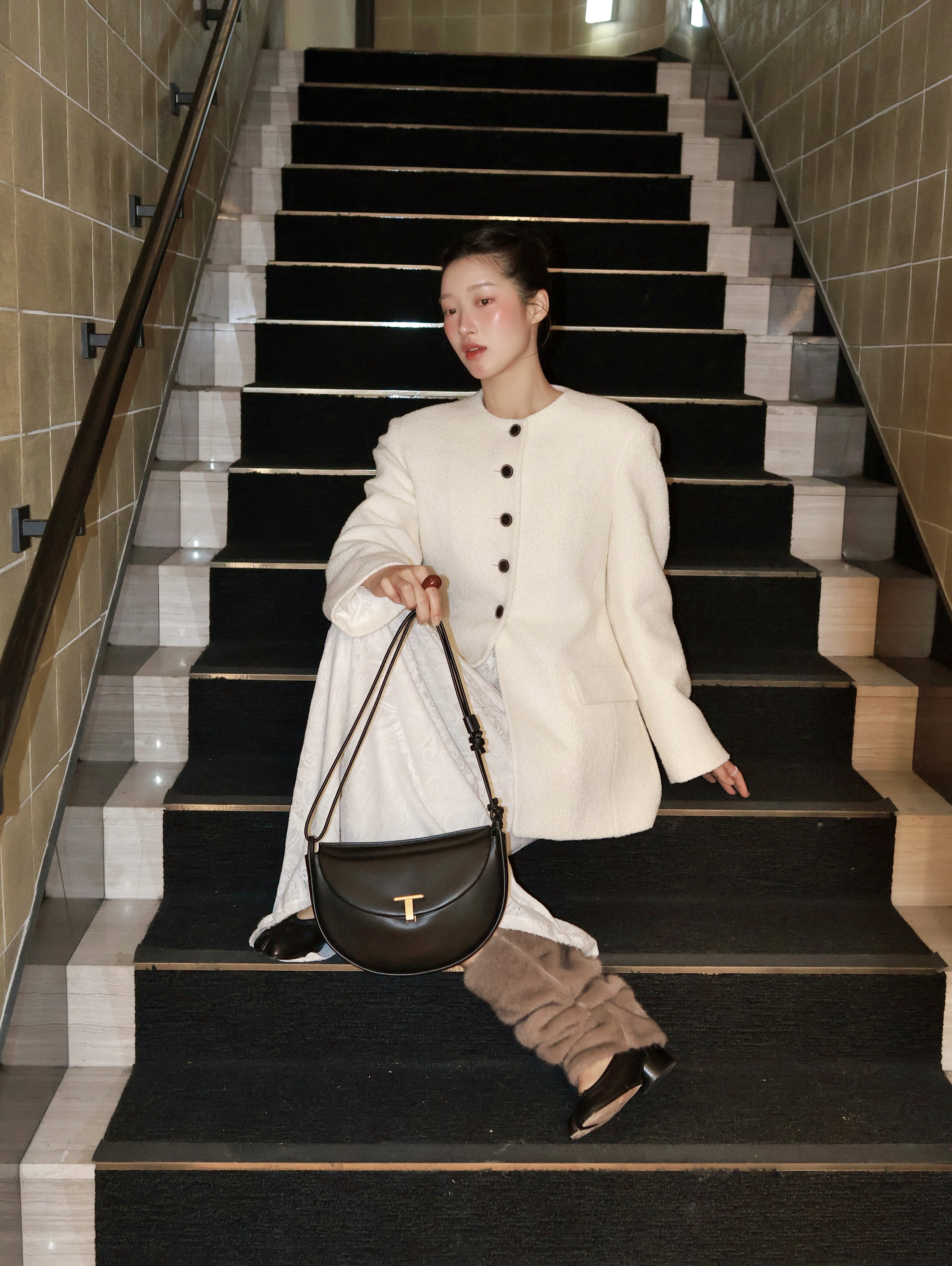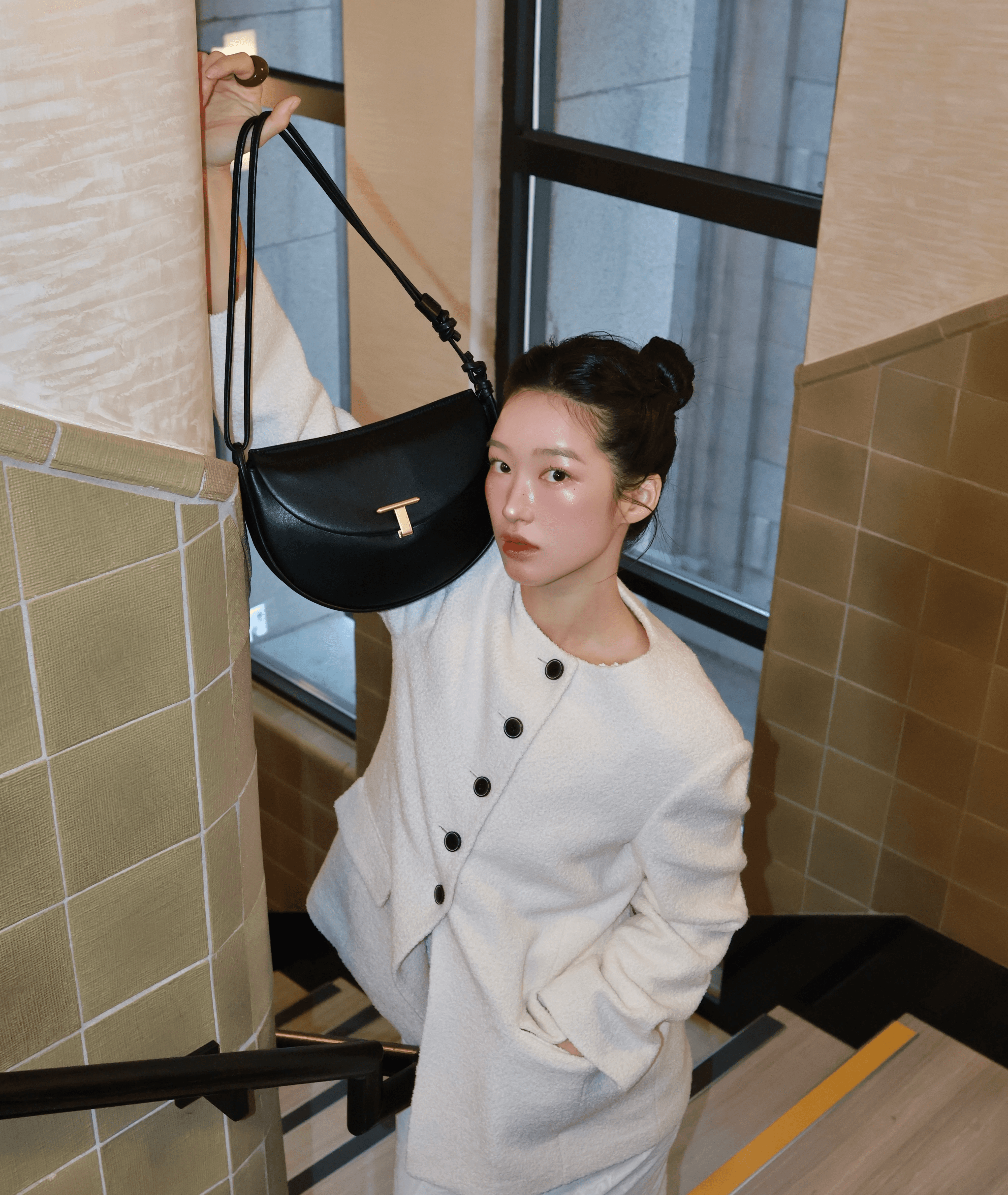심플하면서도 모던한 감각이 돋보이는 셀리 숄더백입니다. 밴딩된 섬세한 라인감의 턴 락 장식으로 우아하게 클로징되며 백의 입구에서부터 이어지는 스트랩이 특징이에요.