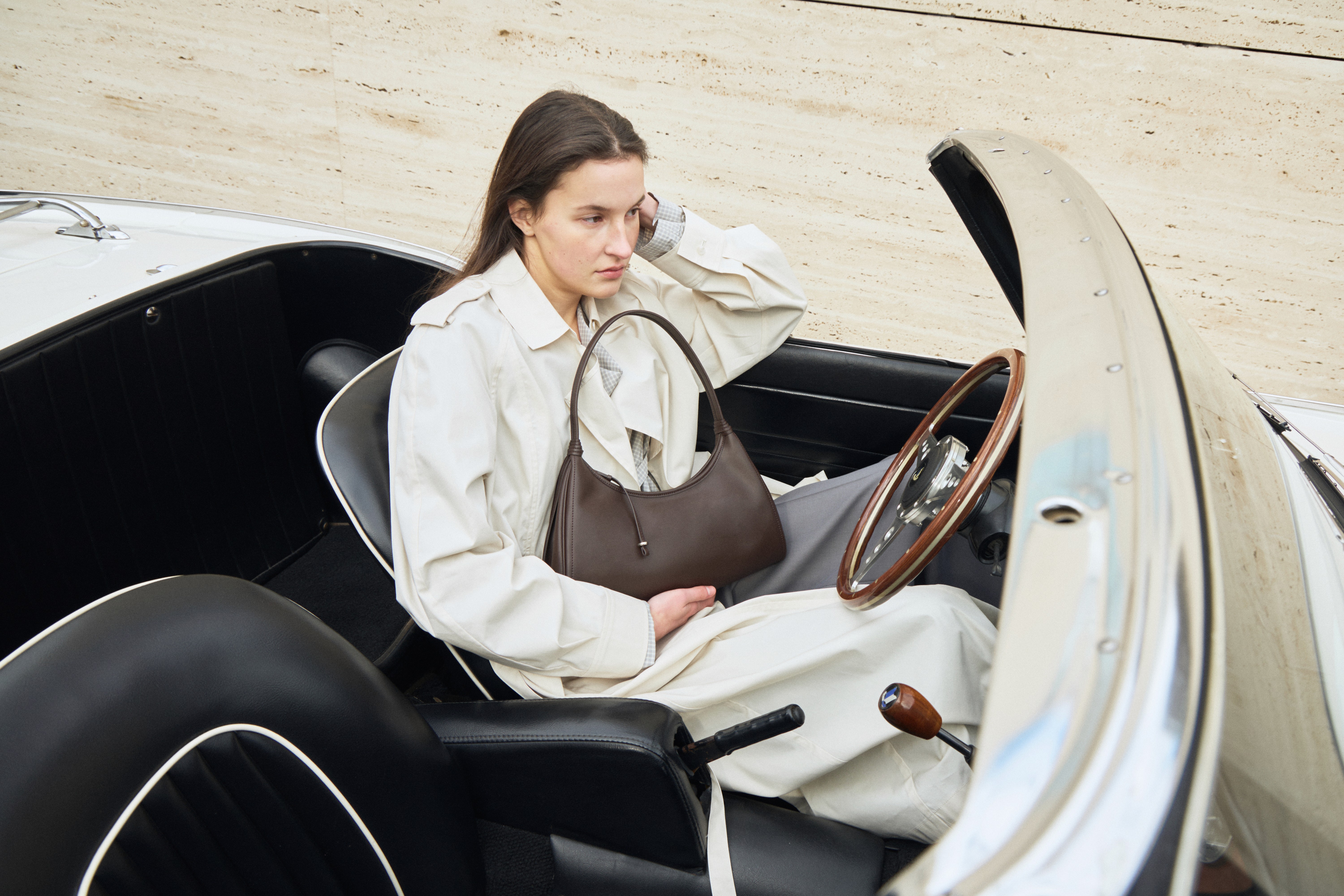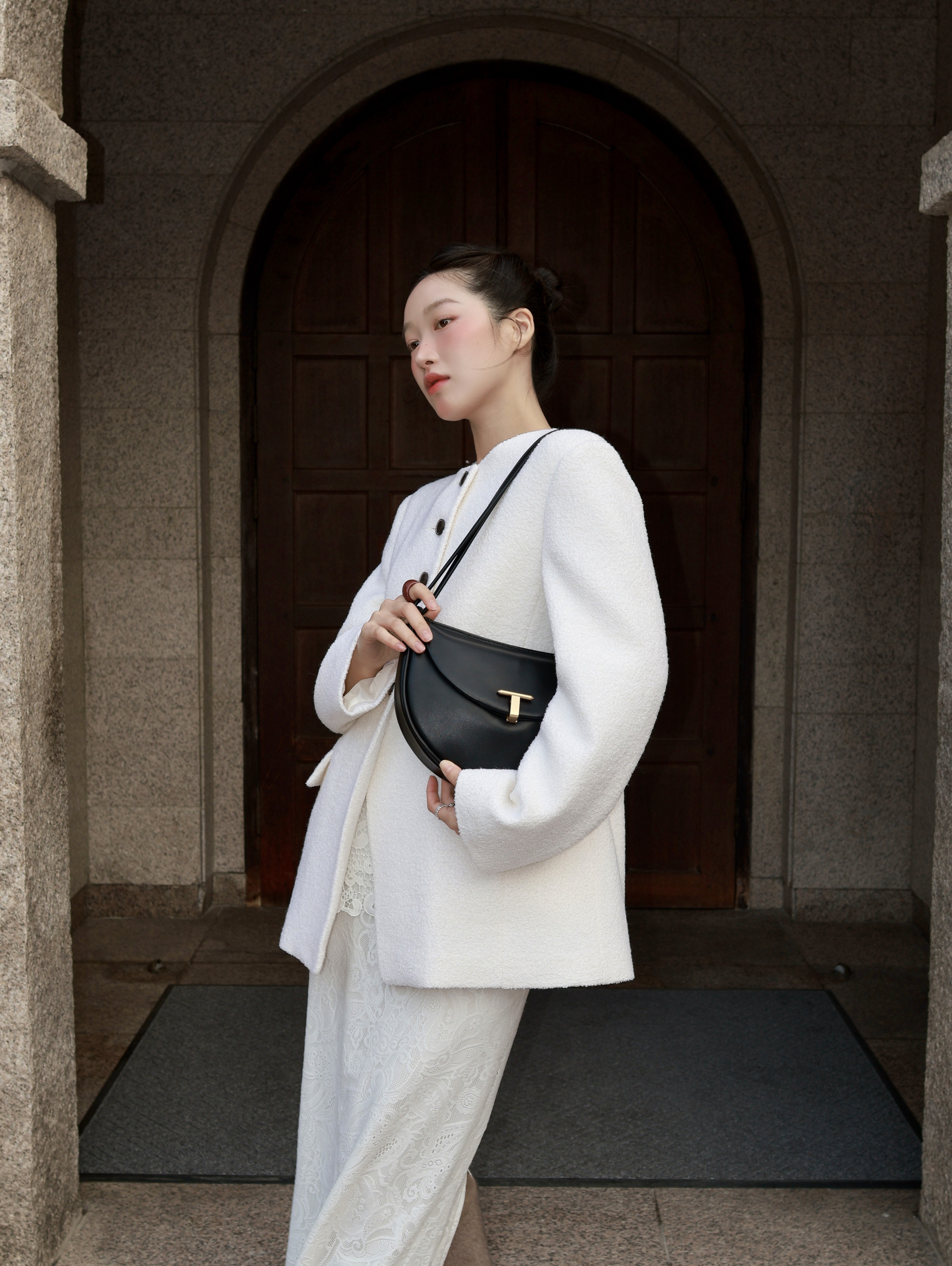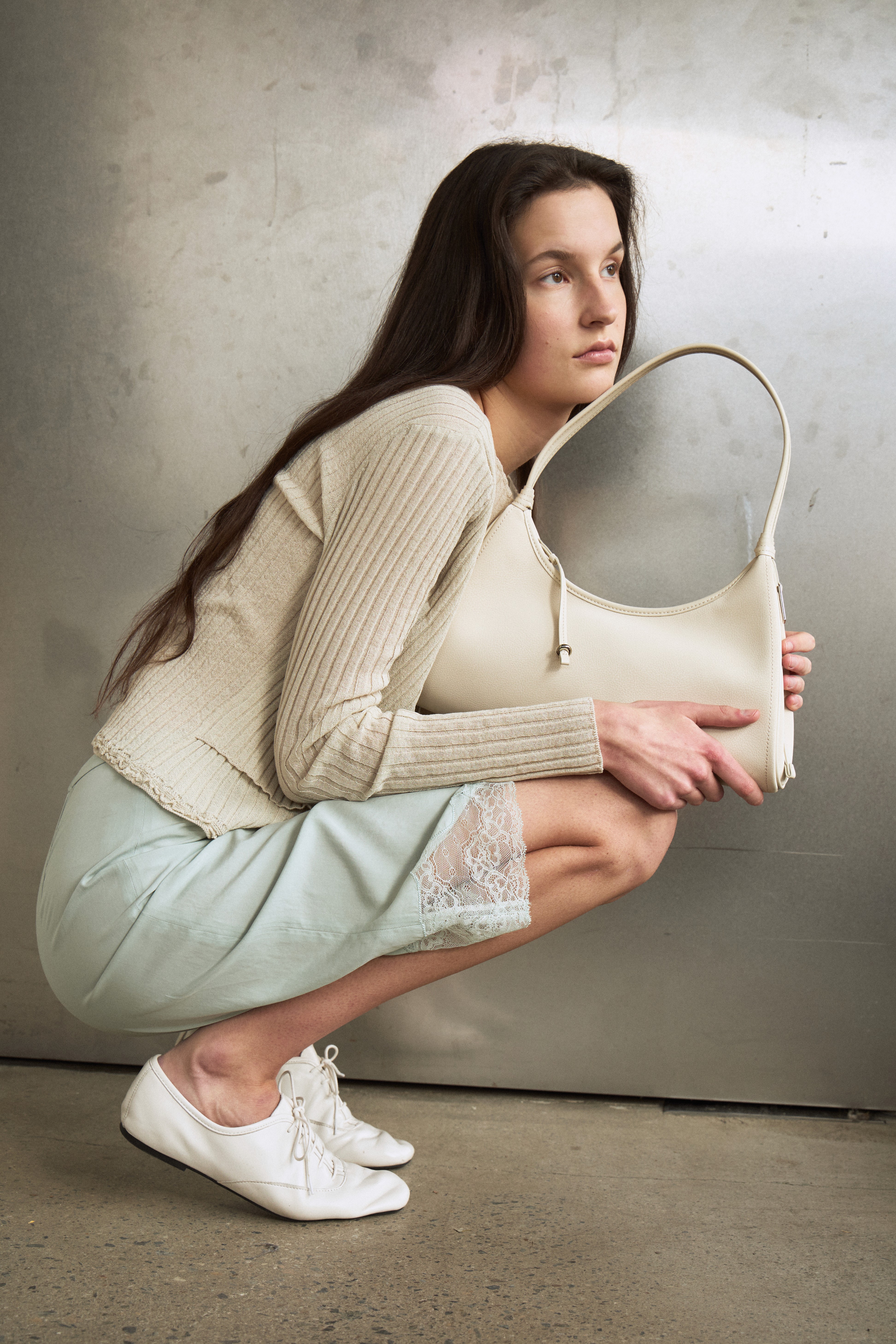 슬림하고 가벼운 바디에 섬세한 띠 디테일이 더해져 여성스러움이 가미된 숄더백입니다. 자연스러운 슬라우치되는 바디감으로 SS 시즌 가볍게 들기 좋아요.