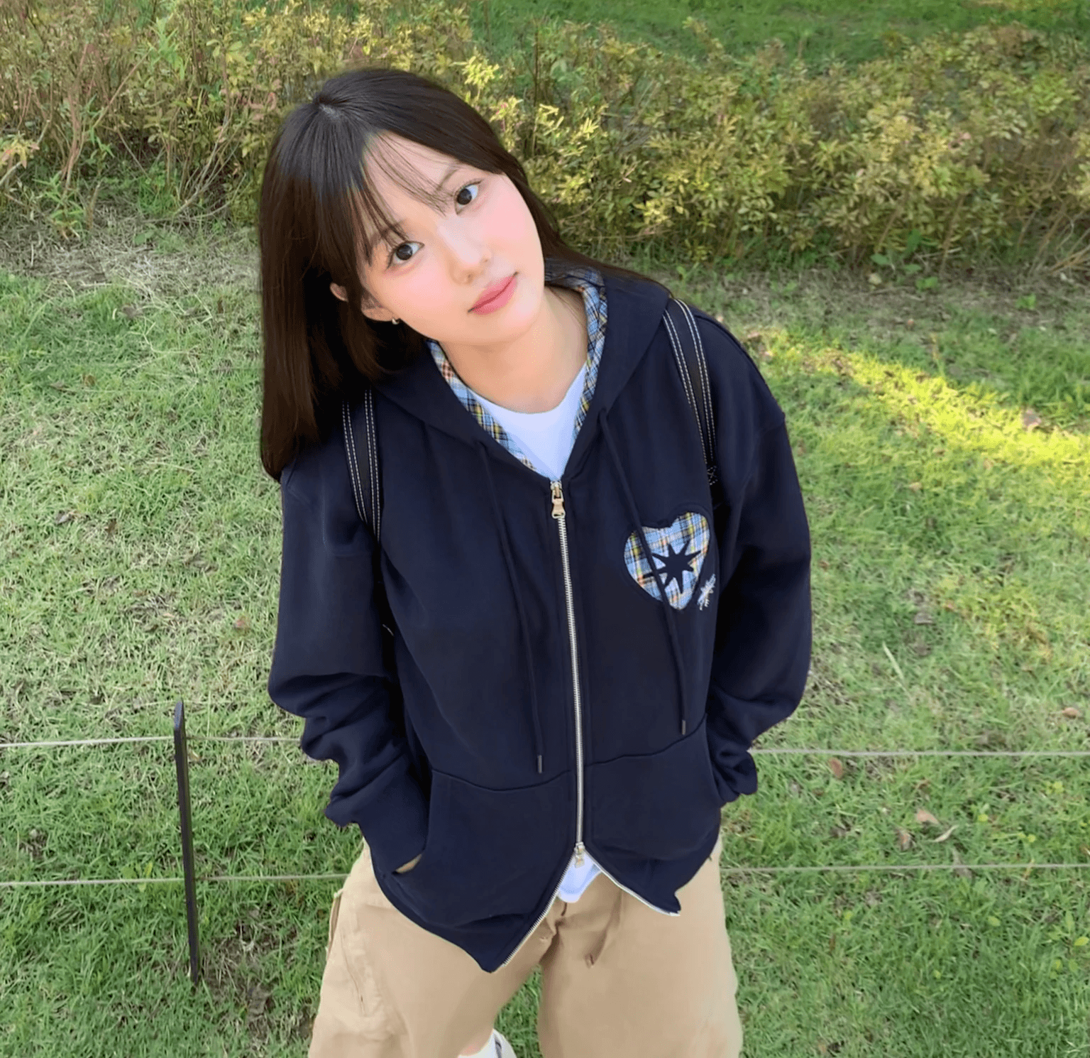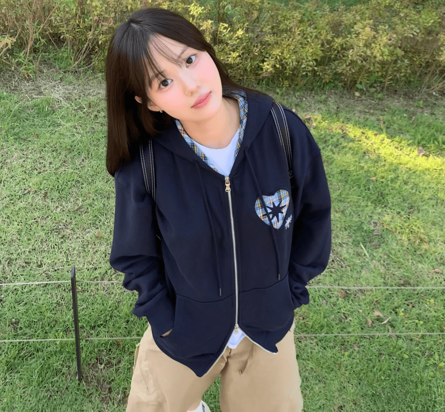 단독과 이너 모두 활용 가능한 두께감에 텐타덤블 가공으로 형태 안정성을 높이고, 세미 오버핏 실루엣과 2WAY 지퍼, 체크 안감과 하트 아플리케로 빈티지한 컬러 포인트를 더한 후디 아이템입니다.