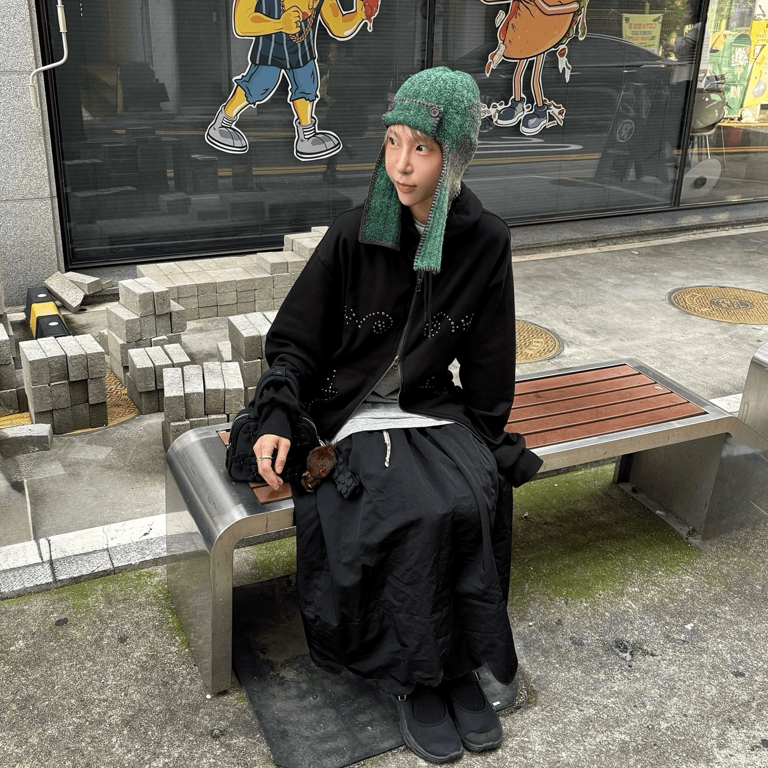 단독과 이너 모두 활용 가능한 두께감에 텐타덤블 가공으로 형태 안정성을 높이고, 세미 오버핏 실루엣과 2WAY 지퍼, 웨스턴 무드의 스터드 디테일과 캥거루 포켓을 더한 집업 아이템입니다.