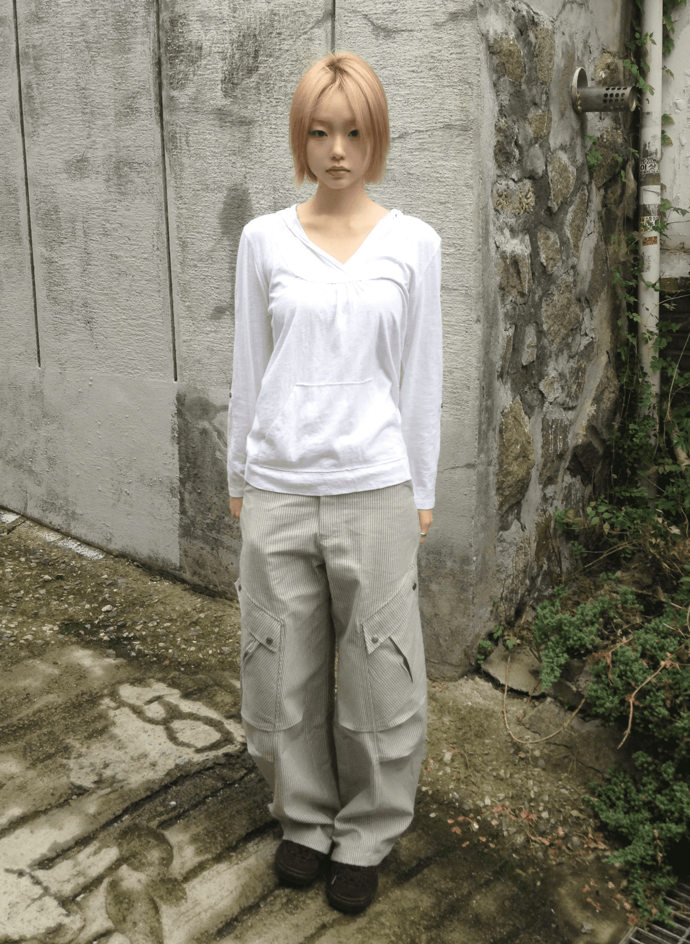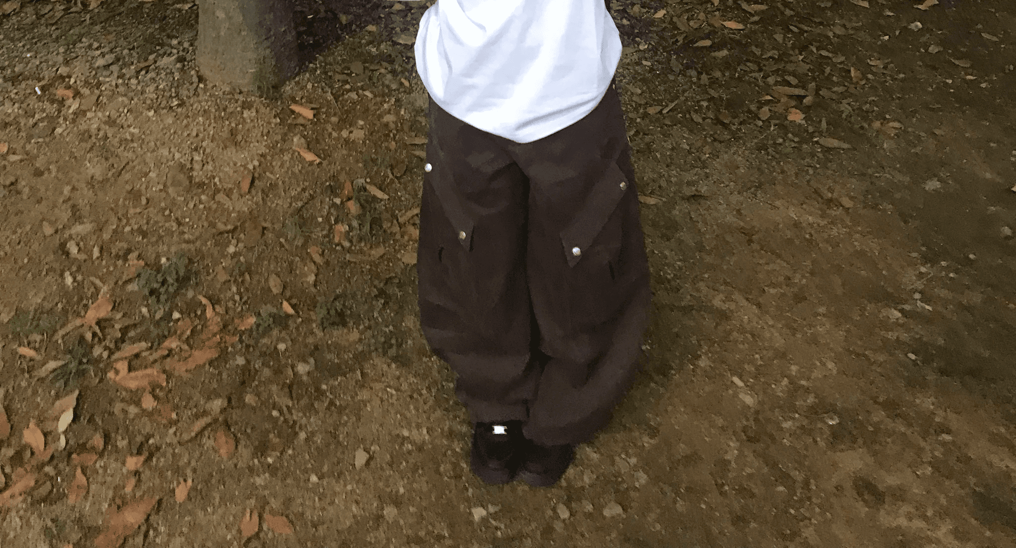 10수 코튼 원단에 피치, 바이오 가공을 더해 고시감과 보온감을 동시에 살리고, 파라슈트핏 실루엣에 카고 포켓과 핀턱, 웨스턴 무드 리벳 디테일을 더한 팬츠입니다.