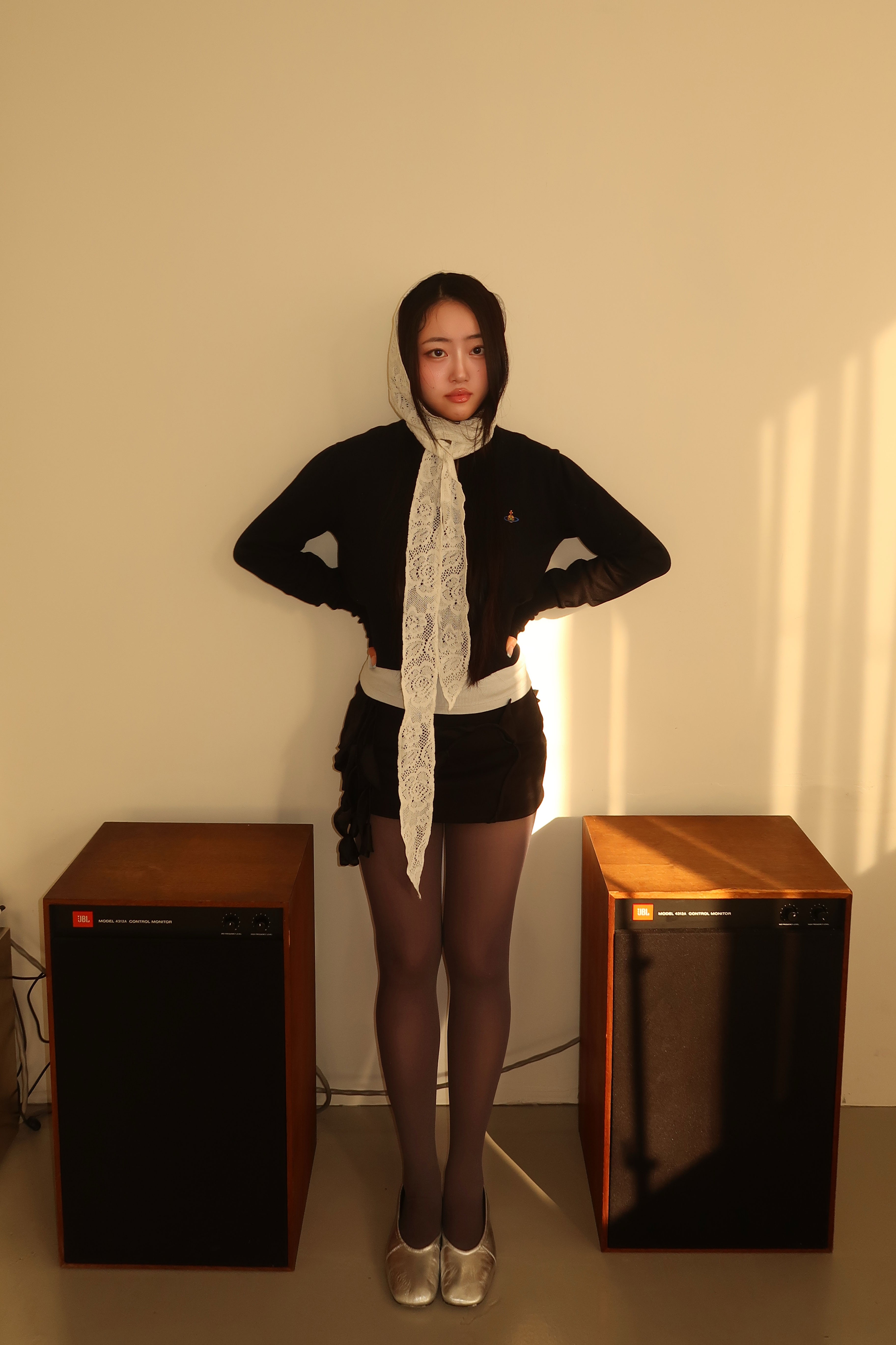 후디와 스카프를 결합한 유니크한 아이템으로 다가올 따뜻한 봄, 레이스 디테일이 룩의 포인트를 잡아줍니다.