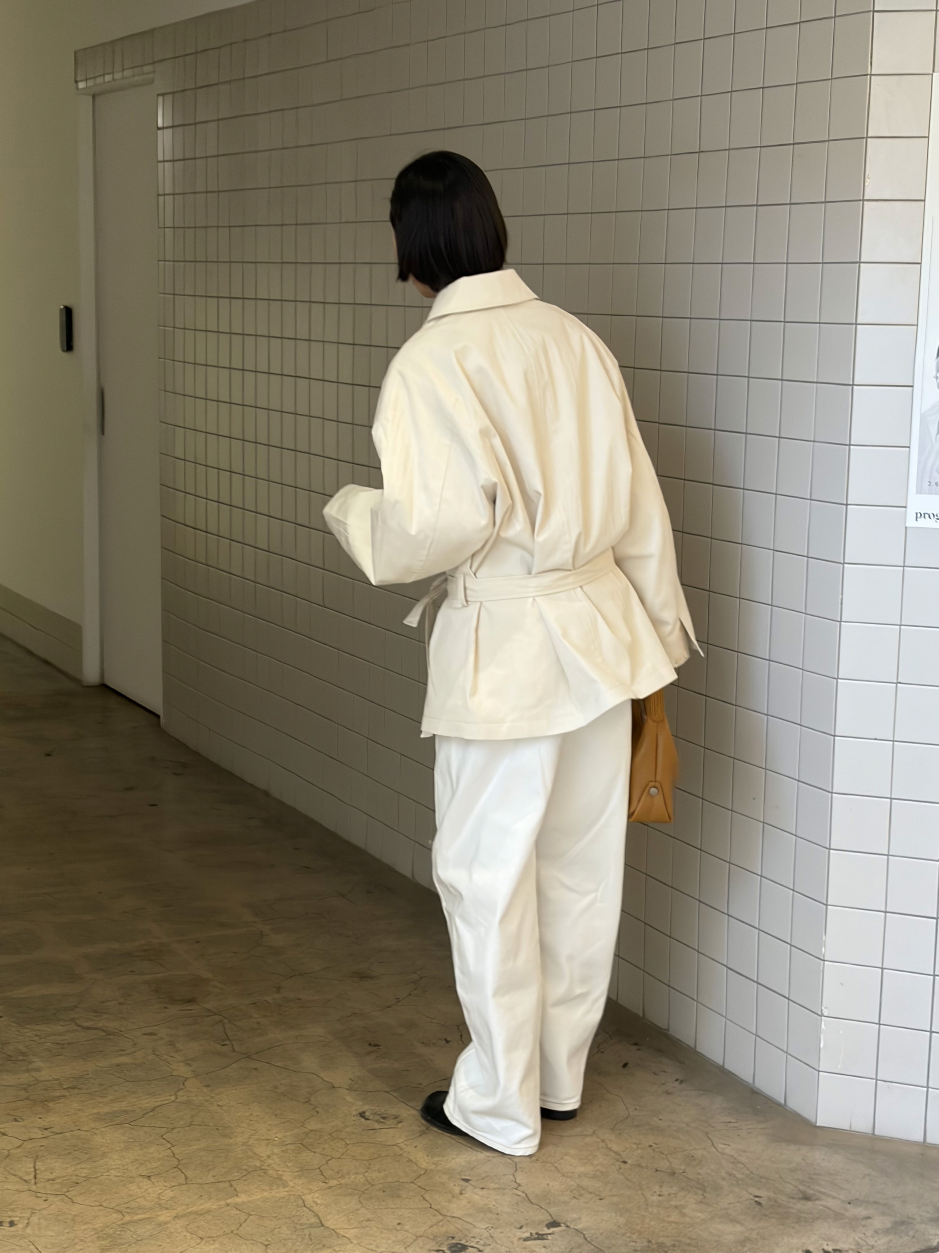 하프 트렌치를 활용해 워크 무드와 포멀 스타일을 선보입니다. 벨티드 트렌치와 트러커 팬츠로 실루엣과 디테일을 살린 워크 무드를 연출하고, 하이넥 트렌치와 퍼티그 포켓 롱 스커트로 단정하면서도 캐주얼한 포멀룩을 연출합니다.
