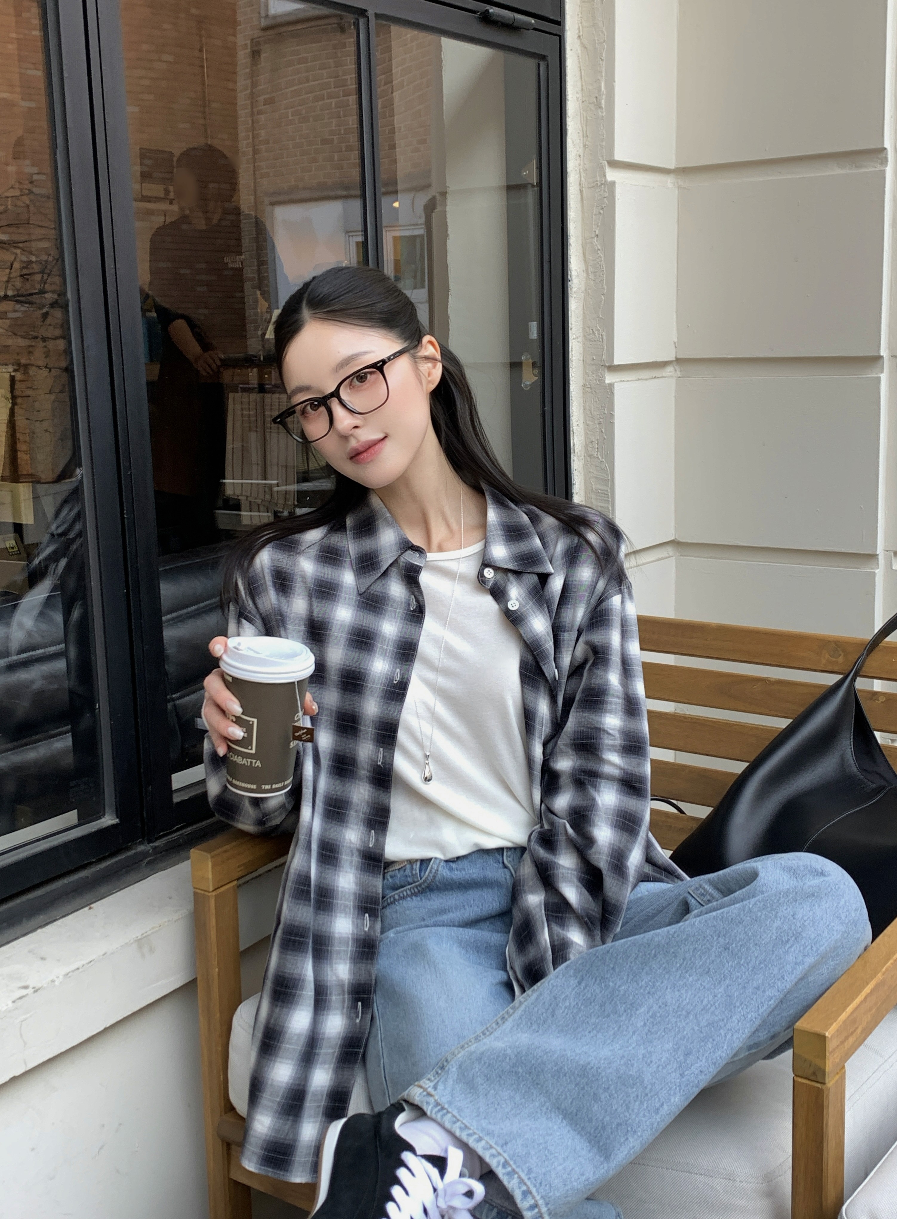 체크 셔츠로 시크하면서 편안한 캐주얼 스타일을 연출합니다. 블랙, 크림 컬러 체크와 올 블랙 부츠컷 진으로 절제된 클래식 시크를 살리고, 여유 있는 루즈핏의 그라데이션 체크와 데님 팬츠로 감각적이고 편안한 데일리 캐주얼룩을 완성합니다.