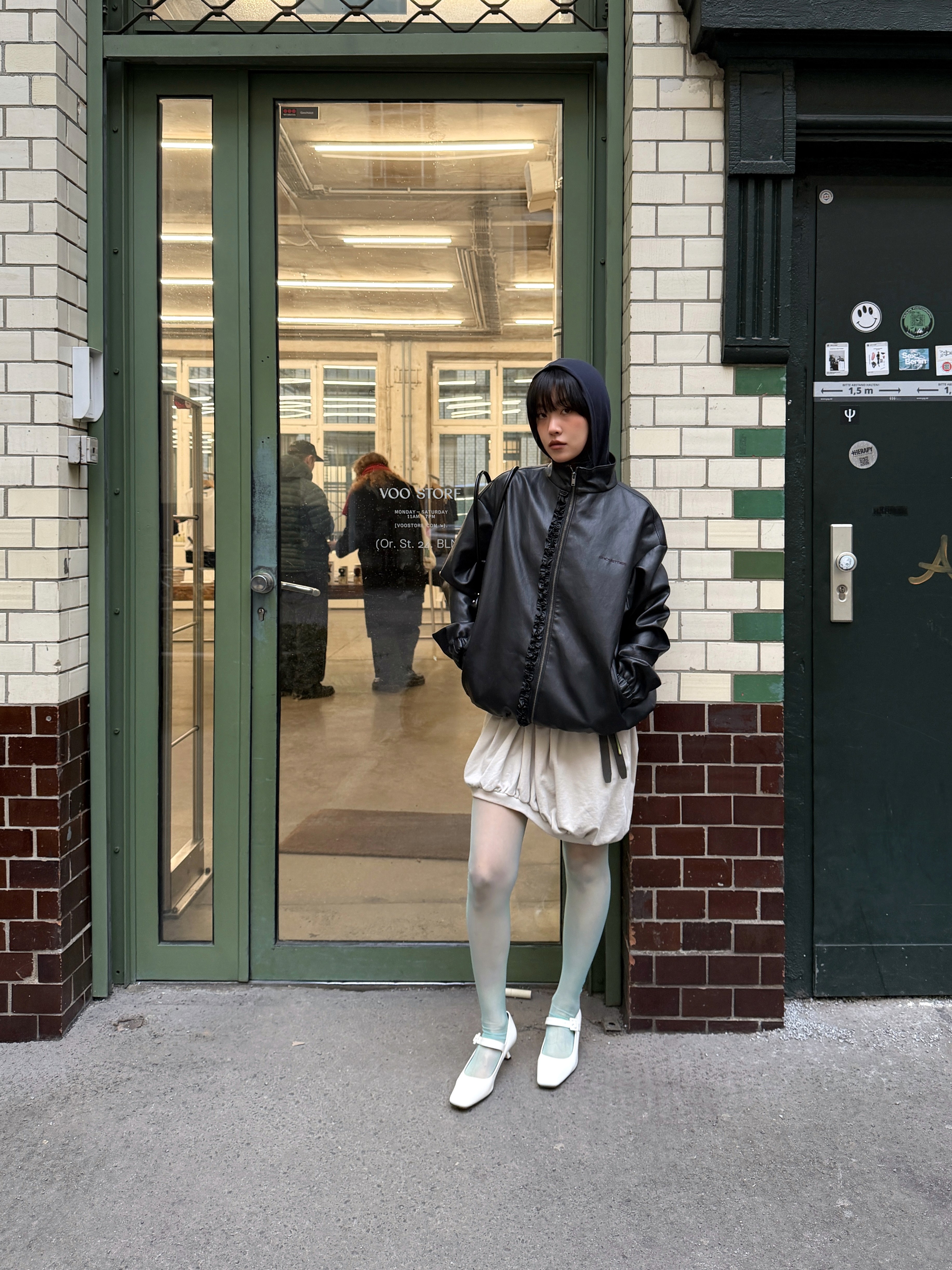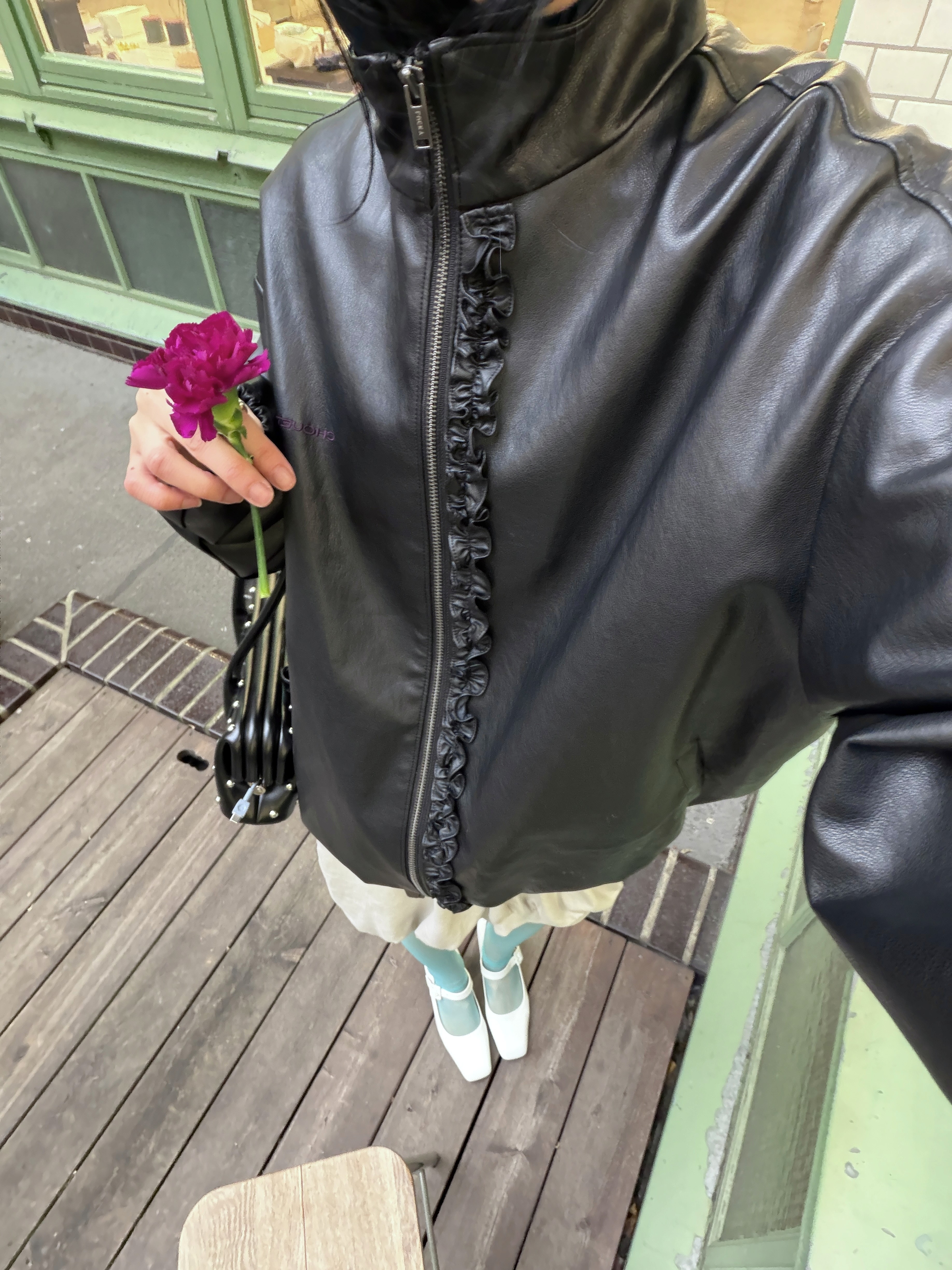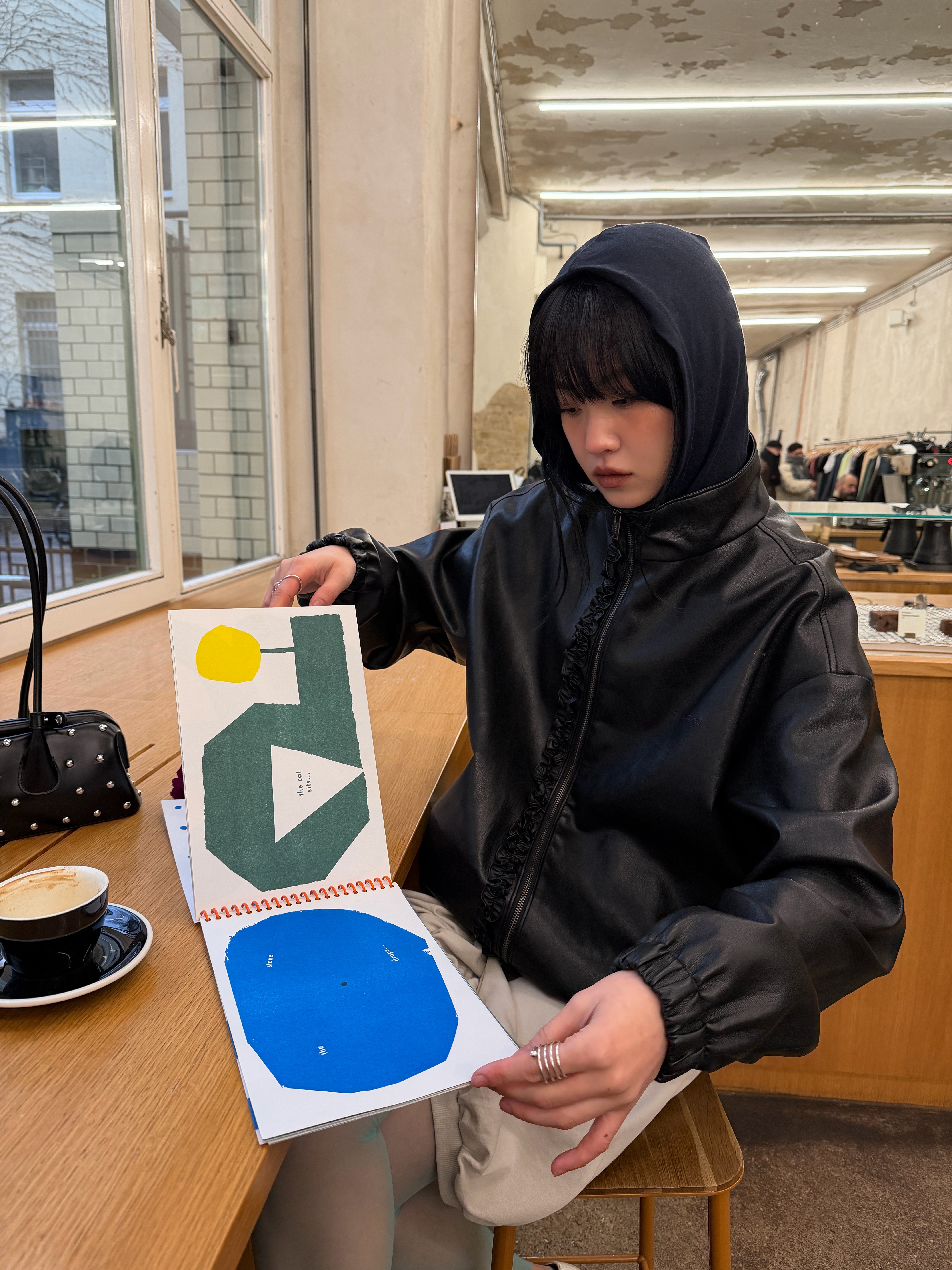 한지인의 스타일링을 참고해서 봄에 어울리는 레더 자켓을 활용해보세요.