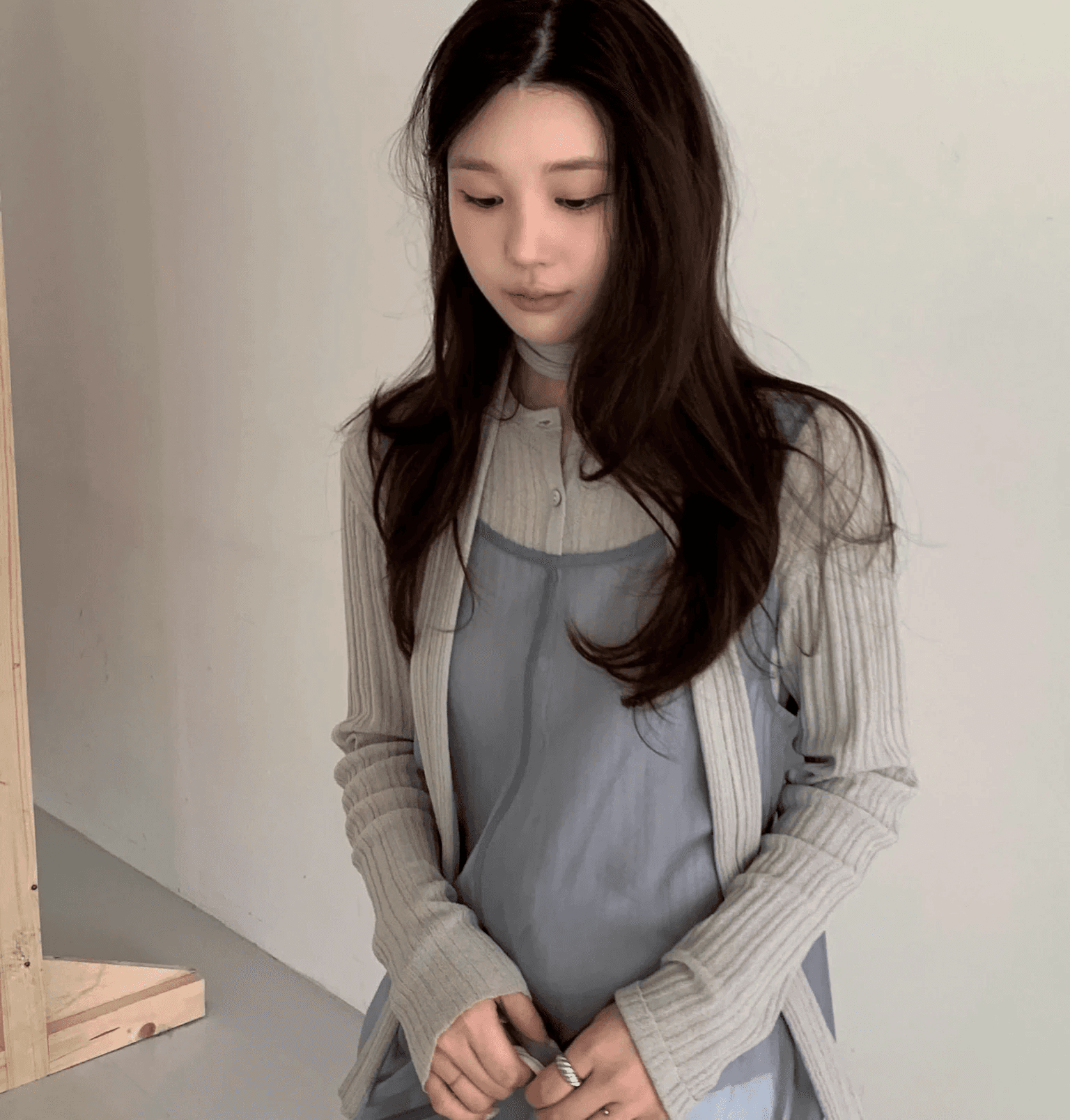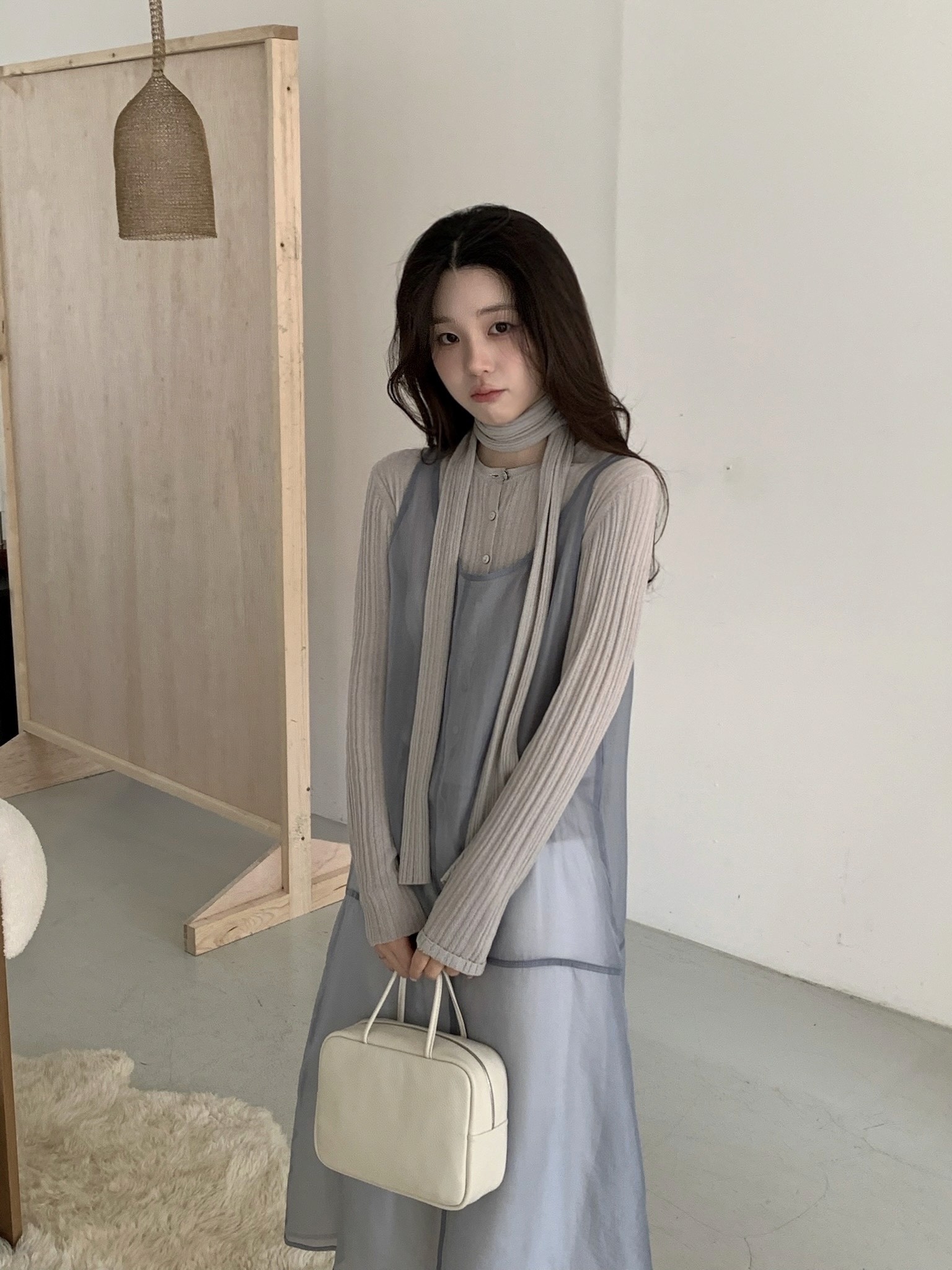 울, 텐셀 혼방의 불규칙한 골지 가디건 & 스카프 세트입니다. 텐션이 좋아 슬림 라인을 잡아주고, 엘리떼 원사로 탄성, 복원력이 뛰어납니다. 같은 조직으로 제작된 스카프가 함께 구성되어 다양한 연출이 가능합니다.