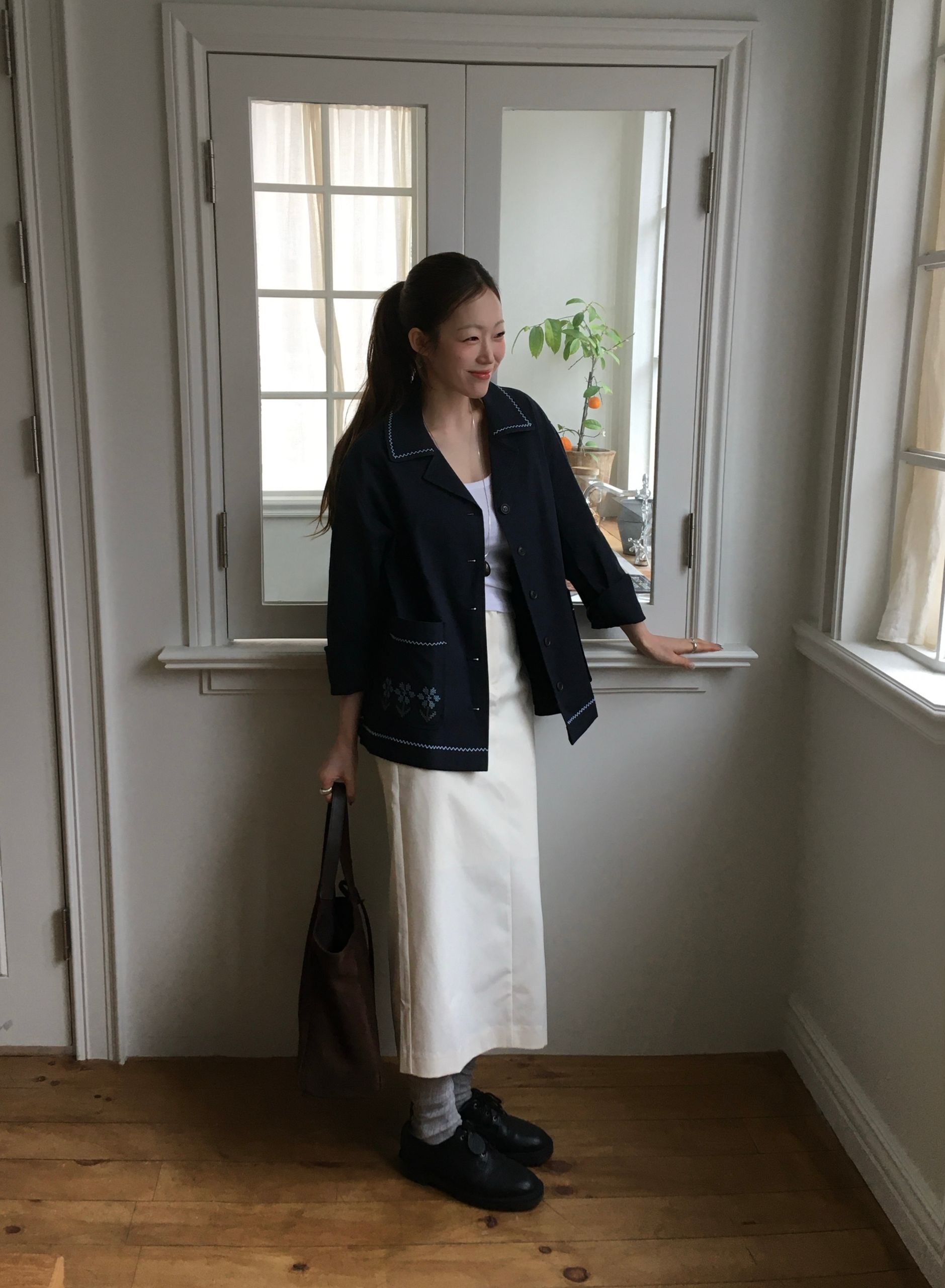 아워호프만의 감성을 담은 푸른 빛의 플로럴 자수 패턴이 매력적인 코튼 자켓입니다. 트렌디한 무드의 워크 자켓 디자인을 일상에서 활용할 수 있도록 재해석하였으며, 플로럴 패턴이 여성스러운 분위기를 더해줍니다.