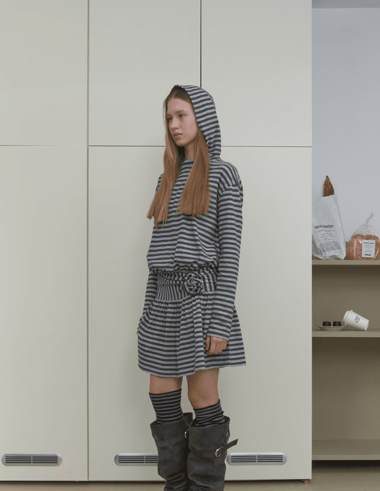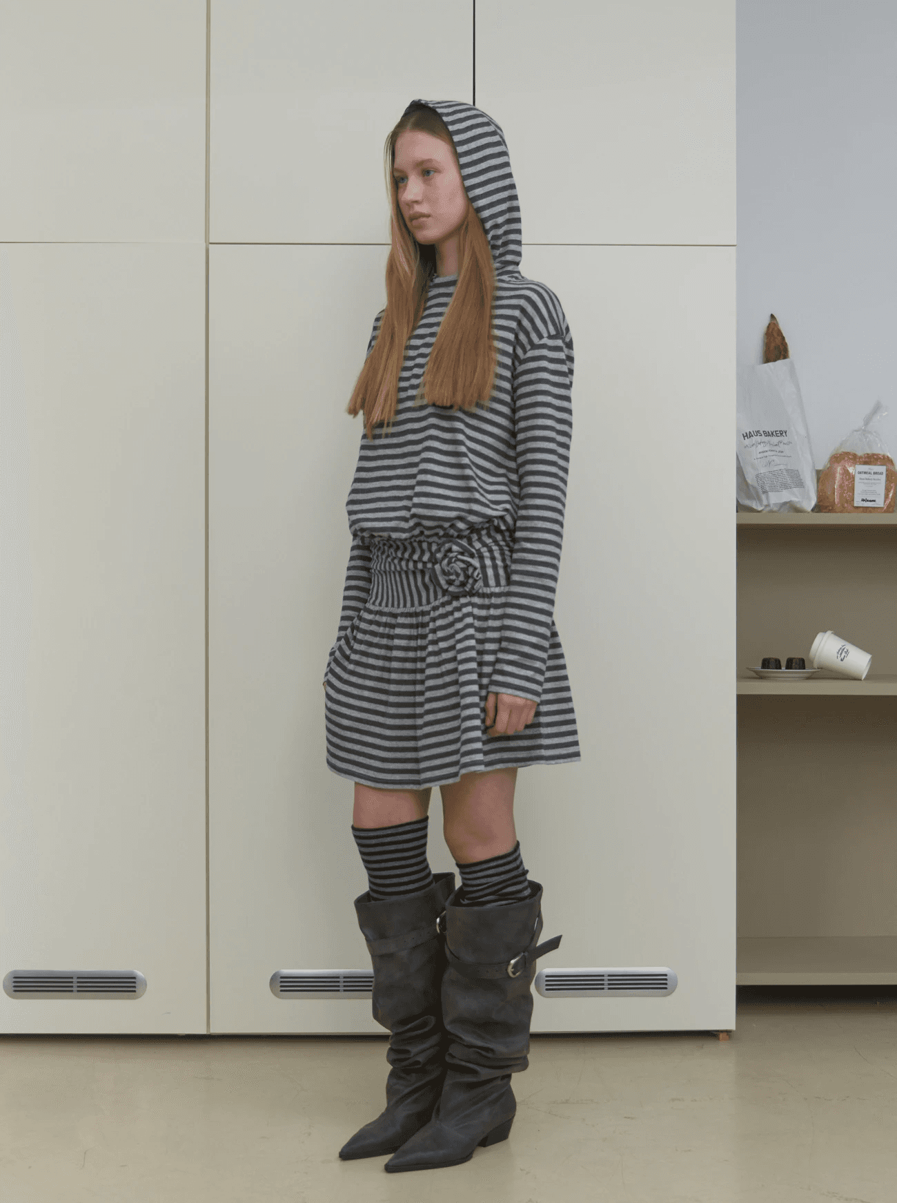 면 100%로 부드러운 터치감의 스트라이프 원단으로 제작된 후드 원피스. 허리 라인 절개와 셔링 디테일로 자연스러운 실루엣을 연출하며, 스트라이프 방향을 세로로 사용해 은은한 포인트를 더했습니다. 편안한 착용감과 캐주얼한 무드로 데일리 룩으로 활용하기 좋은 아이템입니다.
