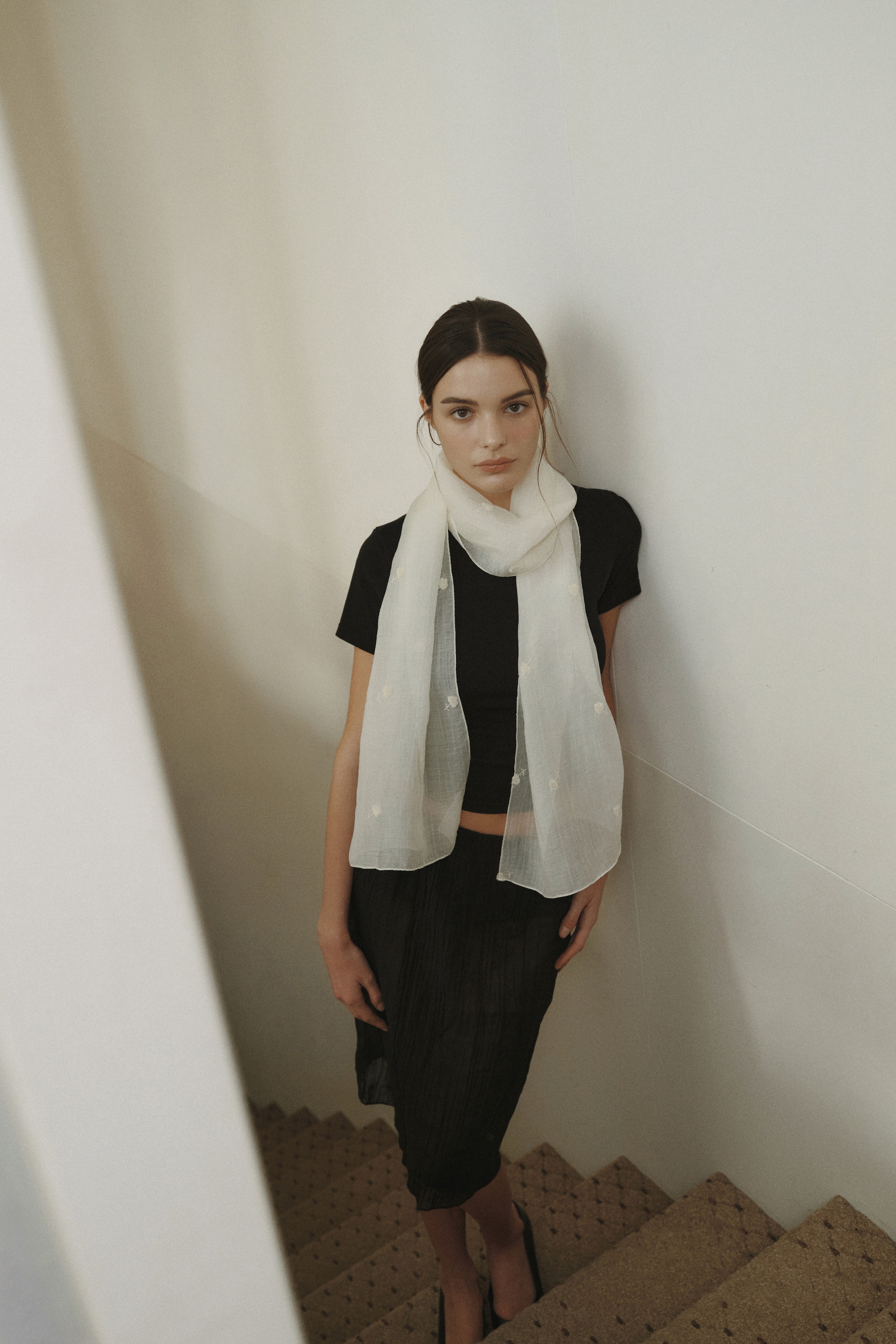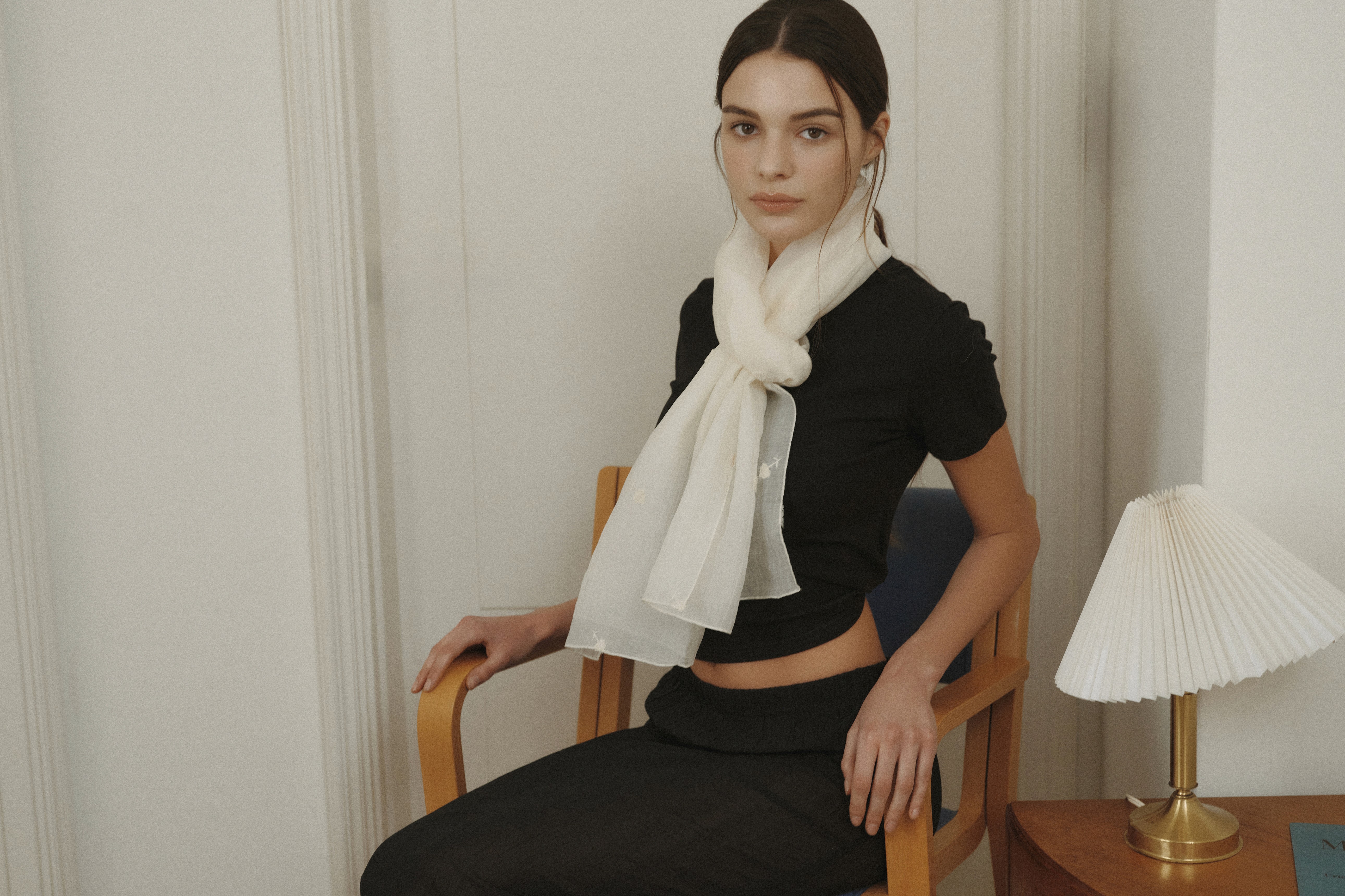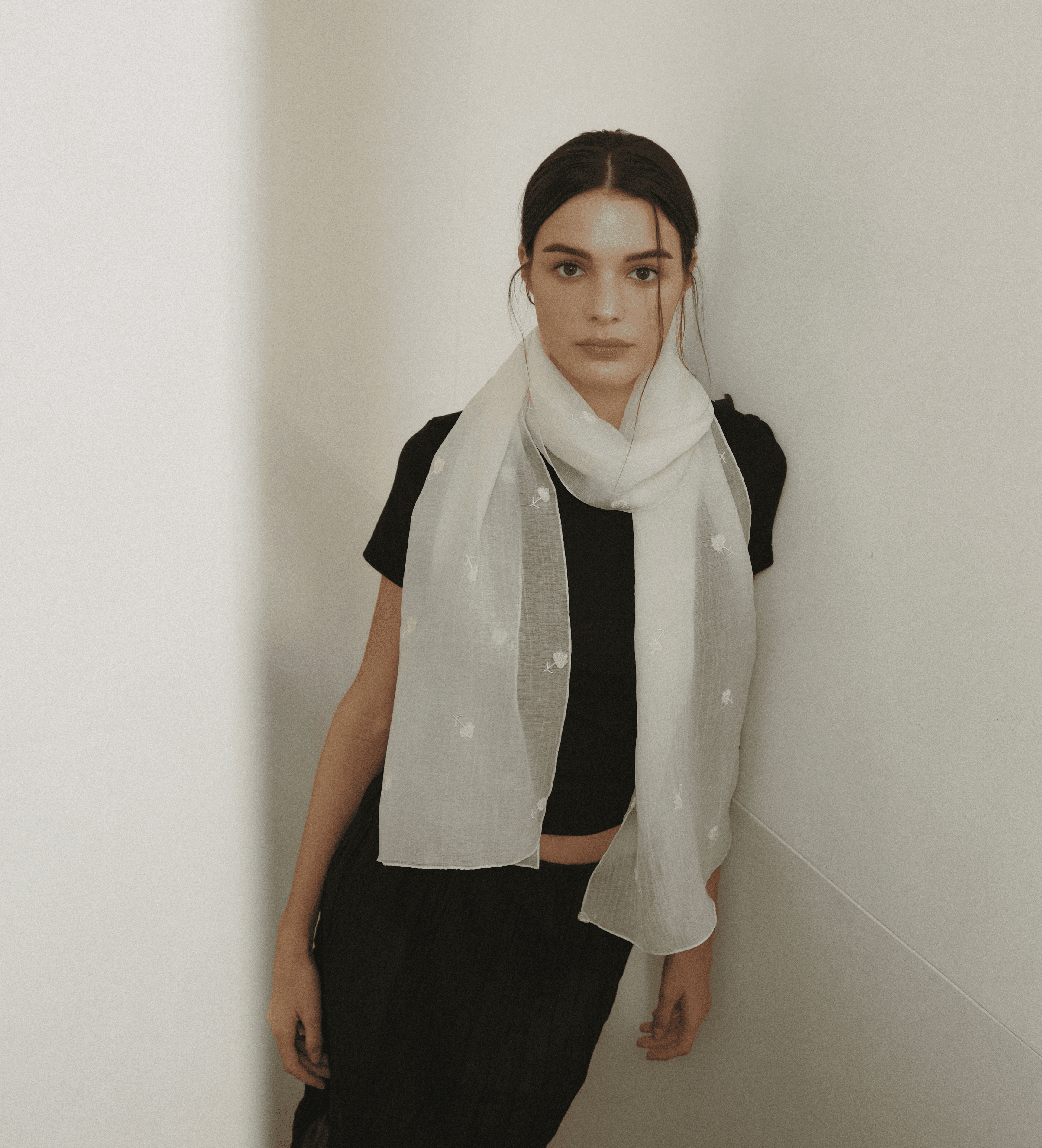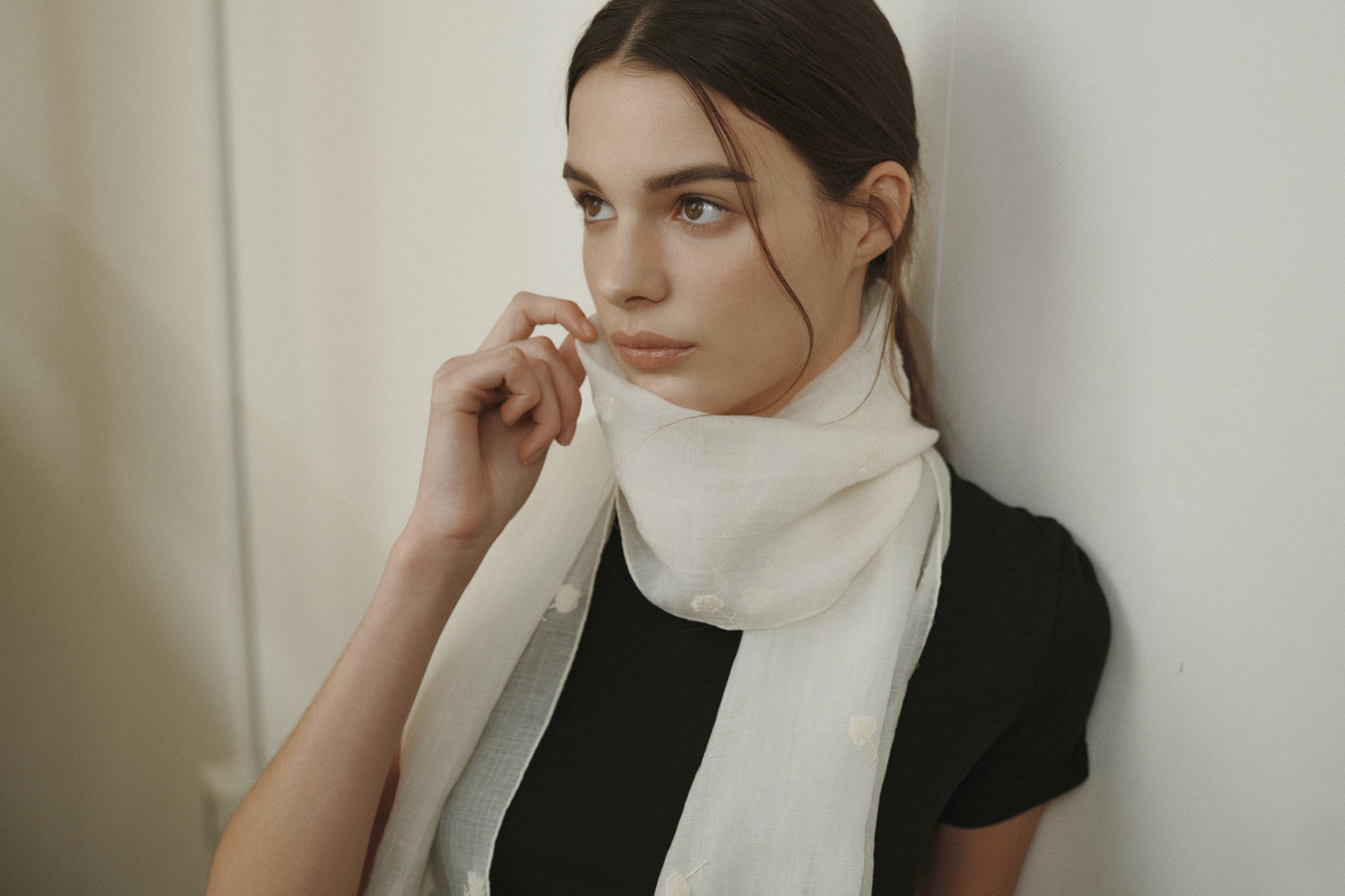 은은한 플라워 자수와 가벼운 텍스처로 룩에 화사함을 더하는 레아 스카프, 텐셀과 나일론 혼방 소재 특유의 부드러운 터치감으로, 일상 속에서 부담 없이 편안하고 우아하게 즐기기 좋습니다.