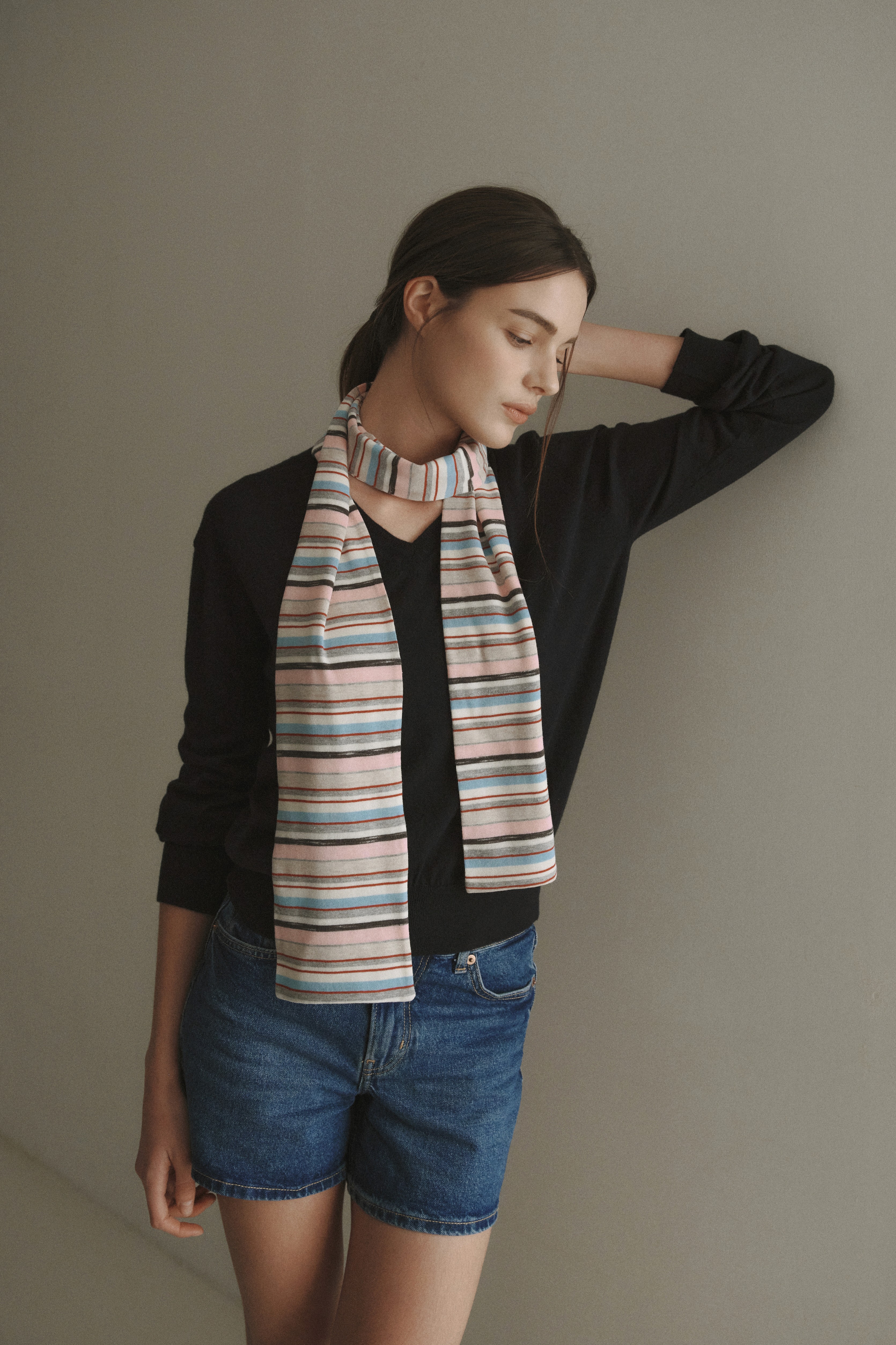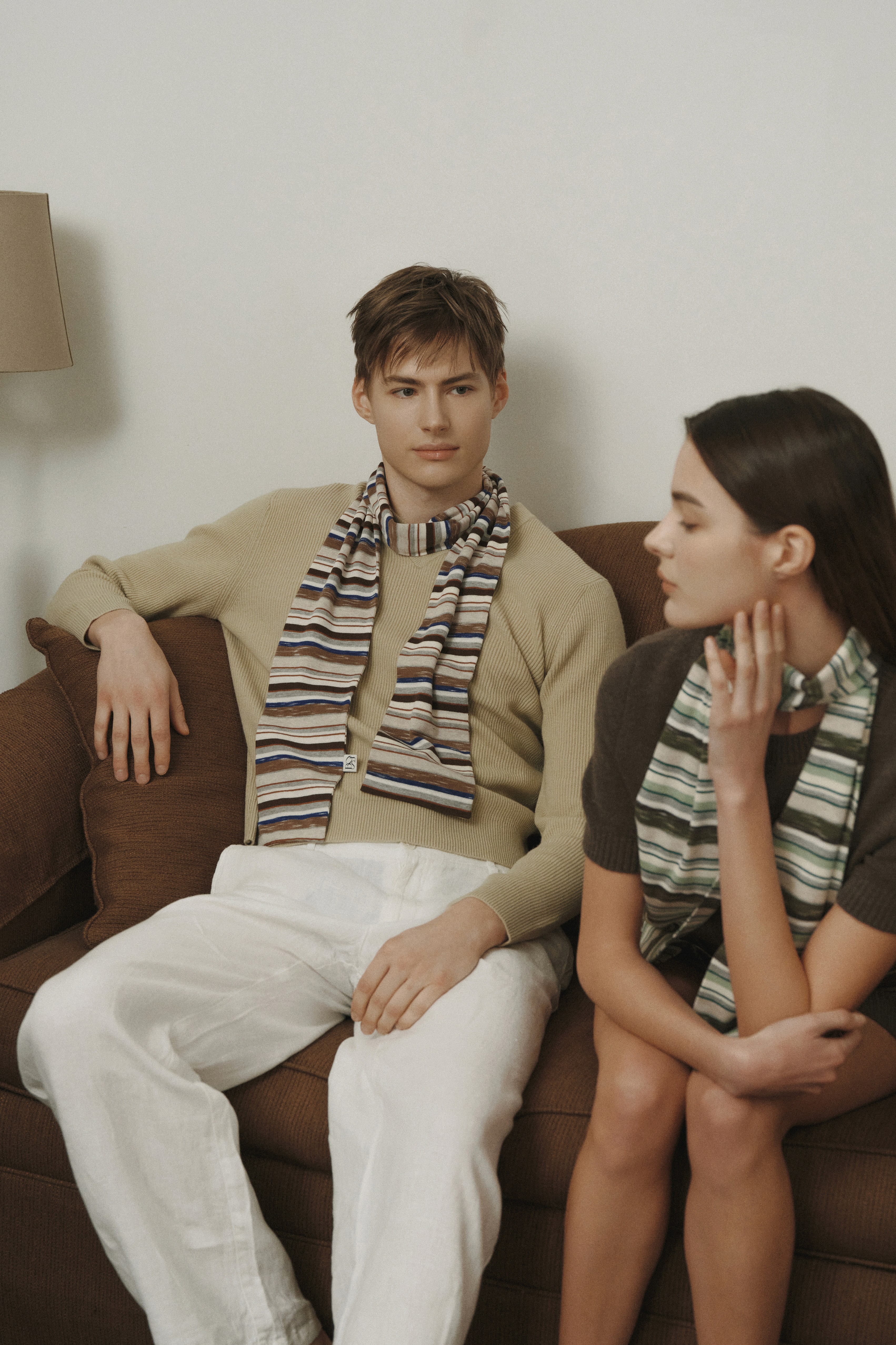 경쾌한 스트라이프 패턴과 포근한 텍스처가 매력적인 선데이 머플러, 실용적인 코튼 혼방 소재와 성별에 구애받지 않는 캐주얼한 디자인으로 누구에게나 편안한 데일리 포인트가 되어줍니다.