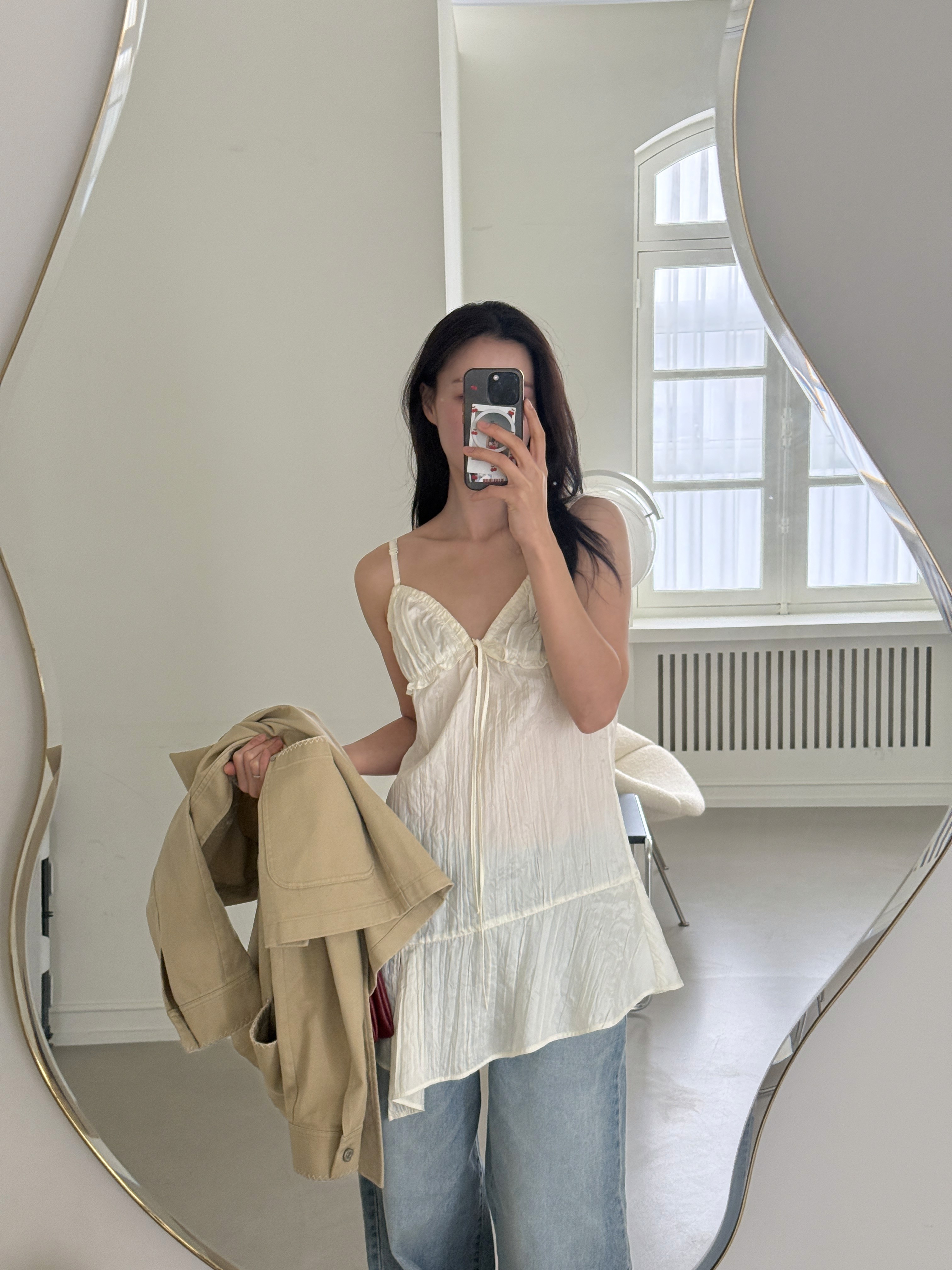카라와 요크 라인을 따라 수놓은 섬세한 플라워 자수 재킷과 러플 디테일의 크링클 원피스를 매치한 감각적인 스타일링을 소개해요. 은은한 광택과 내추럴한 링클 텍스처가 돋보이는 원피스에 세미 오버핏의 코튼 재킷을 더해 편안하면서도 로맨틱한 분위기를 연출하고, 내추럴 워싱의 와이드 데님 팬츠를 레이어드해 스타일리시한 믹스매치 룩을 완성했어요.