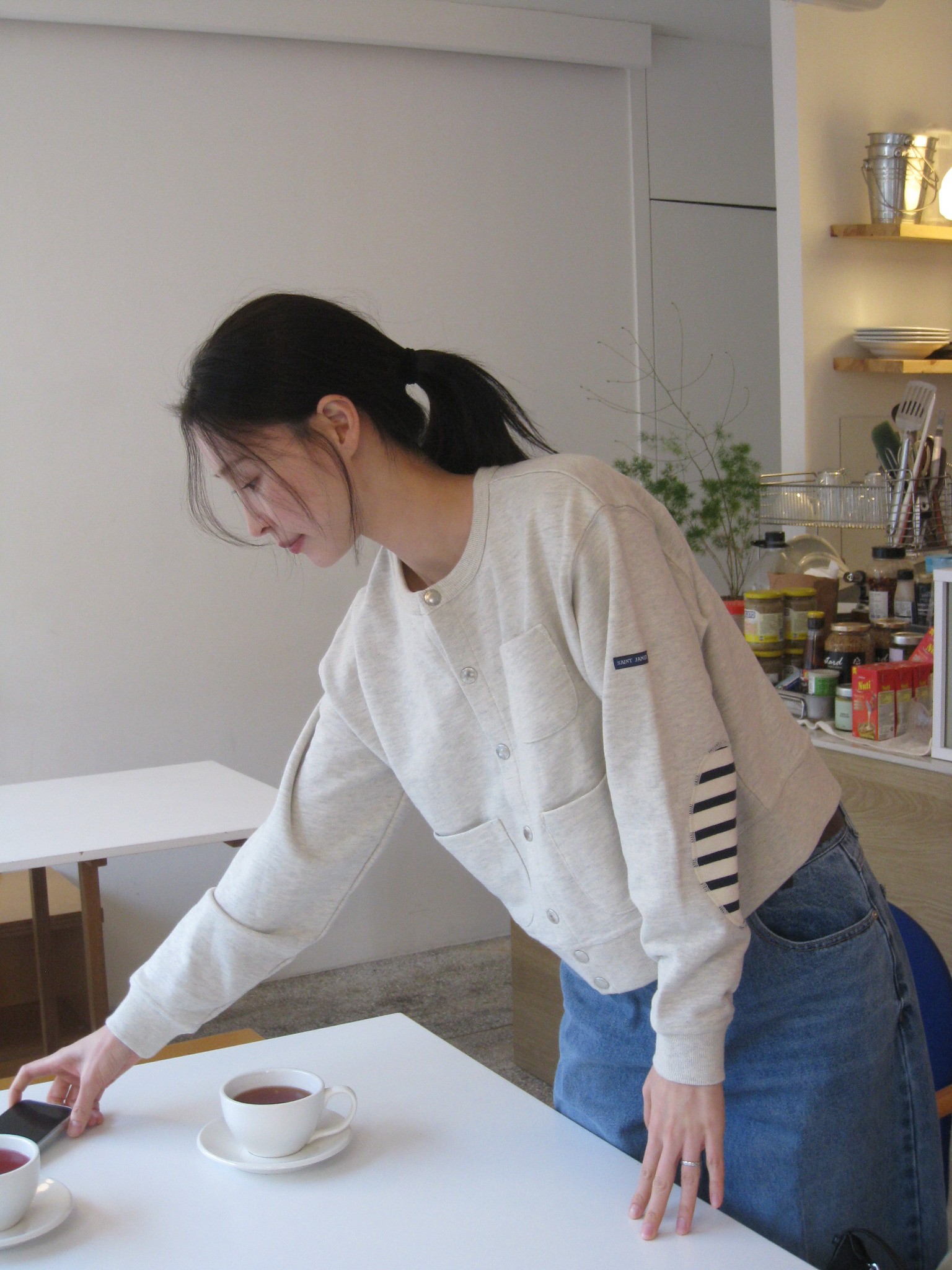 데일리로 함께 하기 좋은 봉봉 카디건 오트밀 컬러 스타일링이에요. 부드러운 촉감의 스웨트 원단으로 제작되어 흐트러지지 않고 안정감을 주며, 팔꿈치 패치로 포인트를 더했어요. 데님 팬츠, 롱스커트 등 다양한 하의와도 잘 어울리는 봄 스타일링이에요.