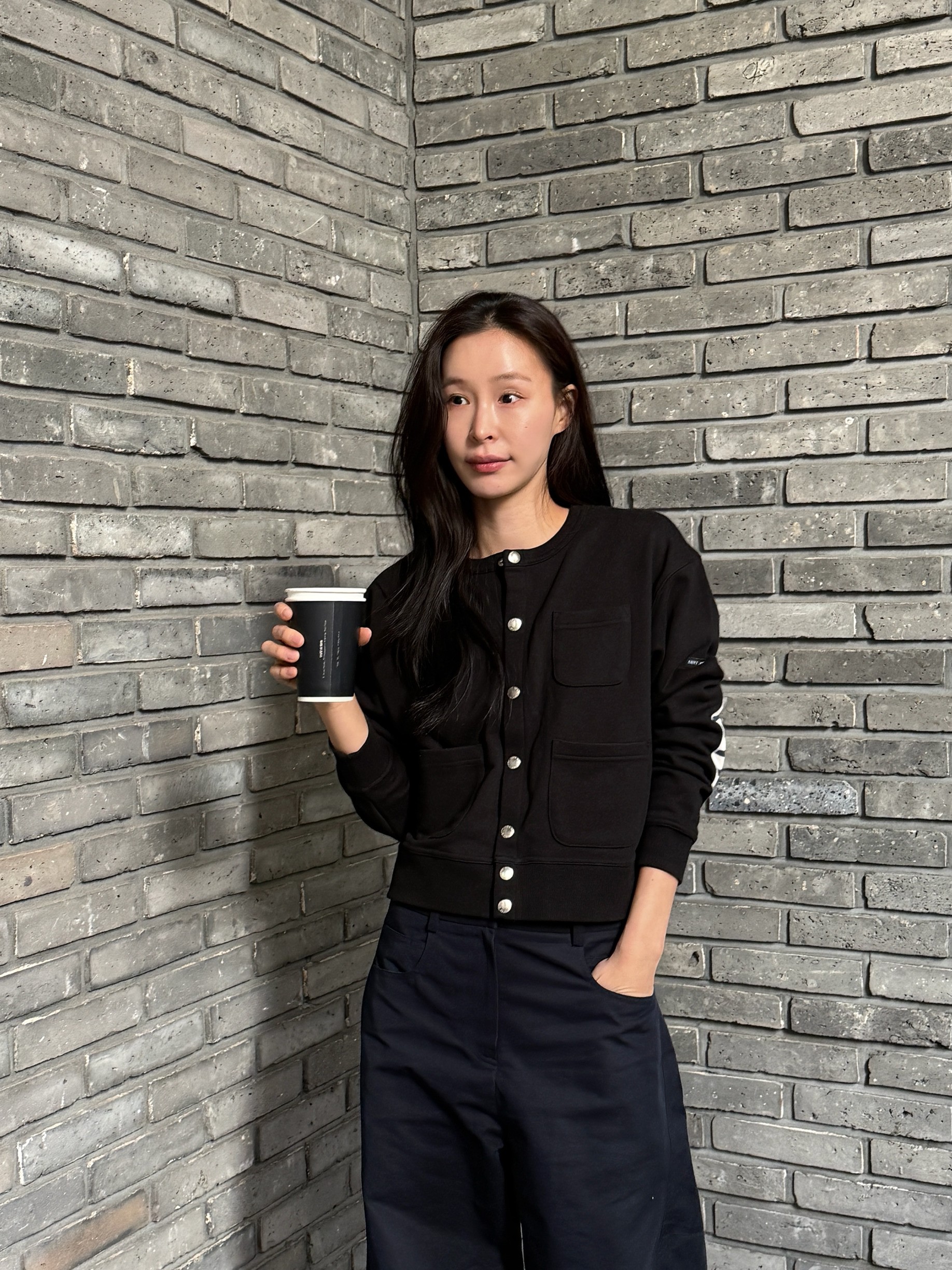 단정하게 함께 하기 좋은 봉봉 카디건 블랙 컬러 스타일링이에요. 부드러운 촉감의 스웨트 원단으로 제작되어 흐트러지지 않고 안정감을 주며, 팔꿈치 패치로 포인트를 더했어요. 어떤 하의와도 잘 어우러지며 하객룩으로 활용하기에도 좋은 아이템이에요.
