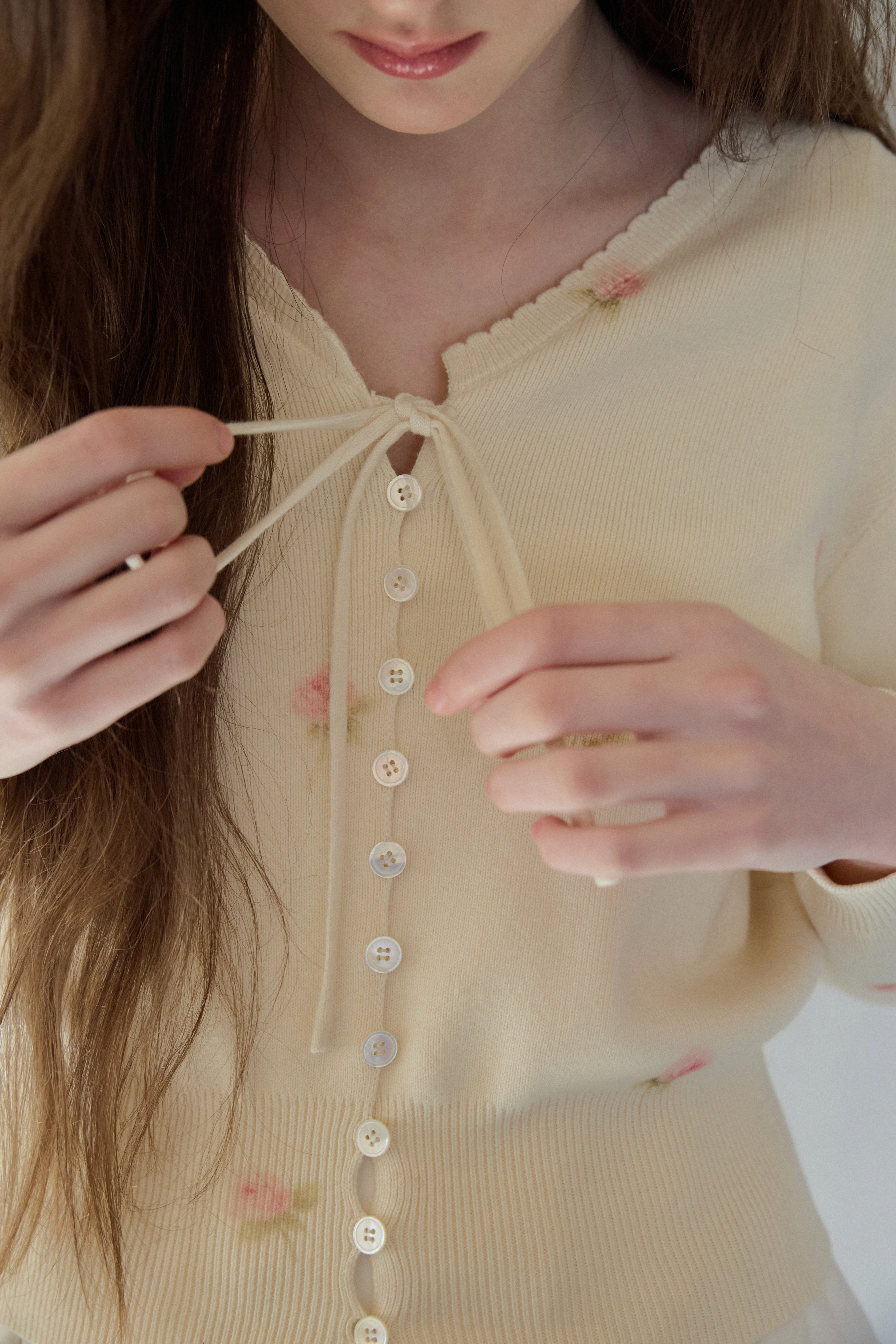 로리 플라워 스칼럽 가디건