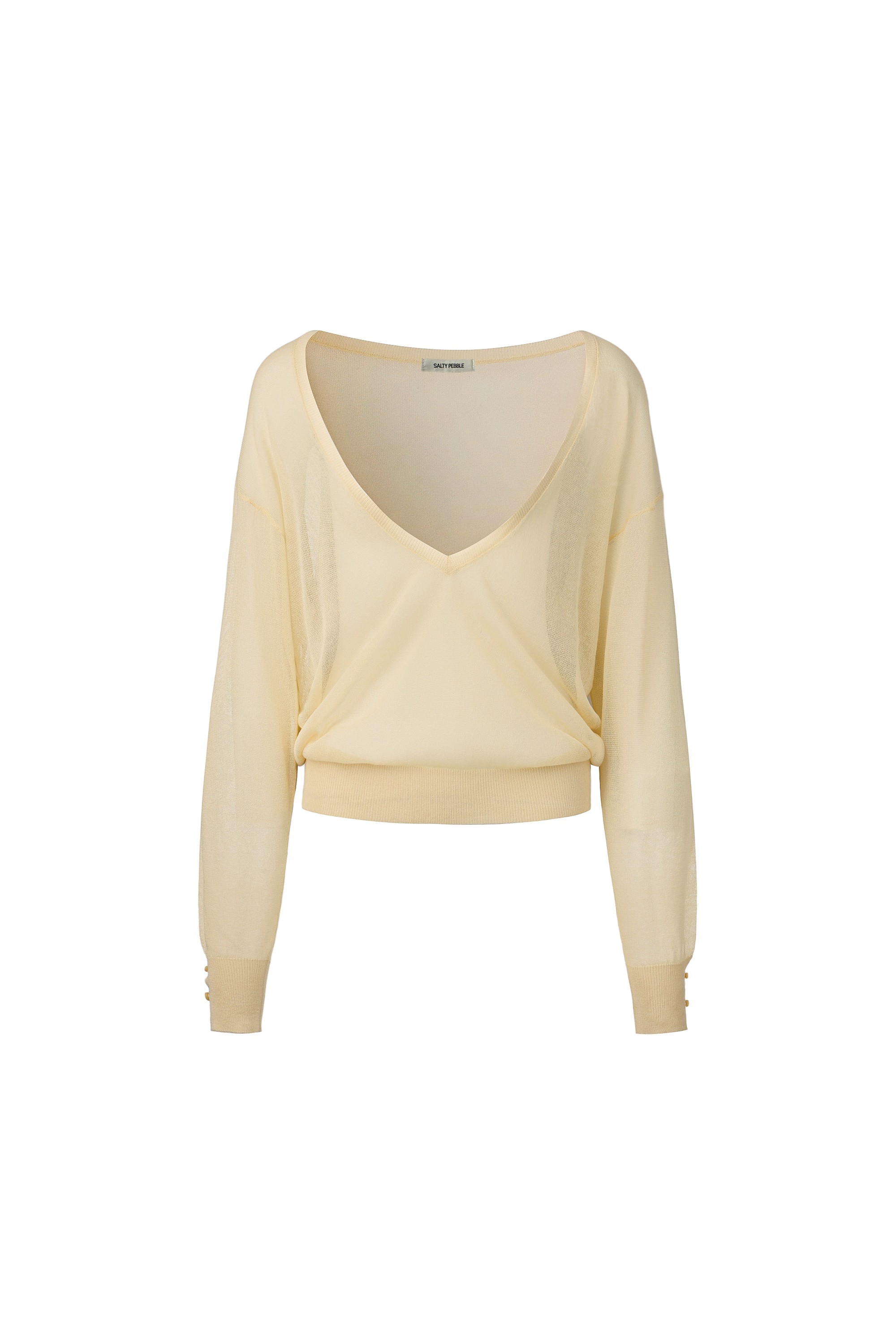 SHEER V-NECK KNIT & SLEEVELESS SET UP LIGHT YELLOW