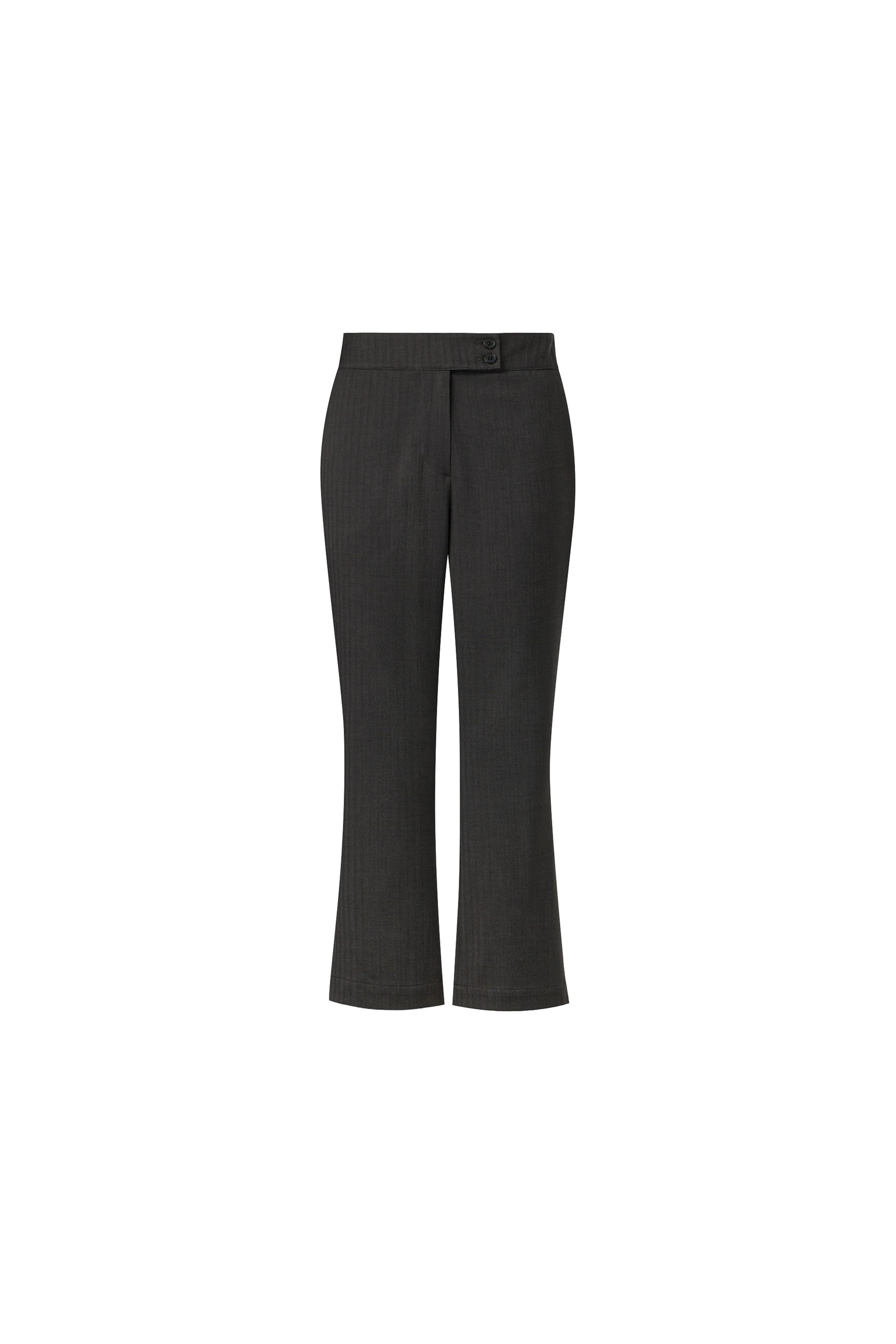 HERRINGBONE SEMI-FLARE CAPRI PANTS CHARCOAL