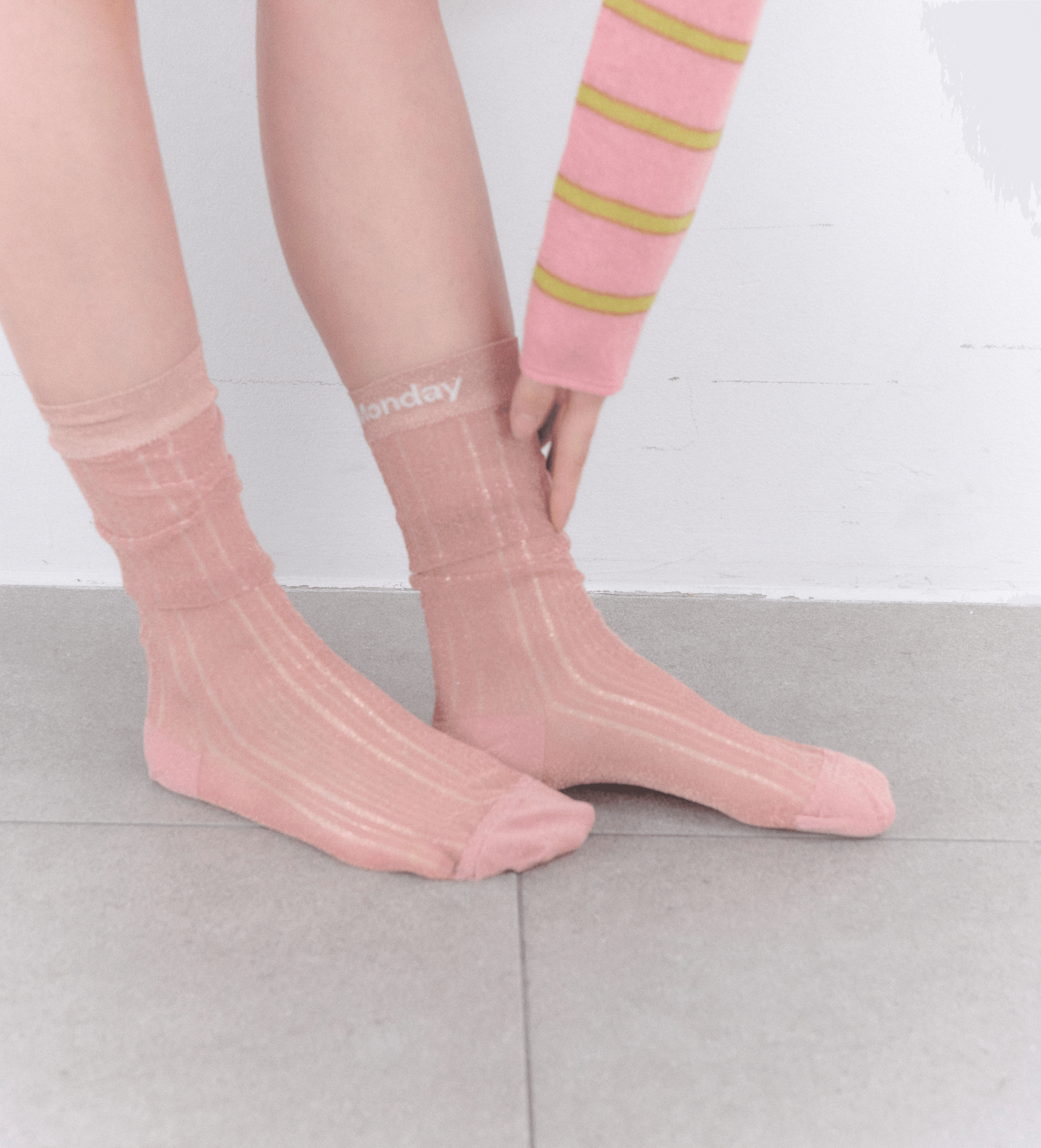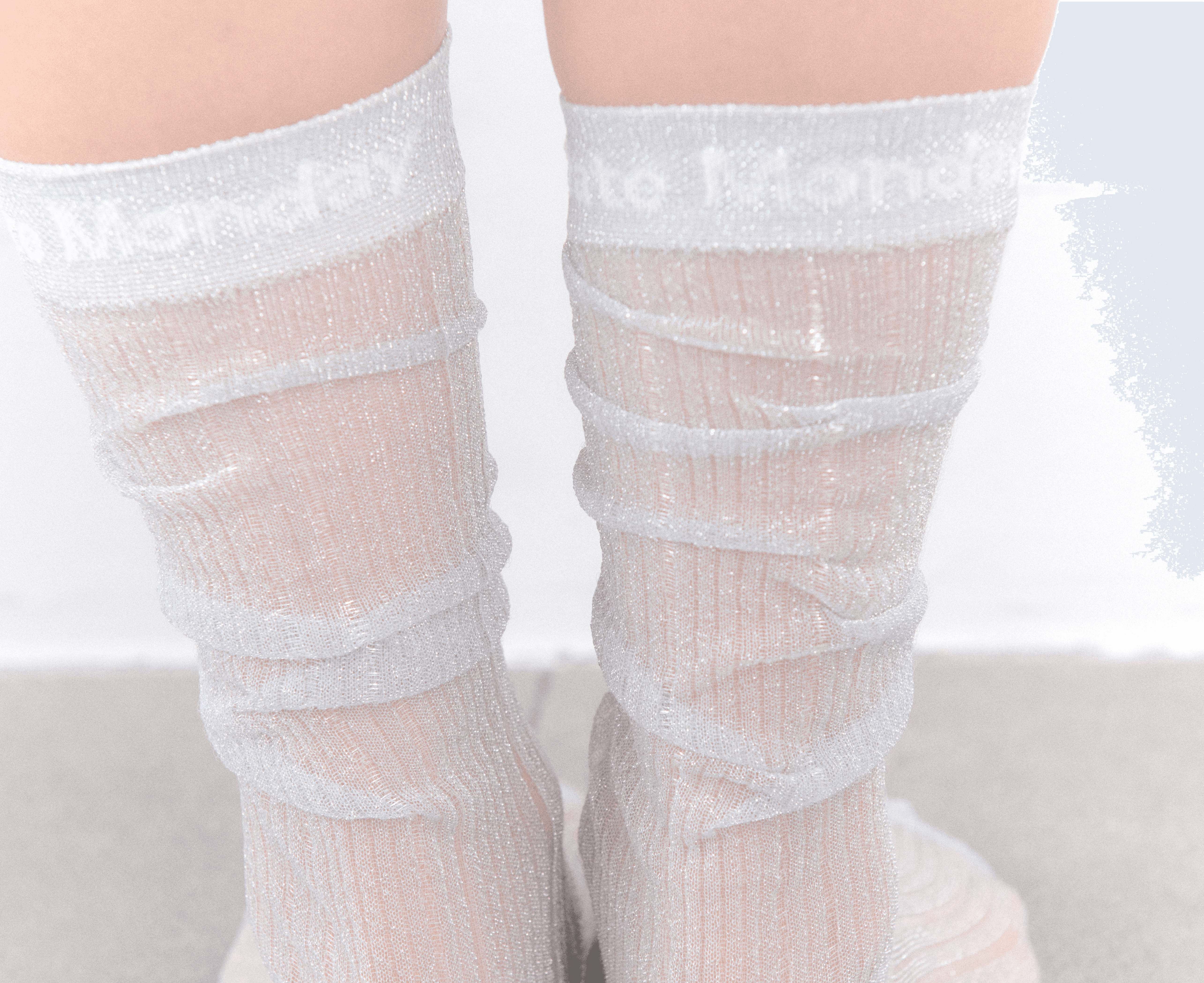 긴 발목 기장의 아주 얇은 글리터 원사를 사용해 가볍고 투명한 무드를 살린 니삭스 입니다