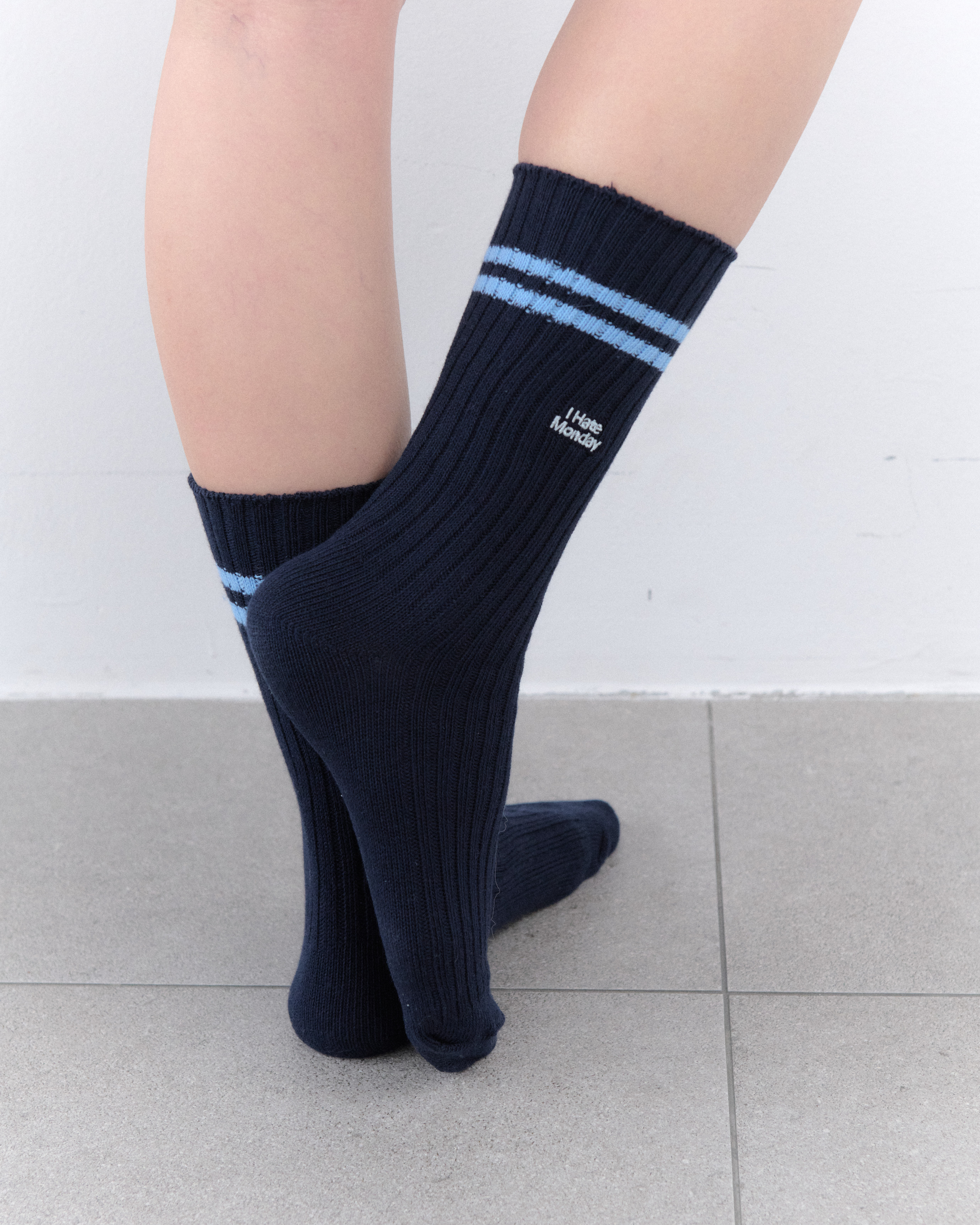 클래식한 스트라이프 라인과 로고 자수가 더해져 심플한 코디에도 자연스럽게 포인트가 되는 프레피 무드 삭스 입니다