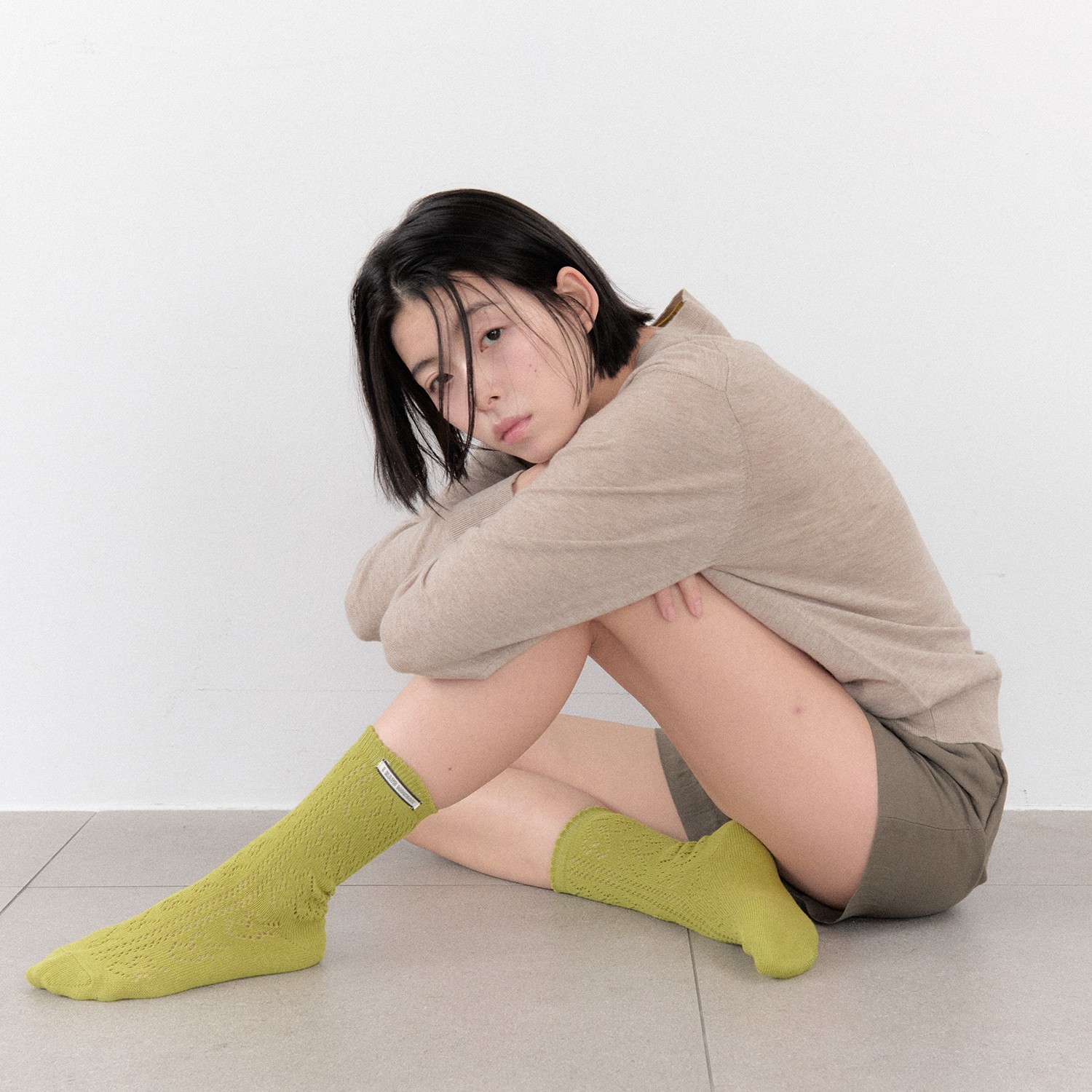 아일렛 펀칭 니트 조직으로 봄에 산뜻하게 착용할 수 있는 양말 입니다