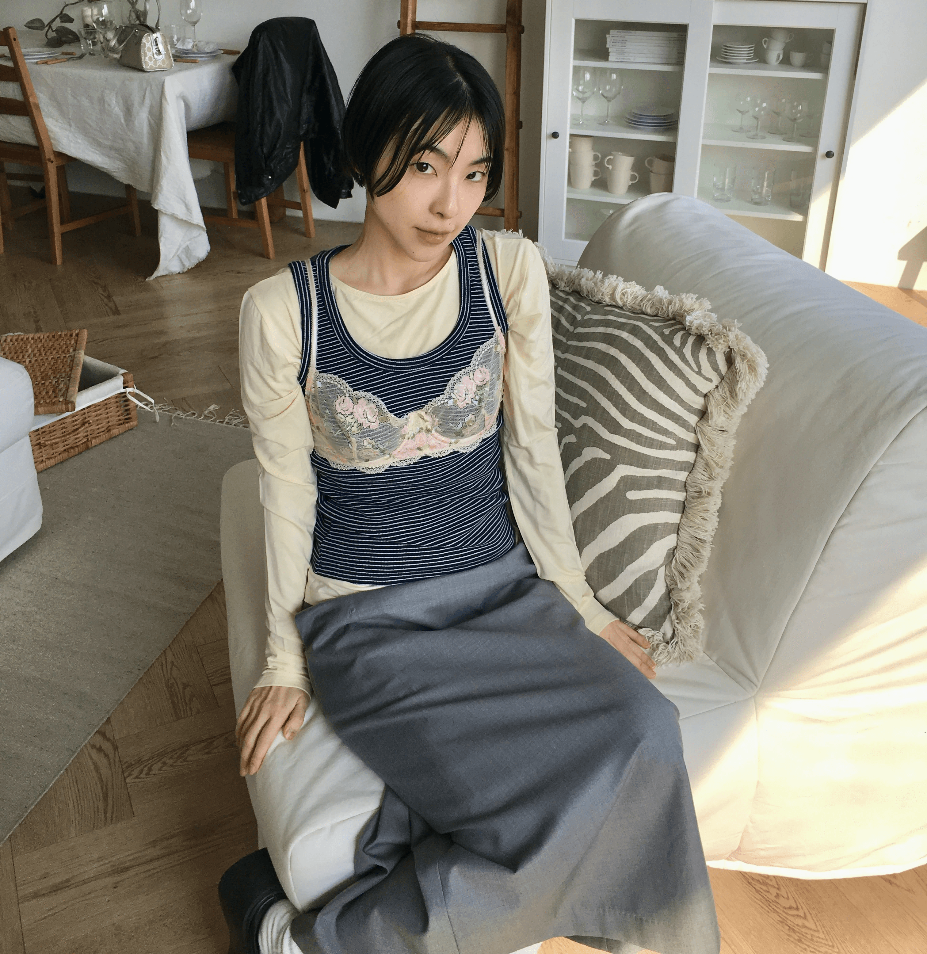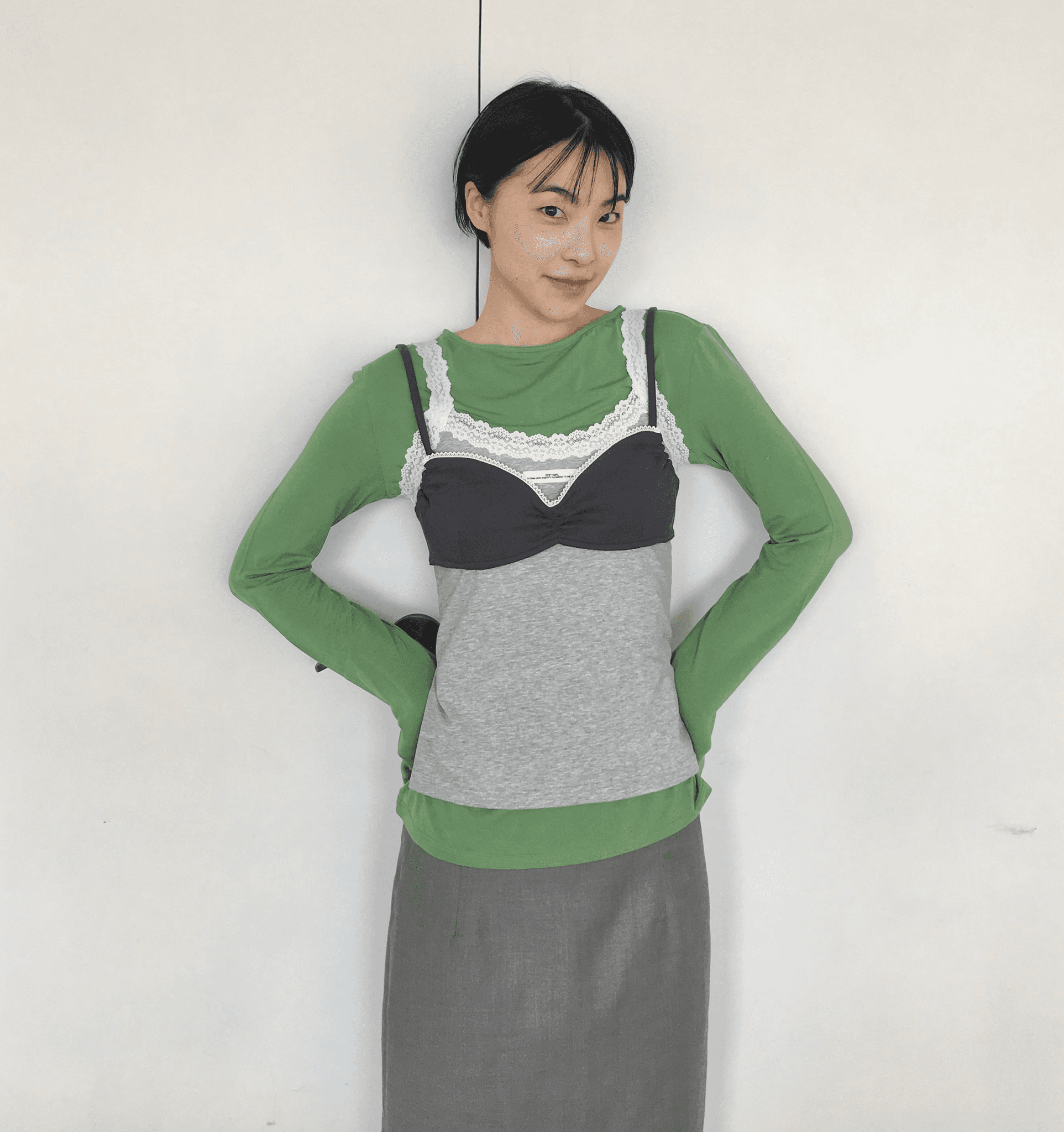 다양한 활용이 가능한 레이어드 티셔츠. 다양한 컬러웨이로 룩에 포인트를 더해줘요.