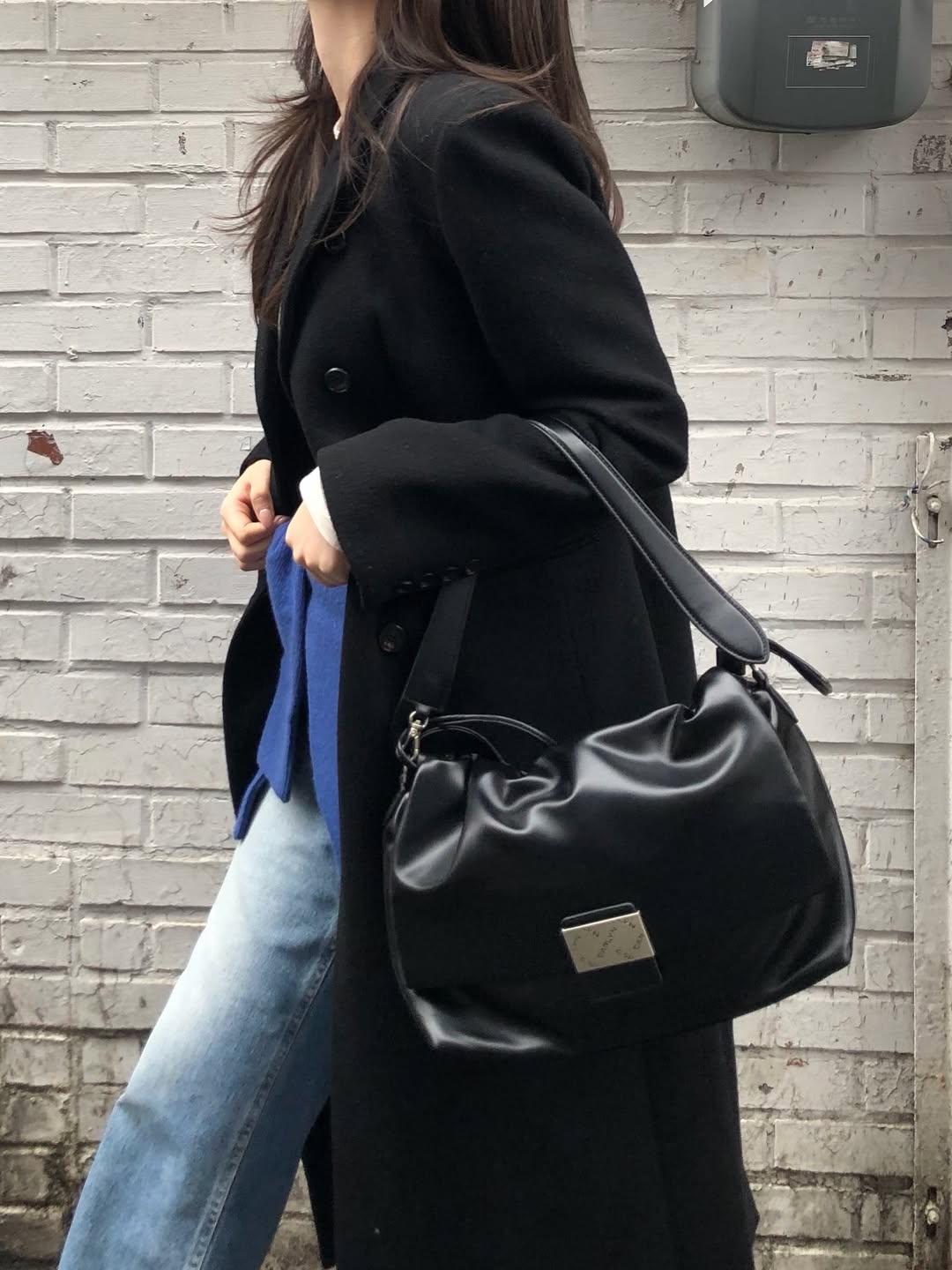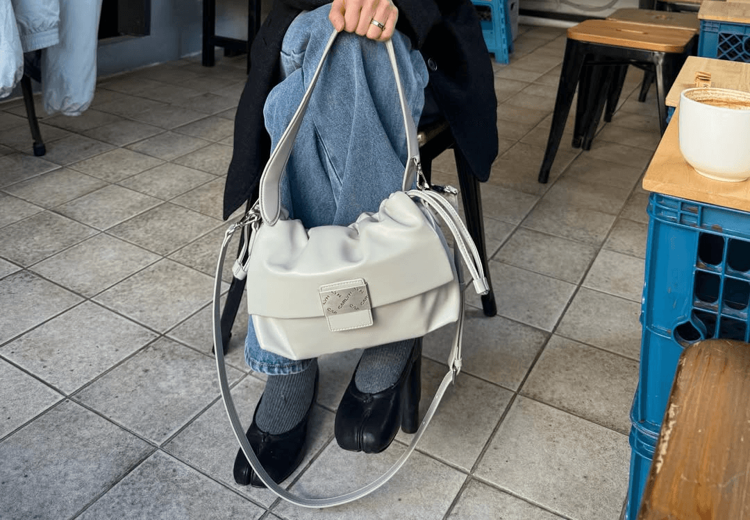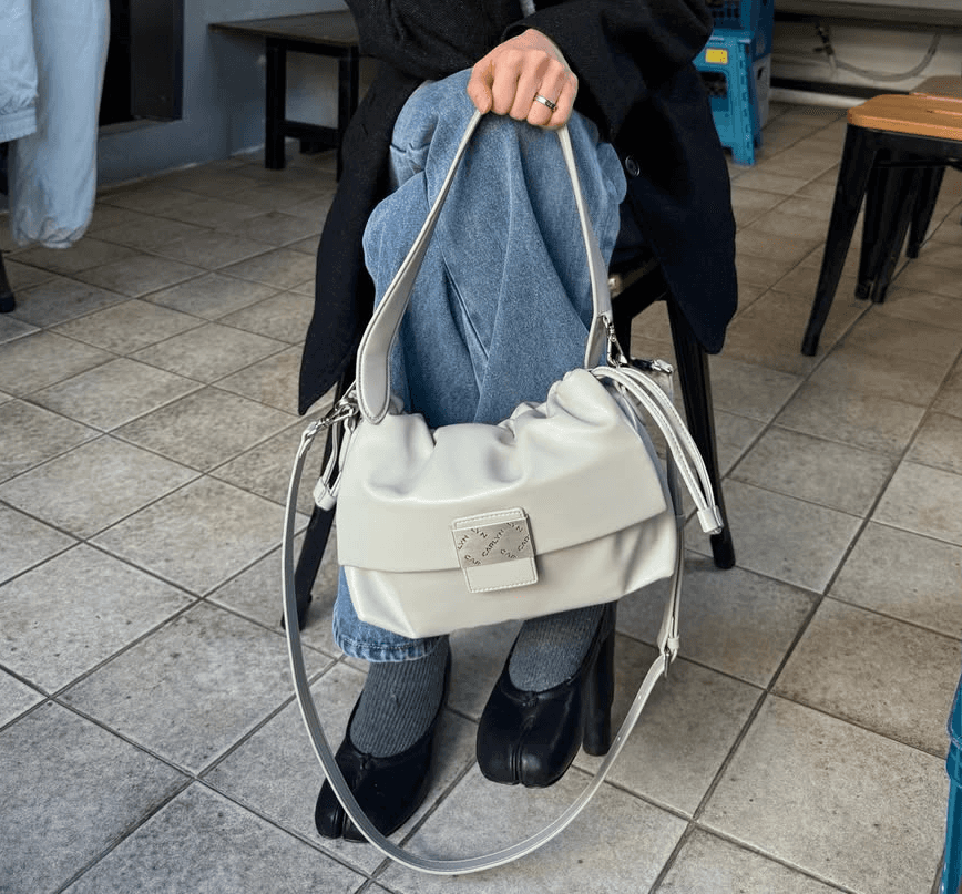부드러운 주름 디테일과 미니멀한 플랩 디자인이 돋보이는 백으로, 스트링을 통한 볼륨 조절과 숏롱 스트랩 구성으로 실용성을 높인 데일리 아이템