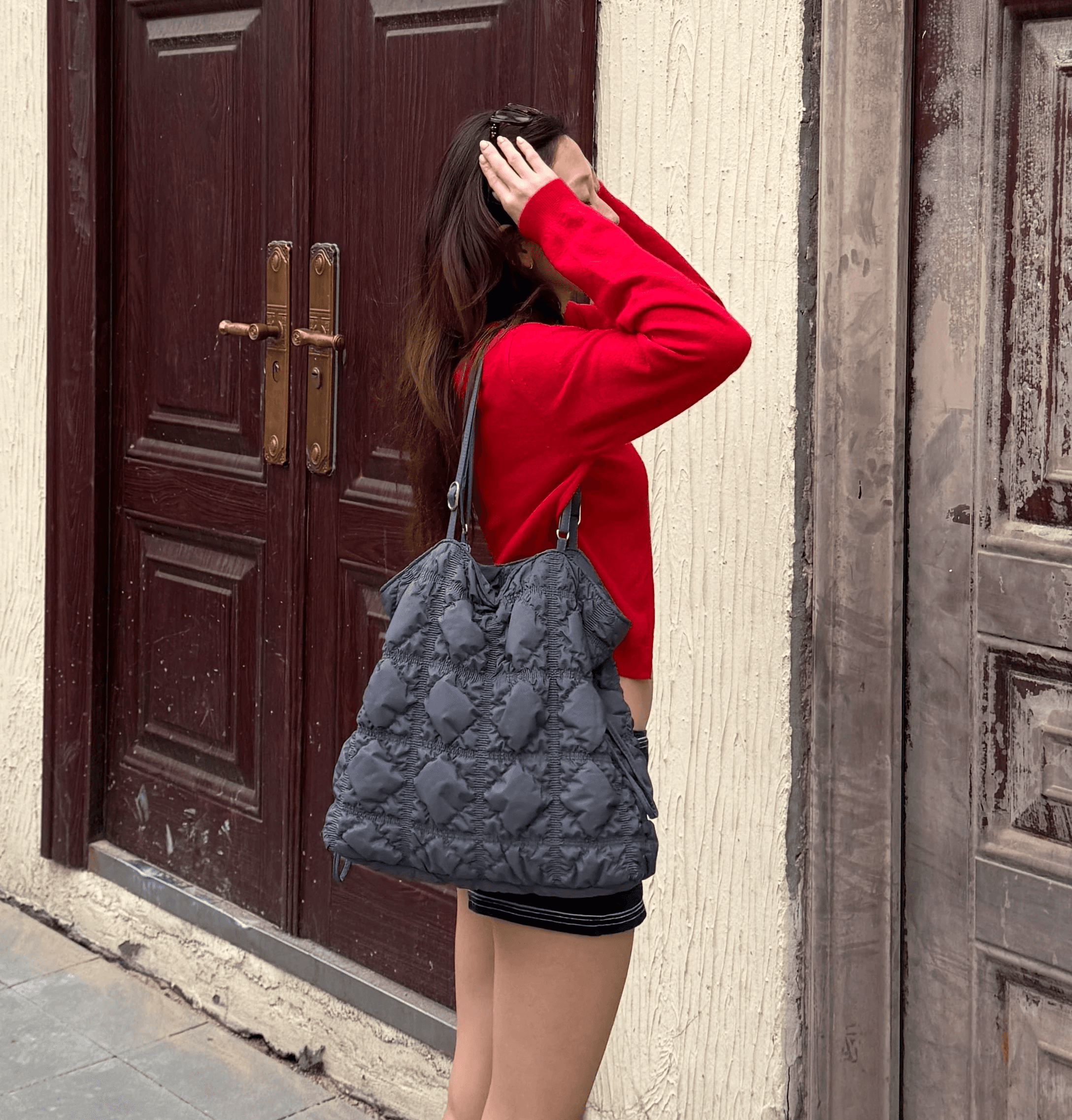 가볍고 부드러운 소재로 완성된 데일리 백으로, 볼륨감 있는 실루엣과 가볍게 들기 좋은 컴팩트한 사이즈가 돋보이는 실용적인 아이템