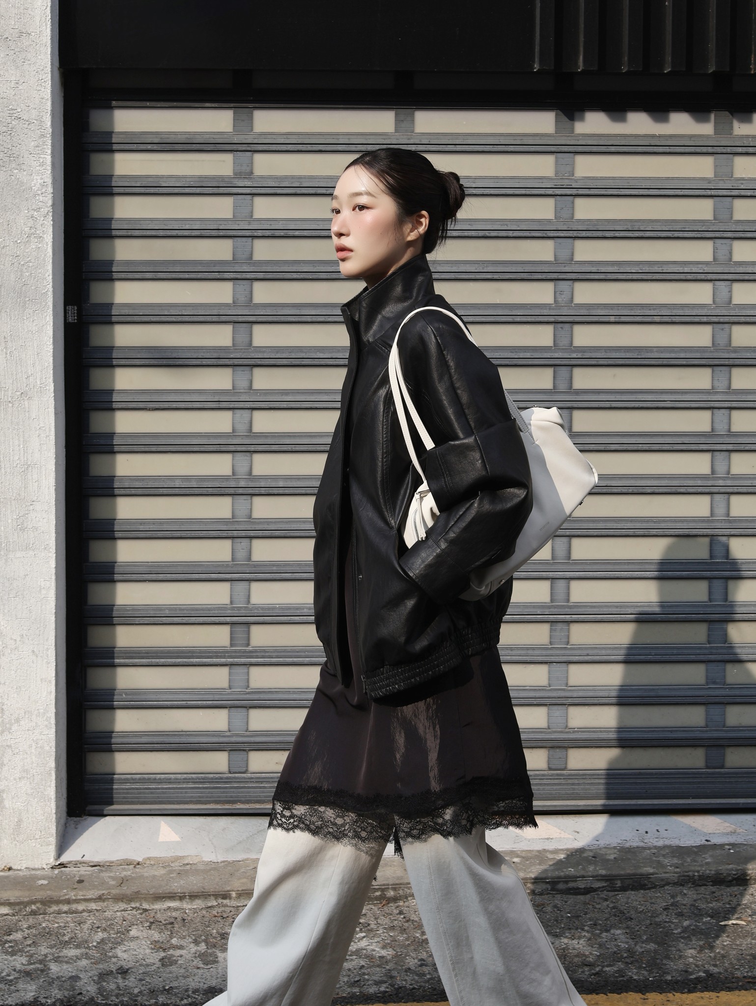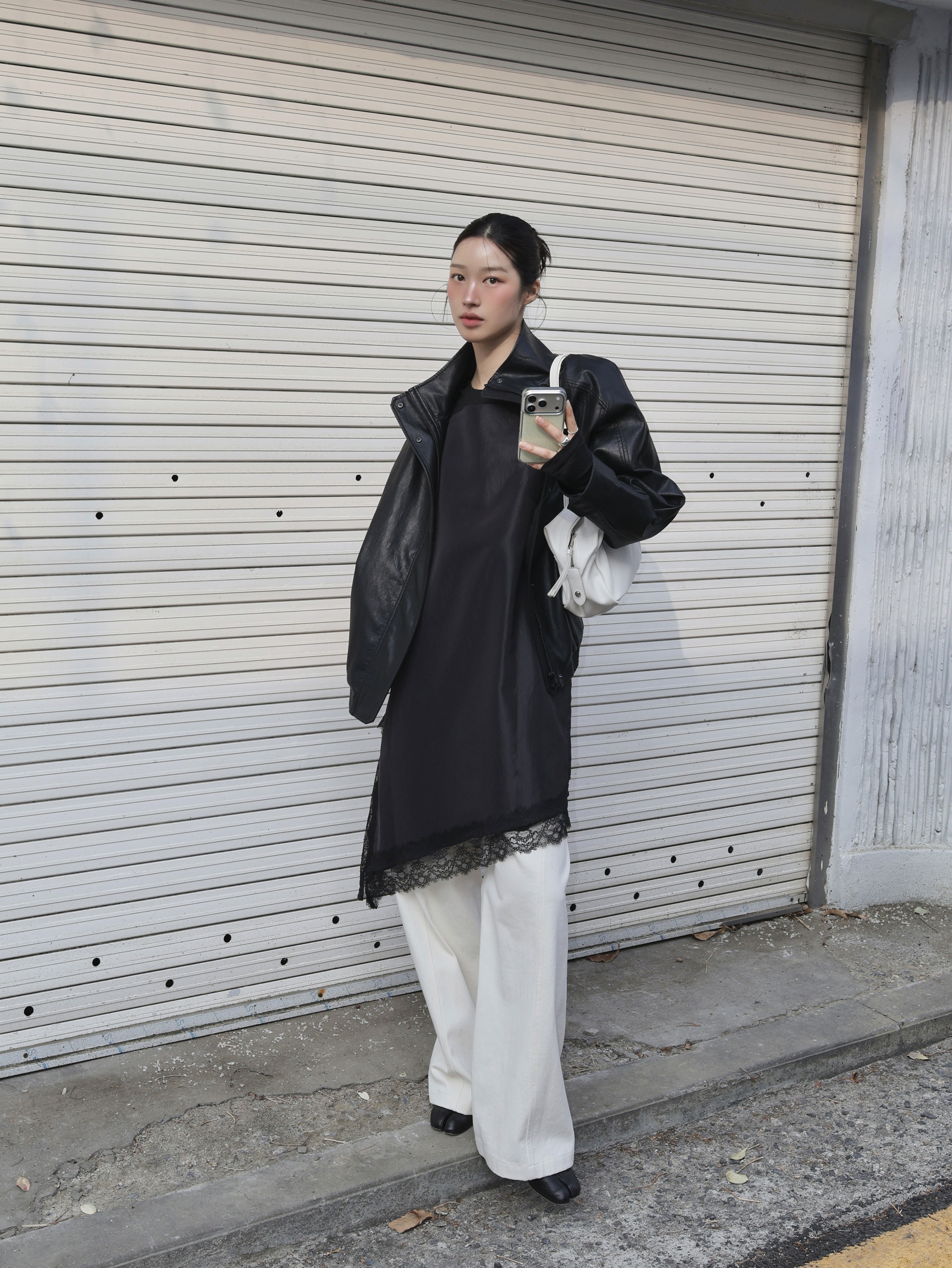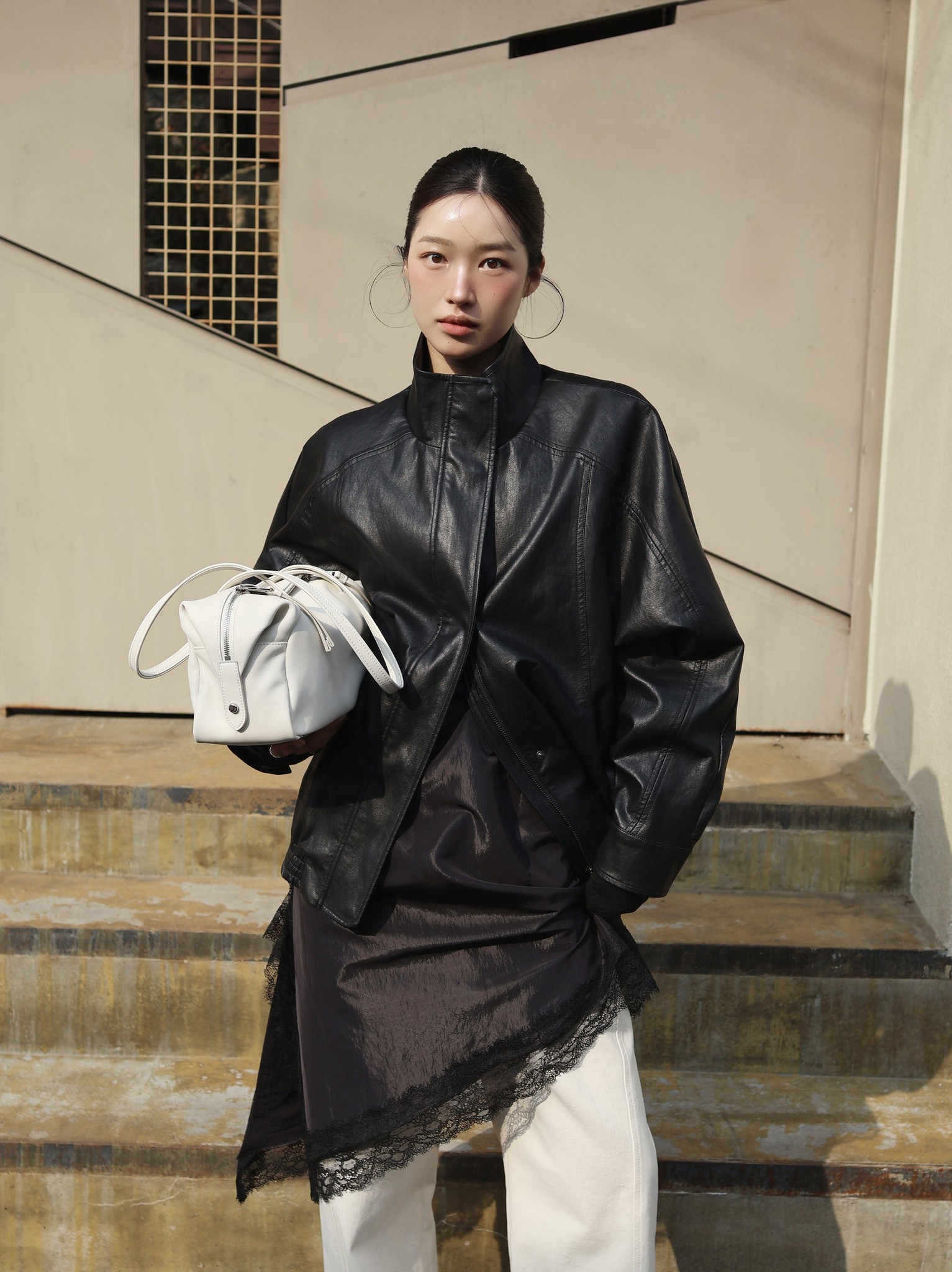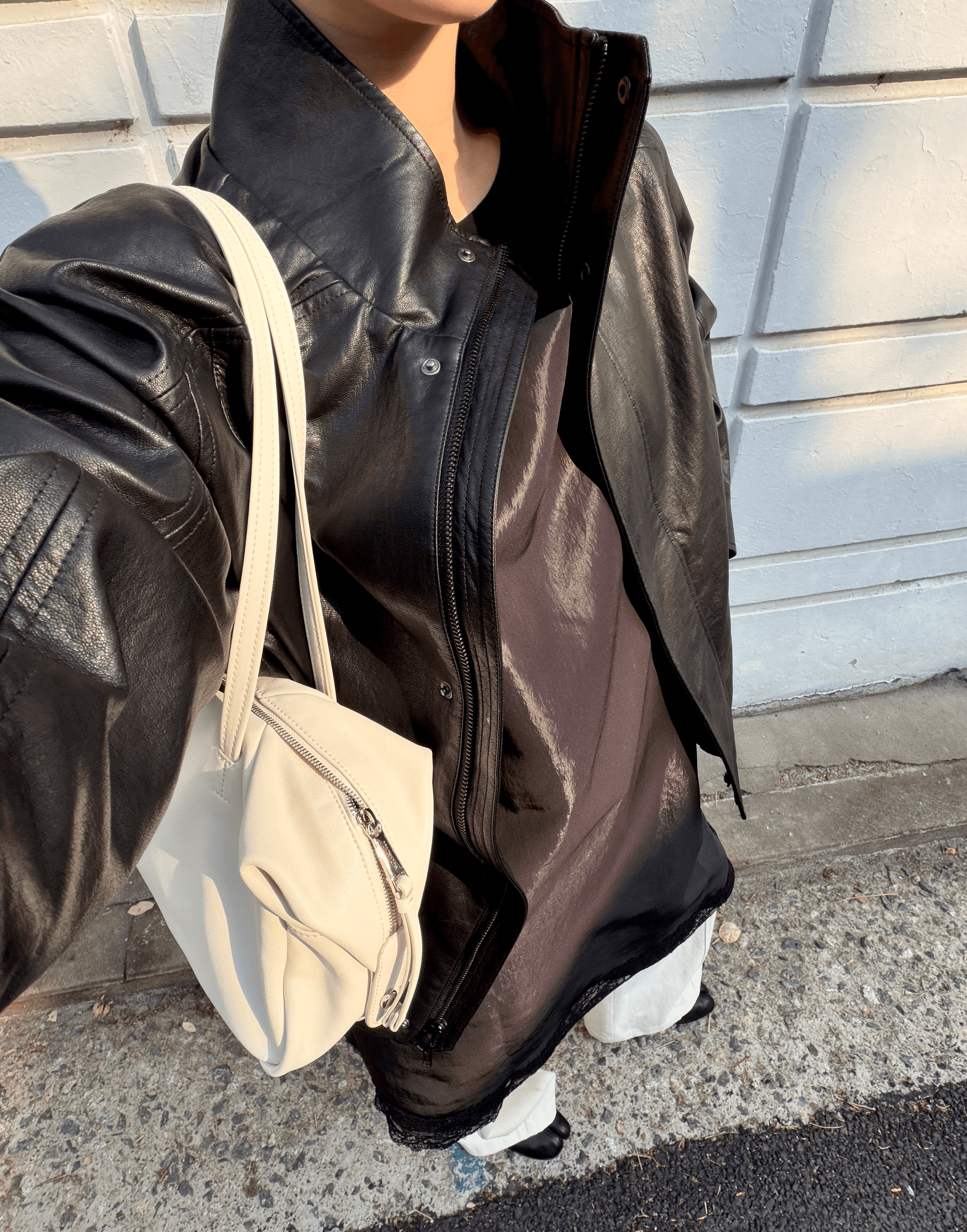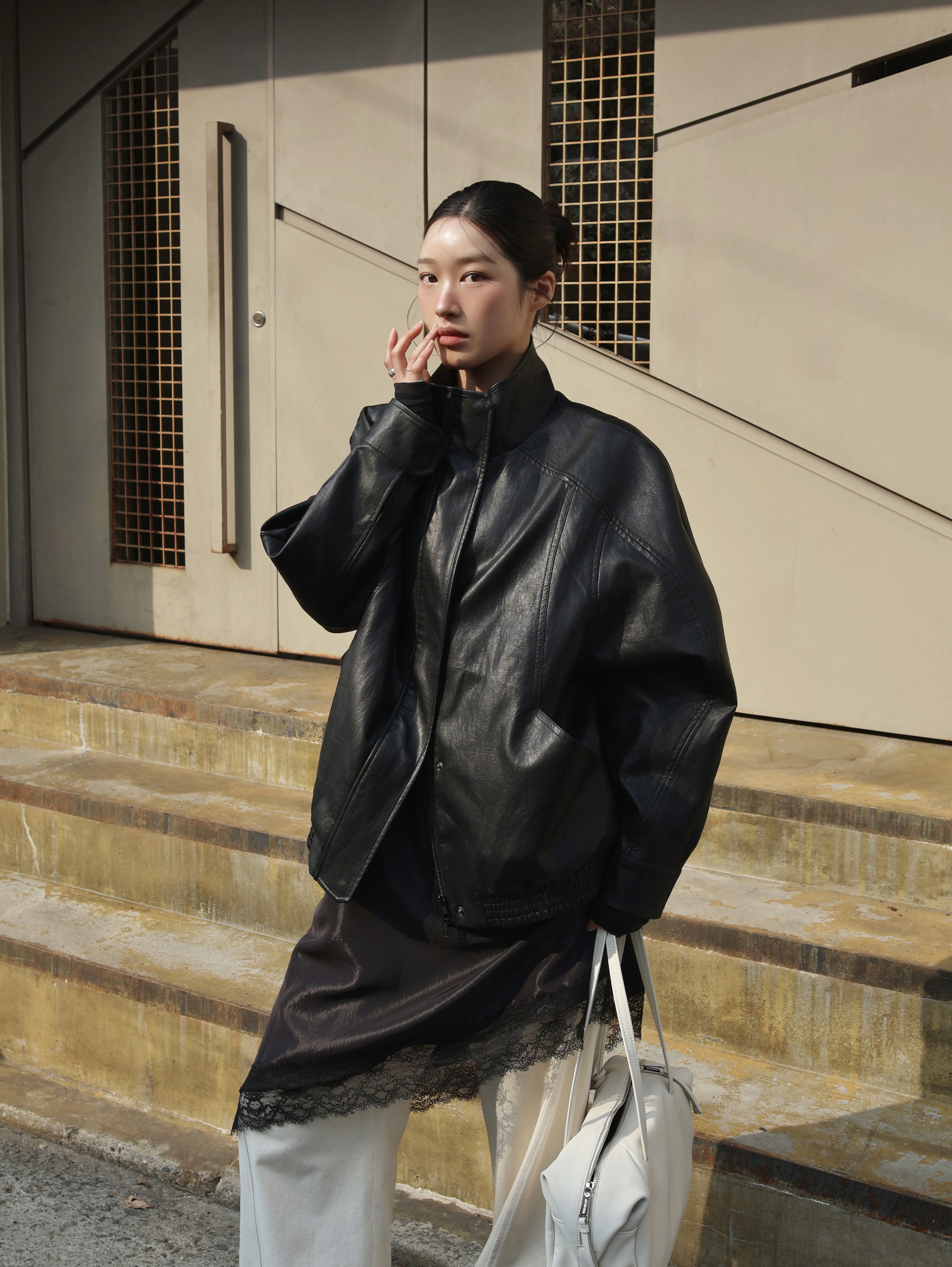 HIGH-NECK LEATHER BLOUSON JACKET