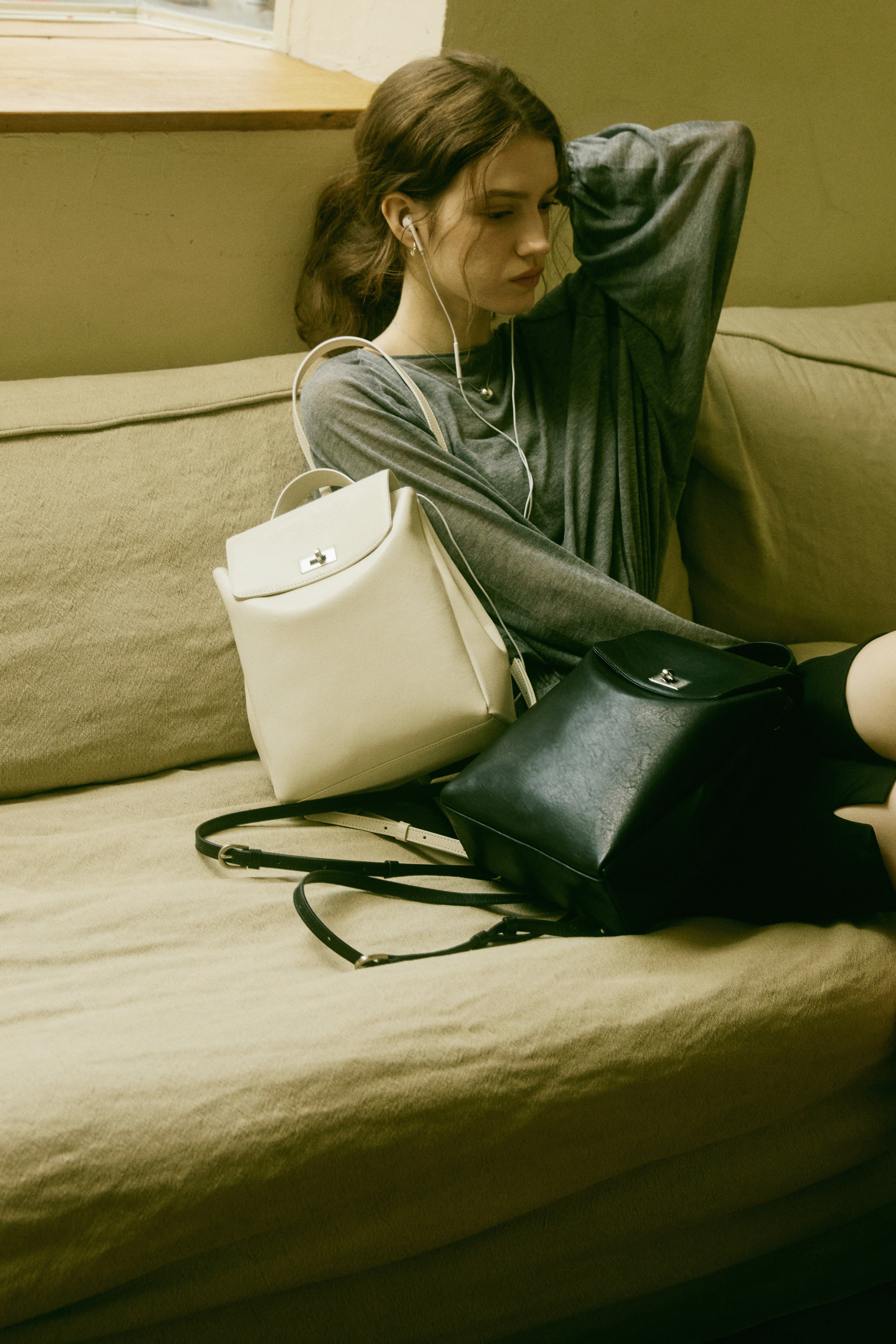 백팩 스타일을 기반으로, 자연스러운 텍스처가 살아있는 탄탄한 가죽 소재로 제작된 디자인입니다. 숄더로도 연출이 가능해 다양한 스타일링에 자연스럽게 어우러집니다.