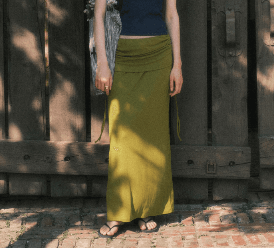 롱한 기장감과 슬림하게 떨어지는 핏이 실루엣을 매끄럽게 만들어주며, 내추럴한 컬러감이 리조트 무드를 연출해 여름 시즌과 특히 잘 어울리는 아이템입니다.